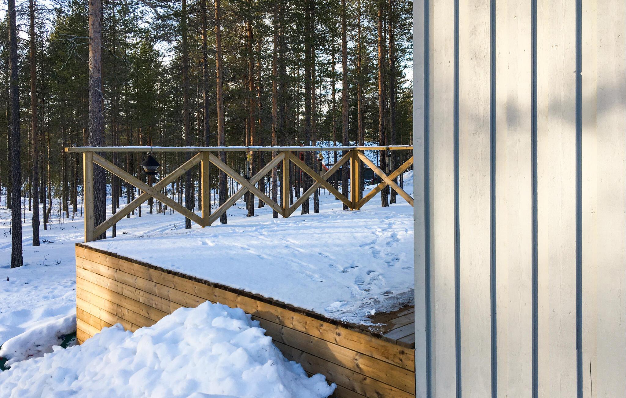 Om sommeren kan du nyte frokosten på den innbydende treterrassen med utsikt over skogen. Om vinteren venter et pittoresk snølandskap på deg her. Pust inn den friske luften og start dagen uthvilt.