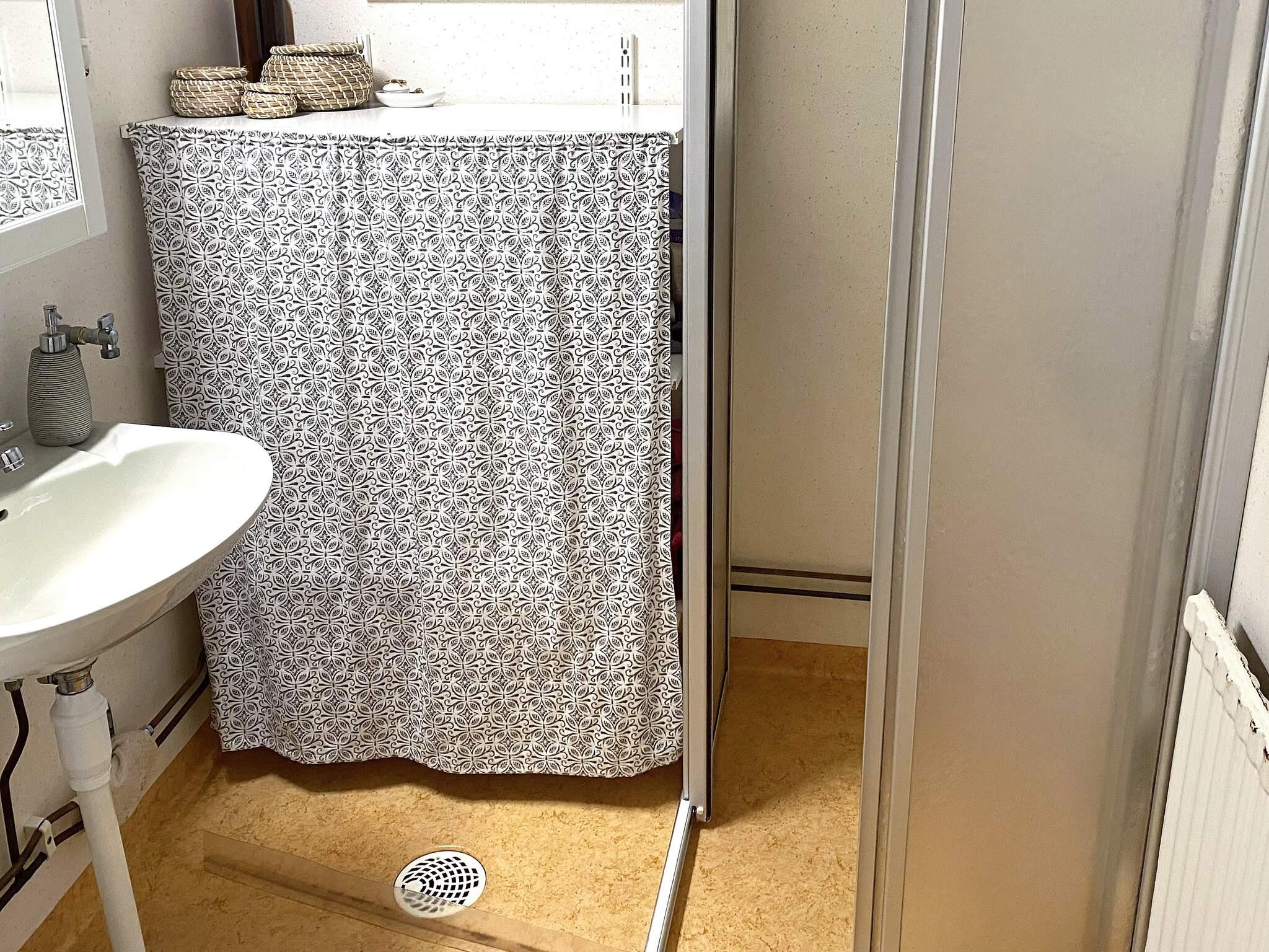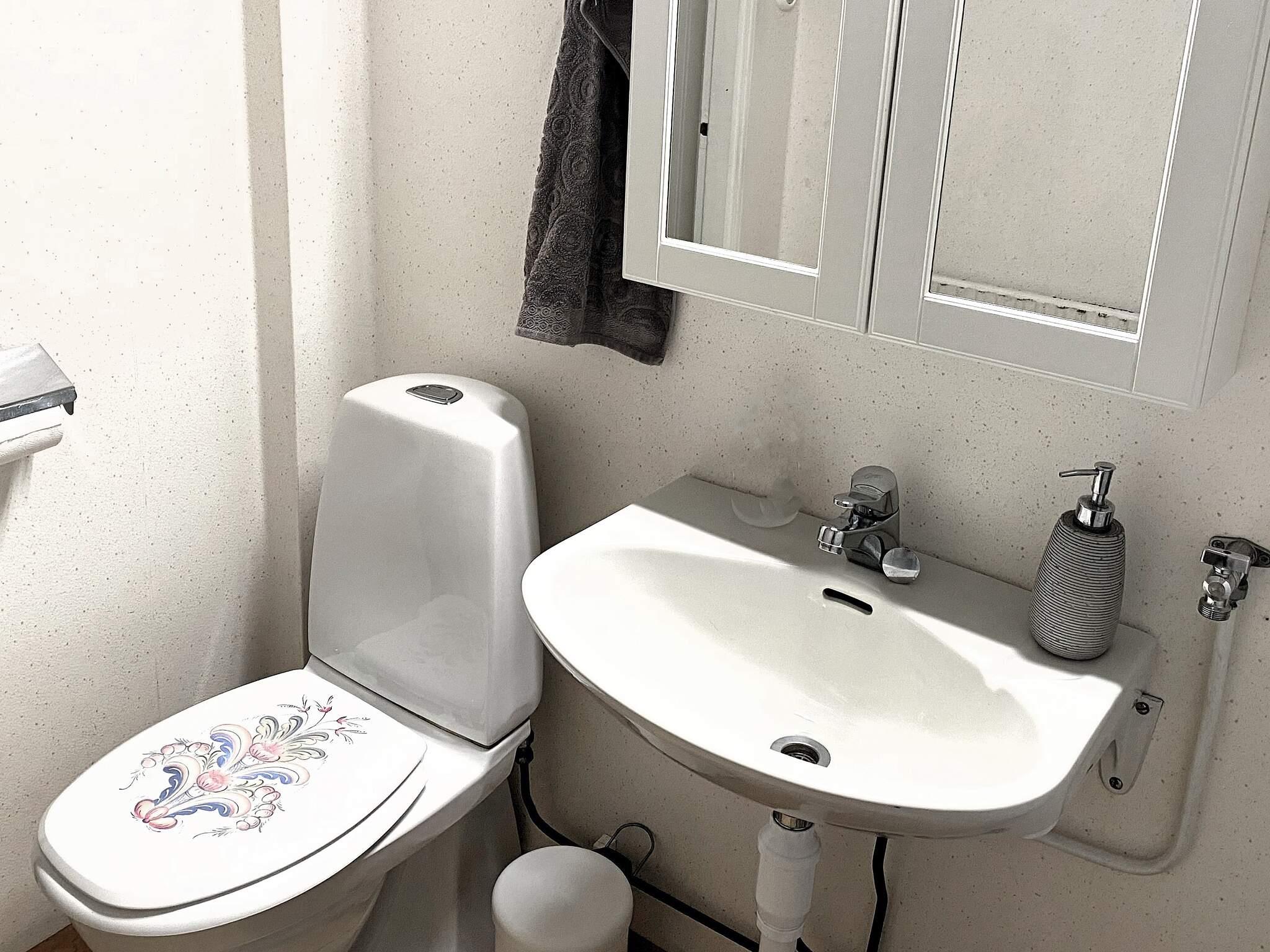 Den trevliga stugan på 68m2 med kök, vardagsrum, sovrum och badrum med WC, dusch. Det finns också en tvättstuga med torktumlare och tvättmaskin. I vardagsrummet finns en bäddsoffa för två 140 cm bred och en enkel säng, i hörnet står en braskamin som man får elda i om man önskar. Köket har en matgrupp och allt man behöver för att tillaga en god middag i gott sällskap. I sovrummet finns två enkelsängar som kan ställas ihop till en dubbelsäng. En stor terrass med pergola, grill, 2 sittgrupper för umgänge och goda middagar. Wifi finns och TV med flera kanaler.