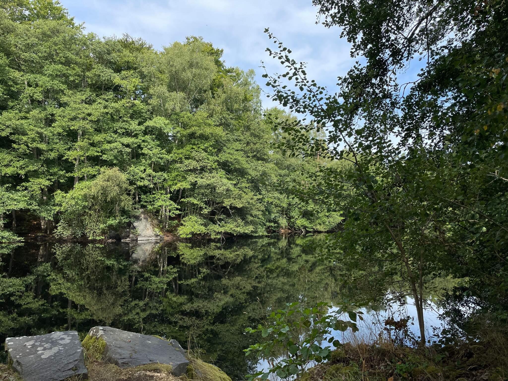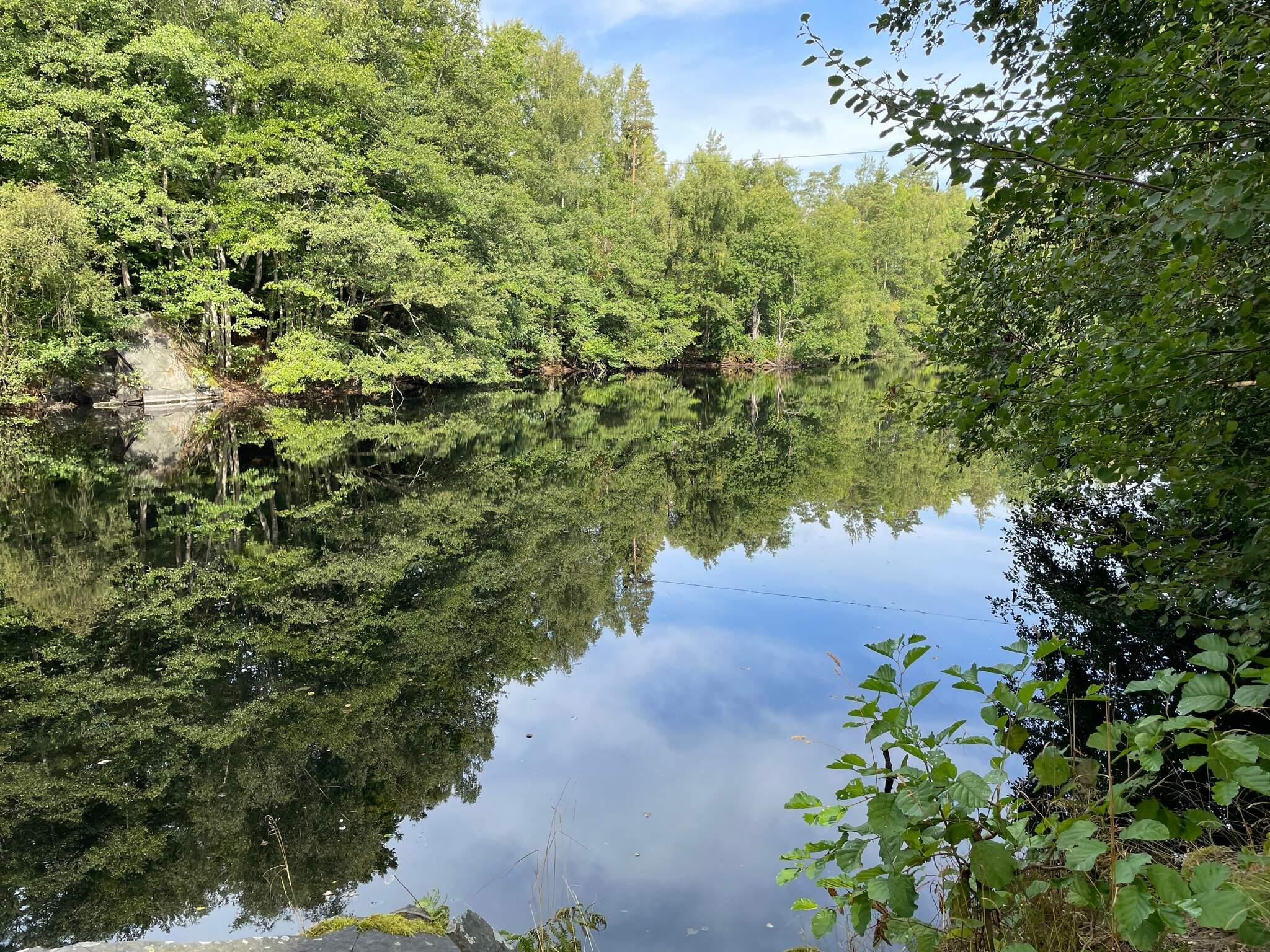 Charmig röd stuga i skogsidyll – nära en oerhört vackert stenbrott & fiskemöjligheter!