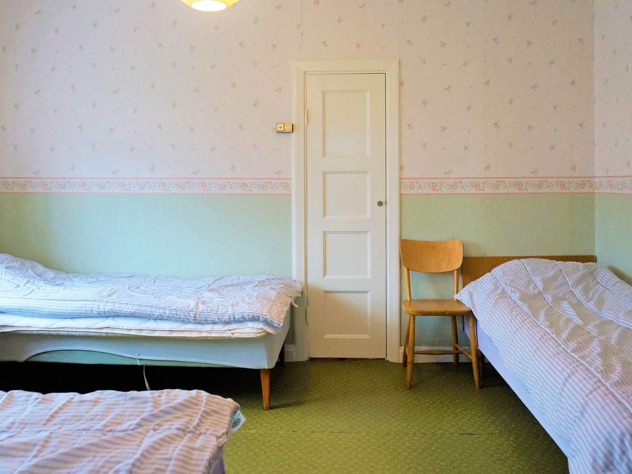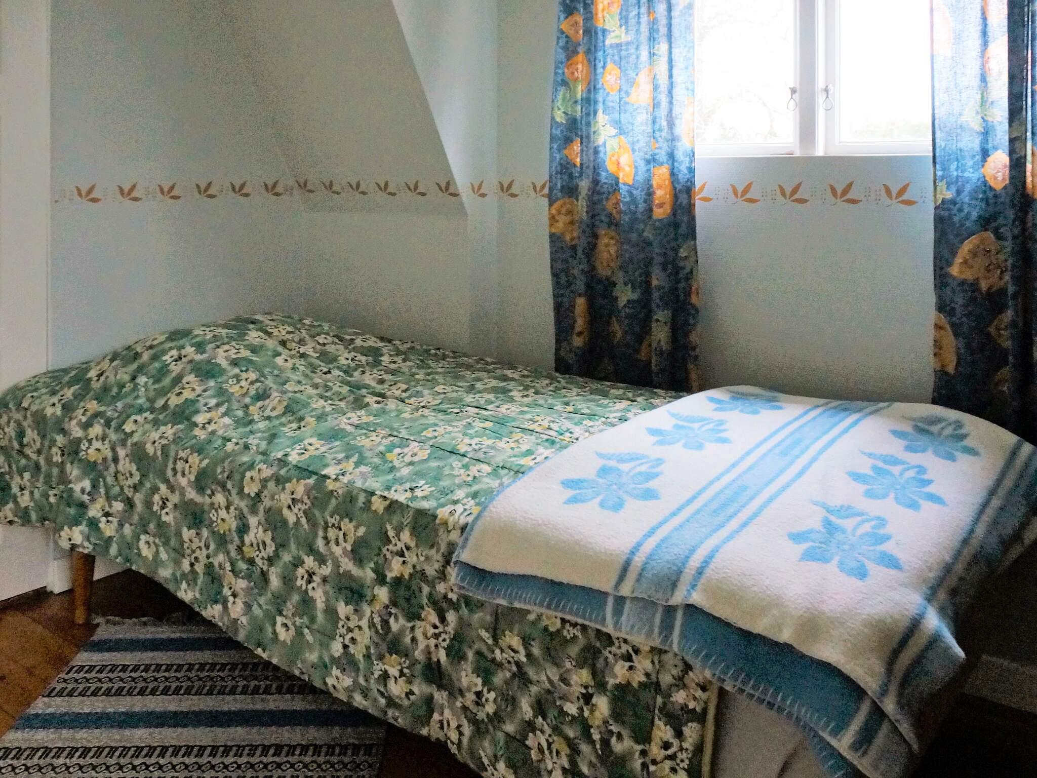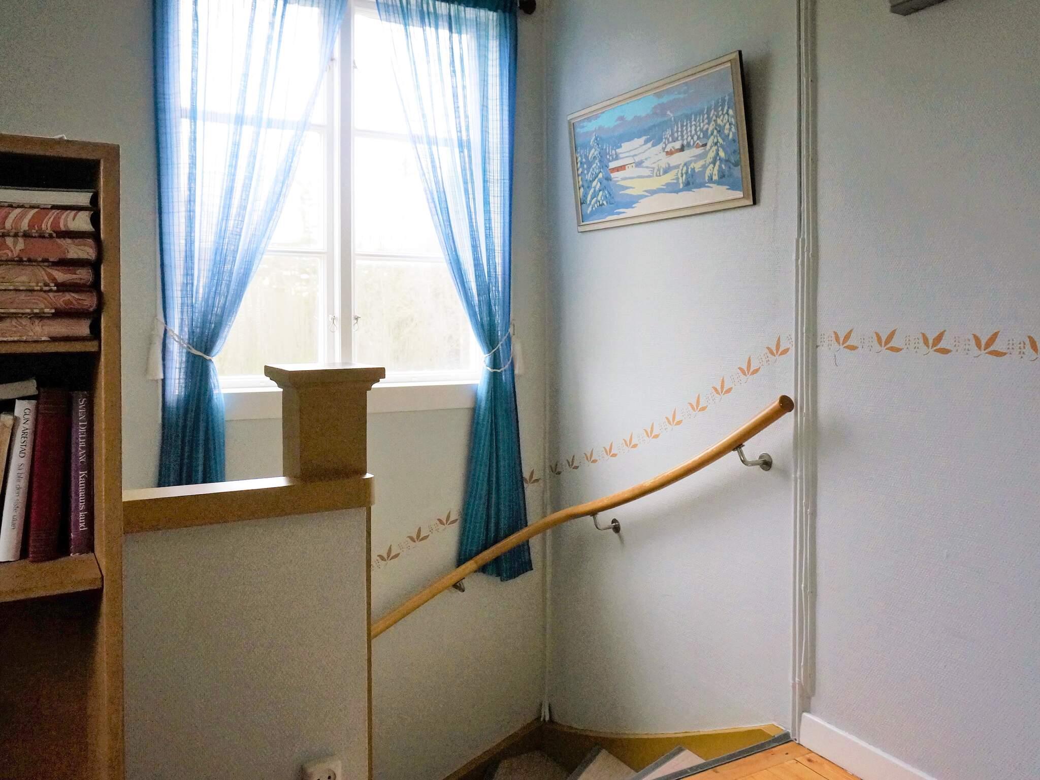 Uppför trappan finns alla sovrum och direkt en liten sovalkov med 90cm säng. Till vänster ligger ett sovrum med 3 sängar där alla är 90 cm breda. Rakt fram ligger det stora sovrummet med en dubbelsäng och en spjälsäng. Utsikt över den gemensamma badplatsen och en stor vacker ek som gör att det blir insynsskyddat på sommaren. Passar perfekt för den större familjen som vill ha närhet till bad och som vill bo lantligt.