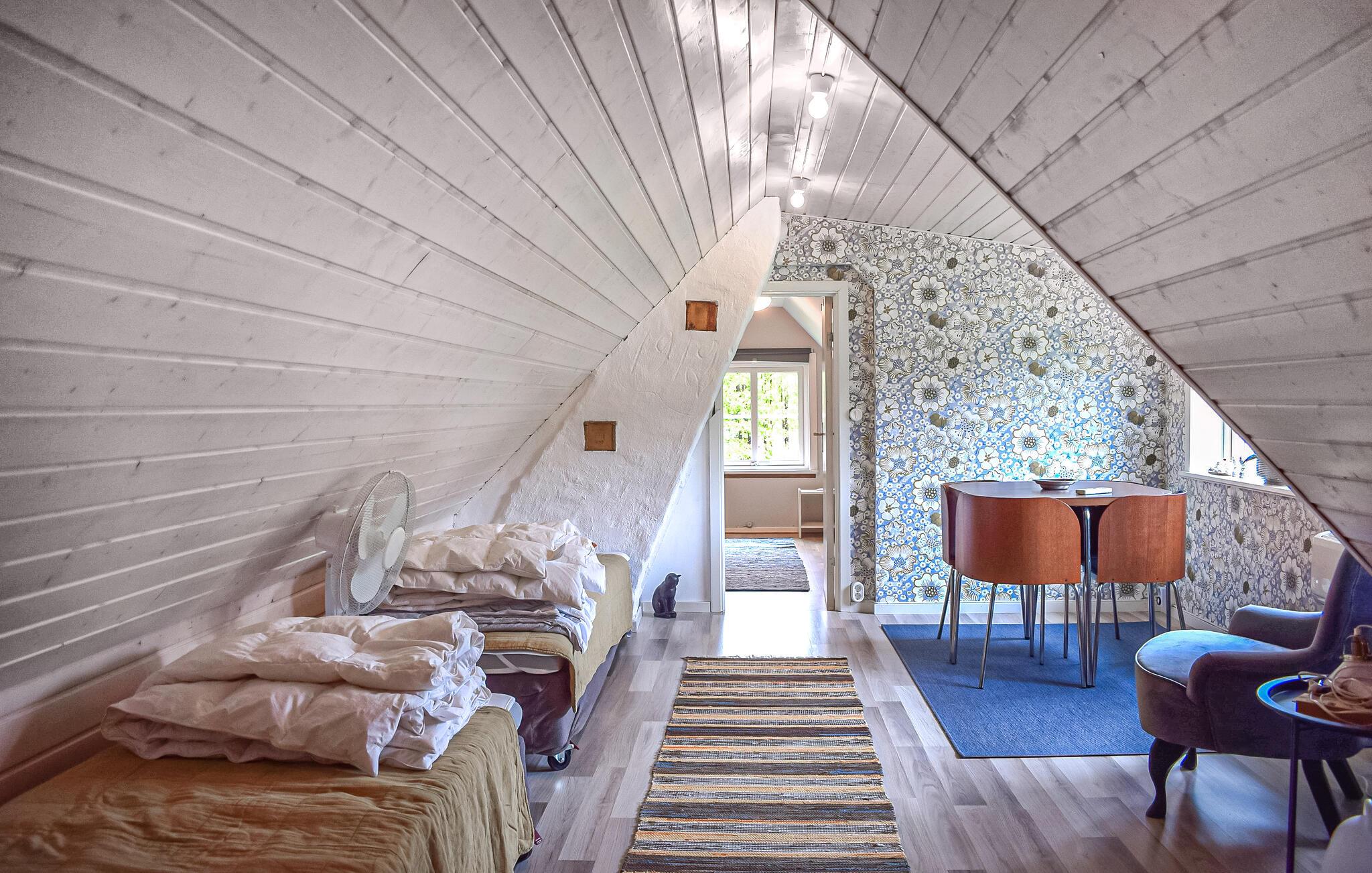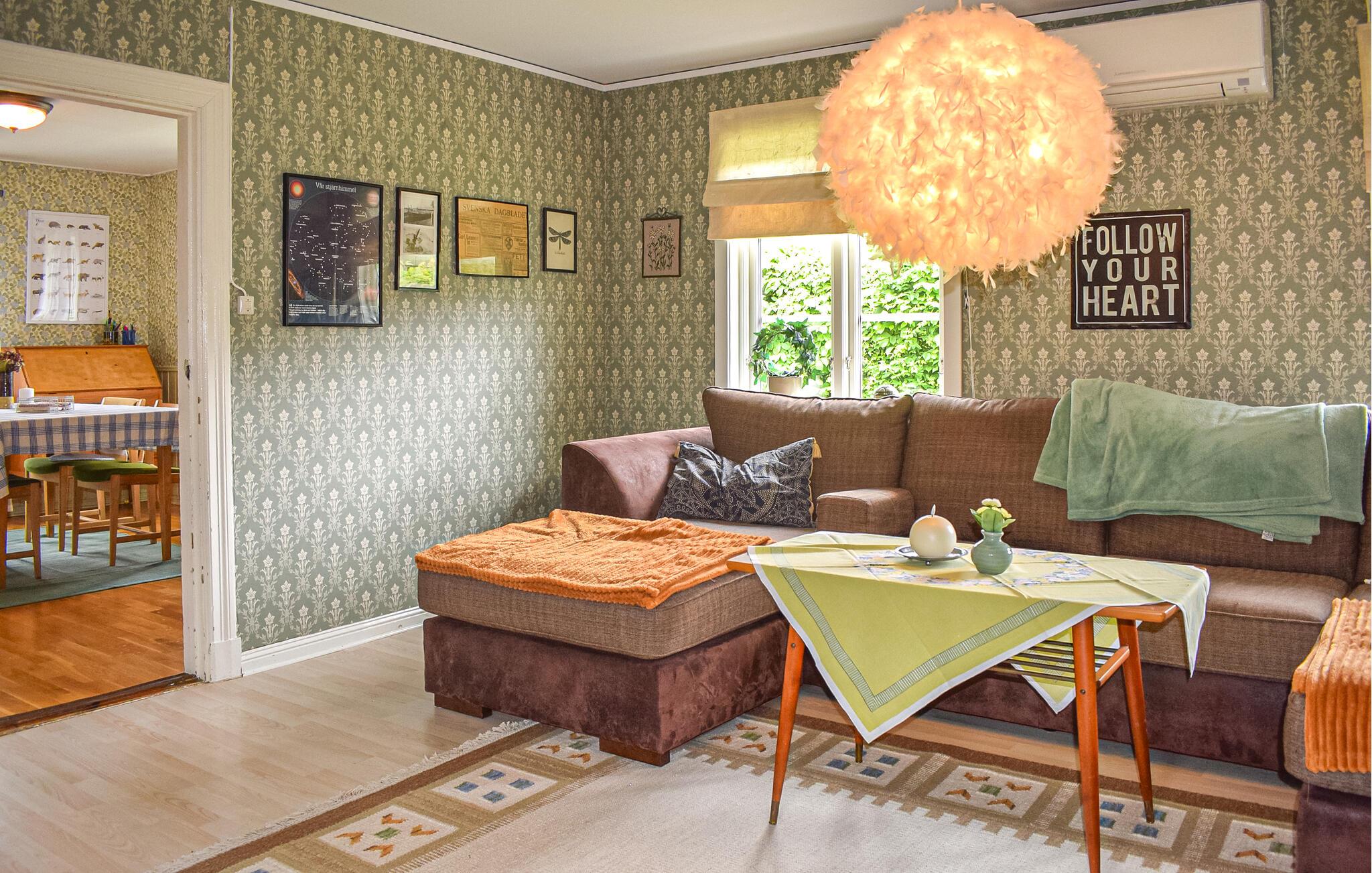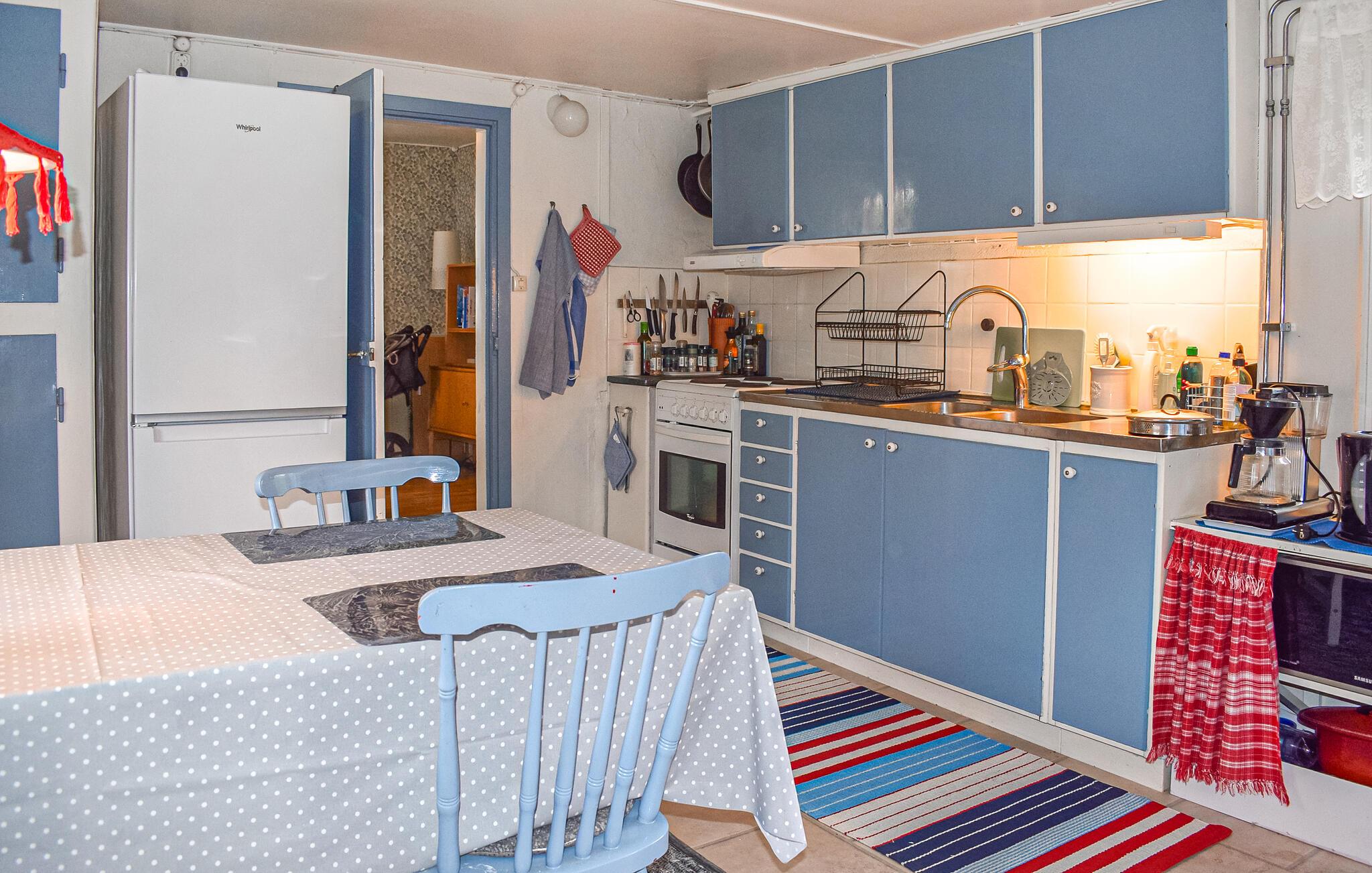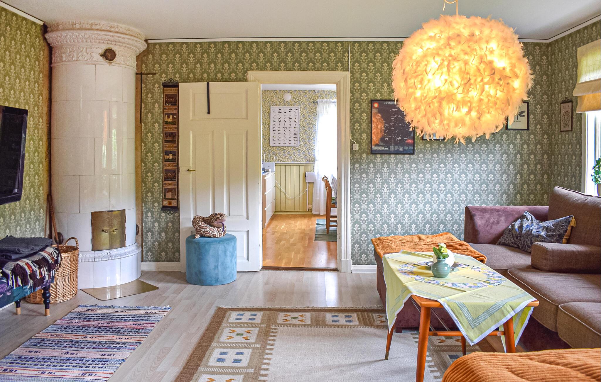 Dette kjærlig innredede feriehuset ønsker deg velkommen med et lyst og romslig interiør og en sjarmerende kombinasjon av nostalgisk stil og moderne detaljer - det ideelle stedet for å komme seg bort fra alt sammen med dine nærmeste. Her kan du trylle frem deilige retter av fersk sopp, slappe av i gyngestolen eller nyte den koselige atmosfæren under harmoniske spillkvelder eller rolige leseøkter.