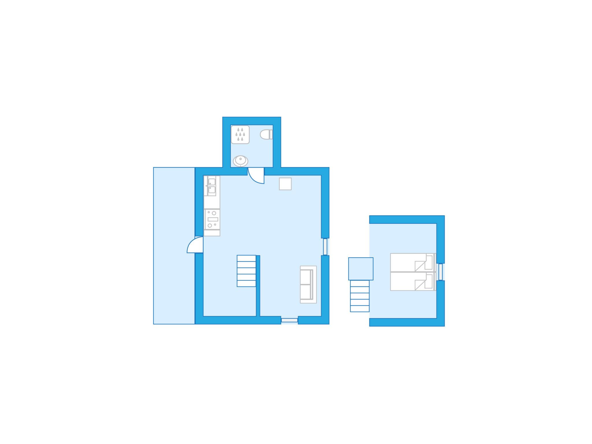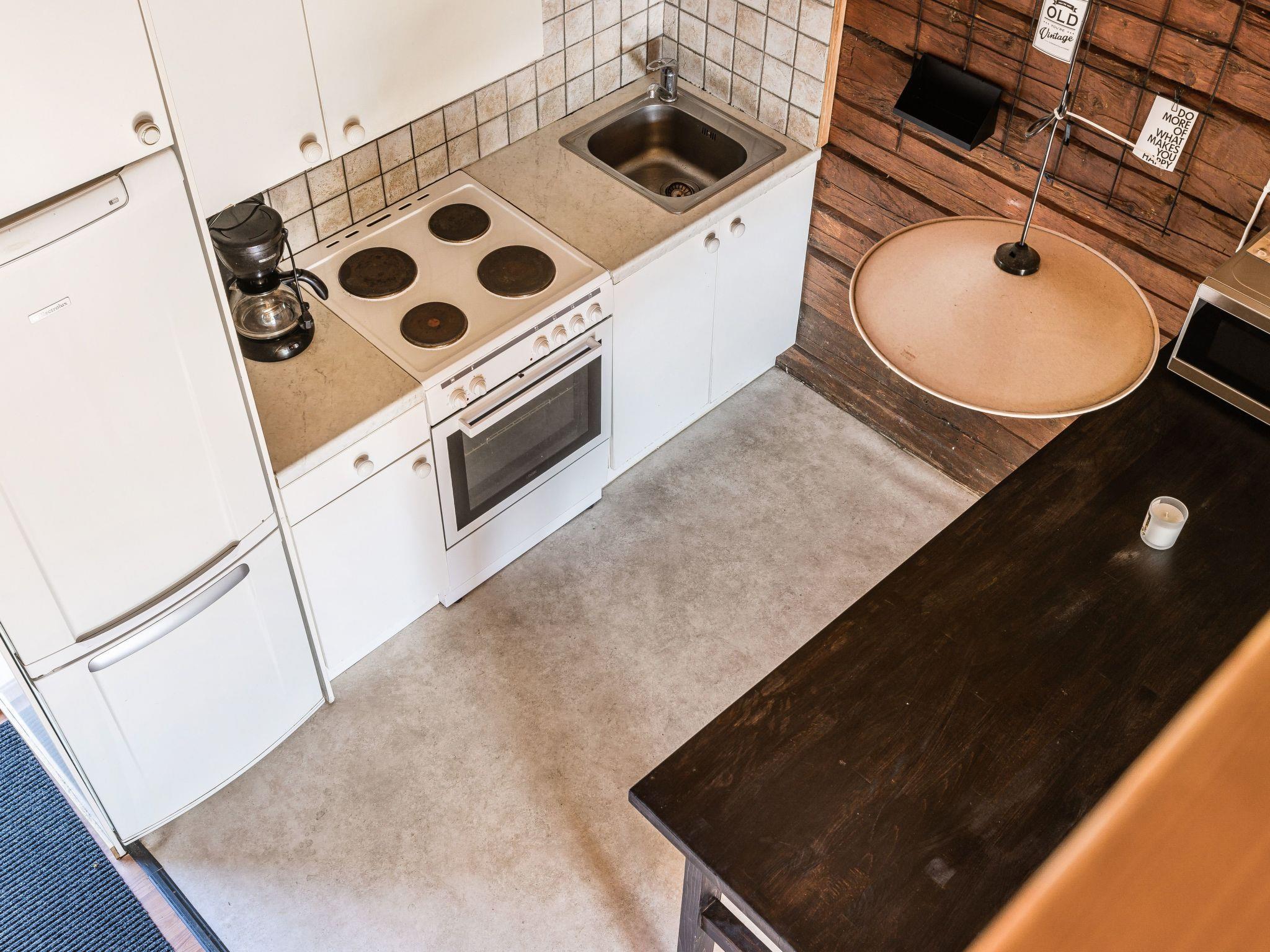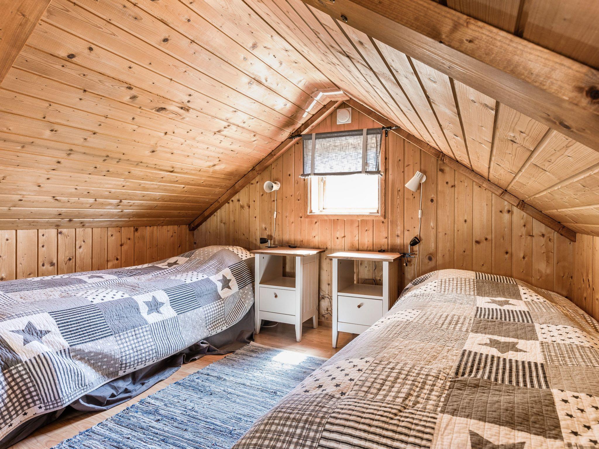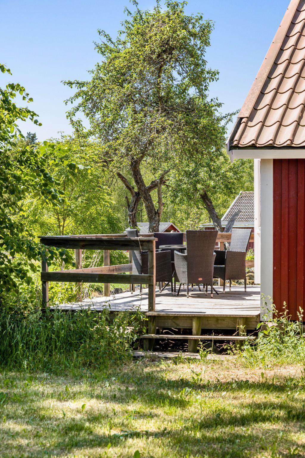 "Skärvudde Torpet", 2-room house 50 m2 on 2 levels. Practical furnishings: living/sleeping room with 1 double sofabed, Scandinavian wood stove, dining table and satellite TV. Exit to the veranda. Open kitchen (oven, 4 ceramic glass hob hotplates, toaster, kettle, microwave, freezer, electric coffee machine). Shower/WC. Electric heating. Upper floor: (steep stair) open living/sleeping room with sloping ceilings with 2 beds. Wooden floors. Terrace. Terrace furniture, barbecue (portable). Facilities: Internet (WiFi, extra). Please note: smoke alarm, fire extinguisher.