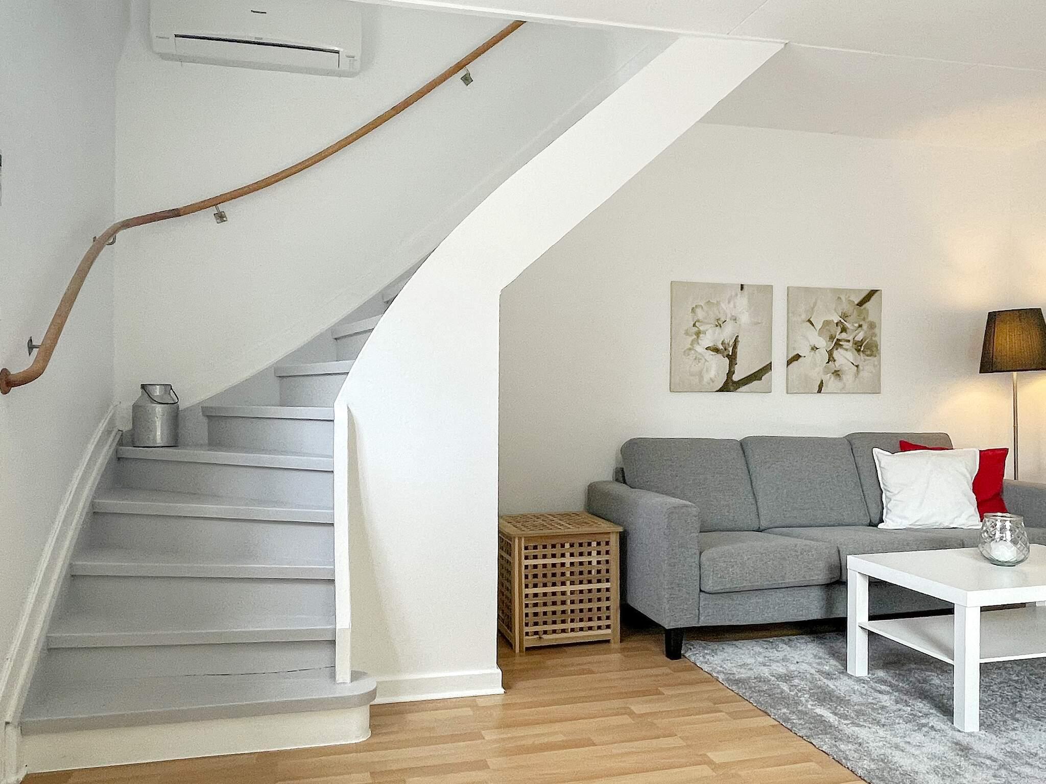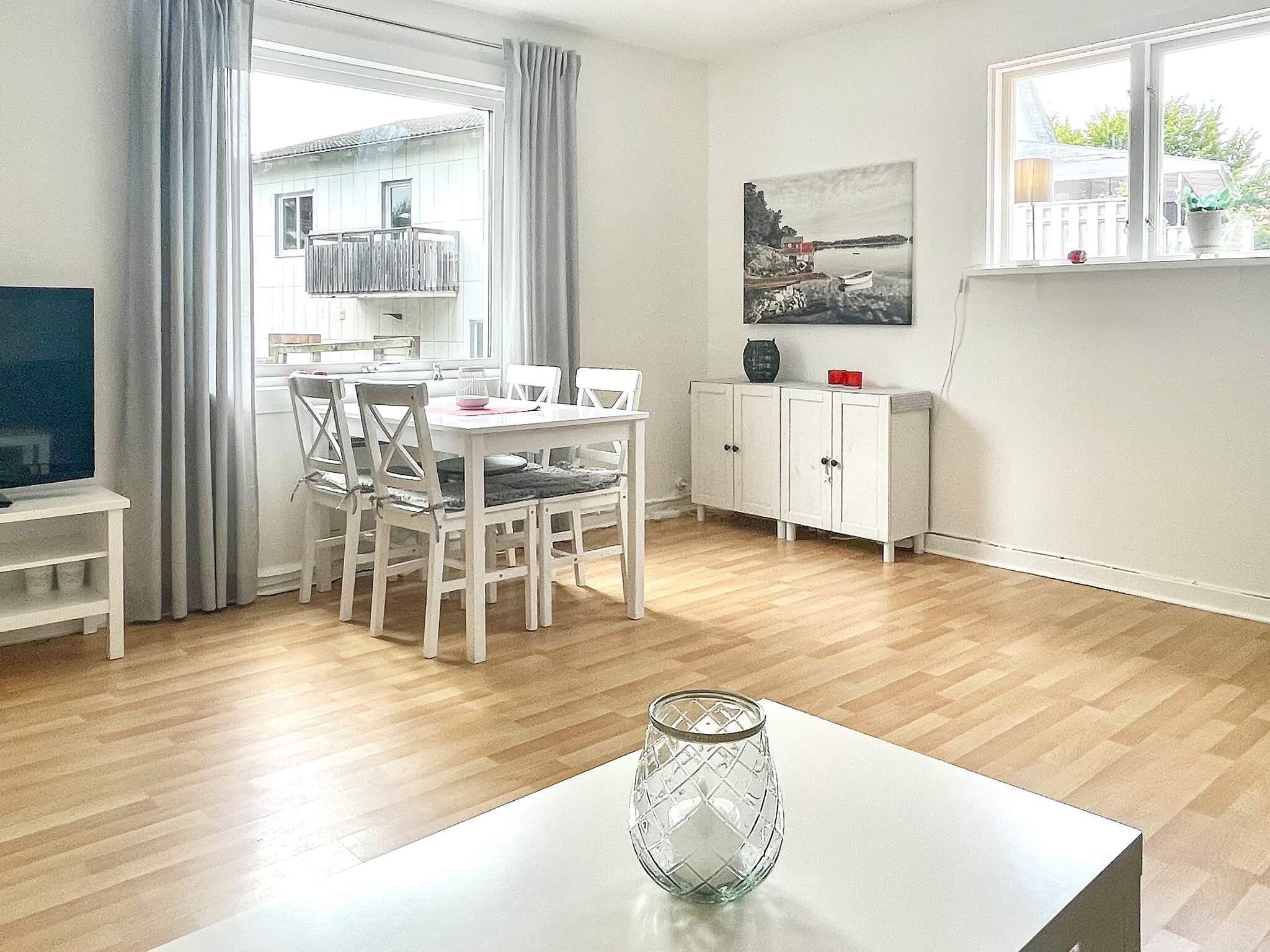 Ni har ett stort sällskapsrum med soffa, tv och matsalsmöbel. Köket är snyggt, rymligt och bland annat utrustat med en airfryer och moccamaster.