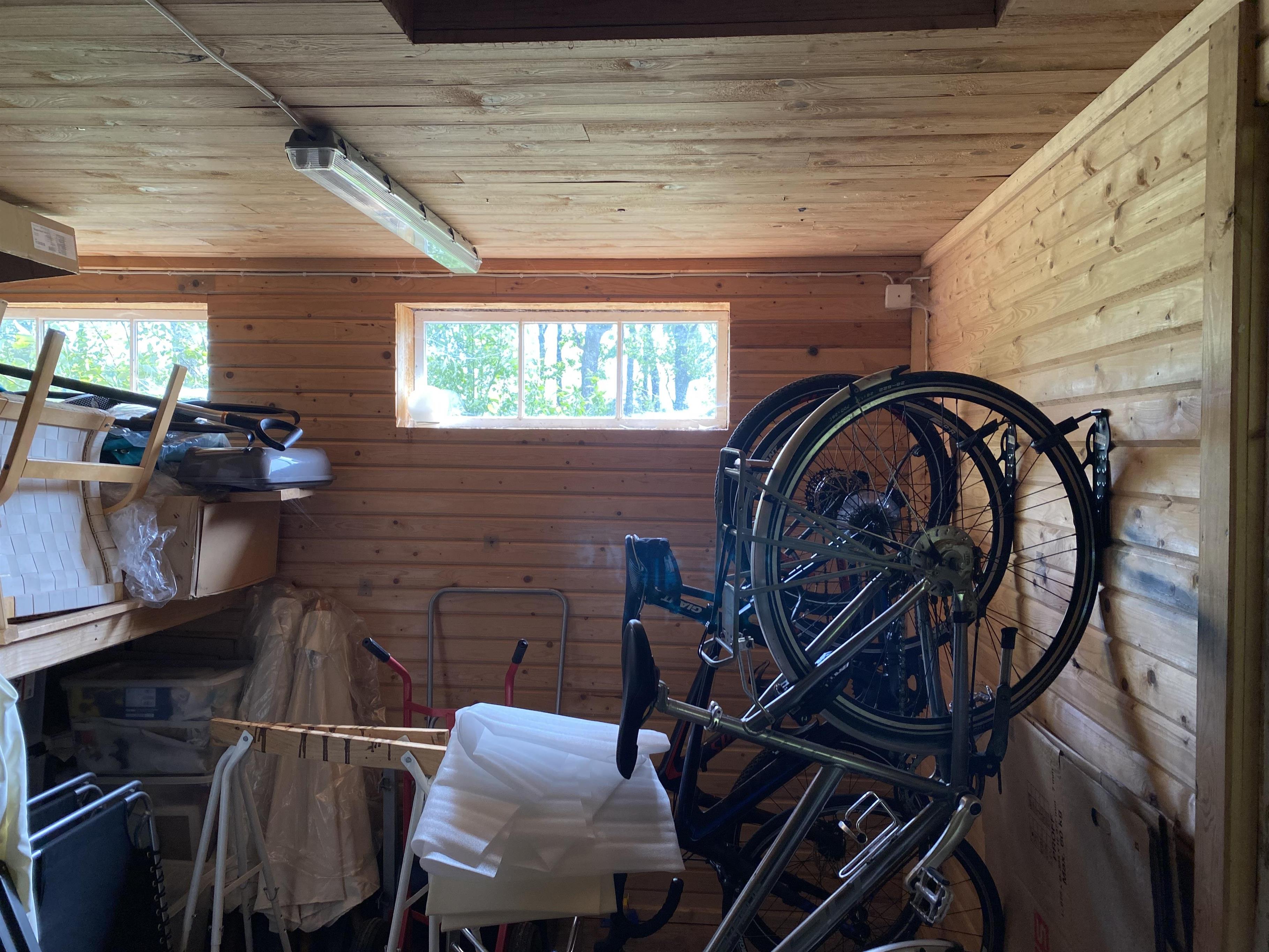 In der Werkstatt/Garage stehen ein Heimtrainer und Trainingsgeräte/Yogamatte zur Verfügung. Es gibt ein paar Fahrräder und Spielzeug für Kinder.