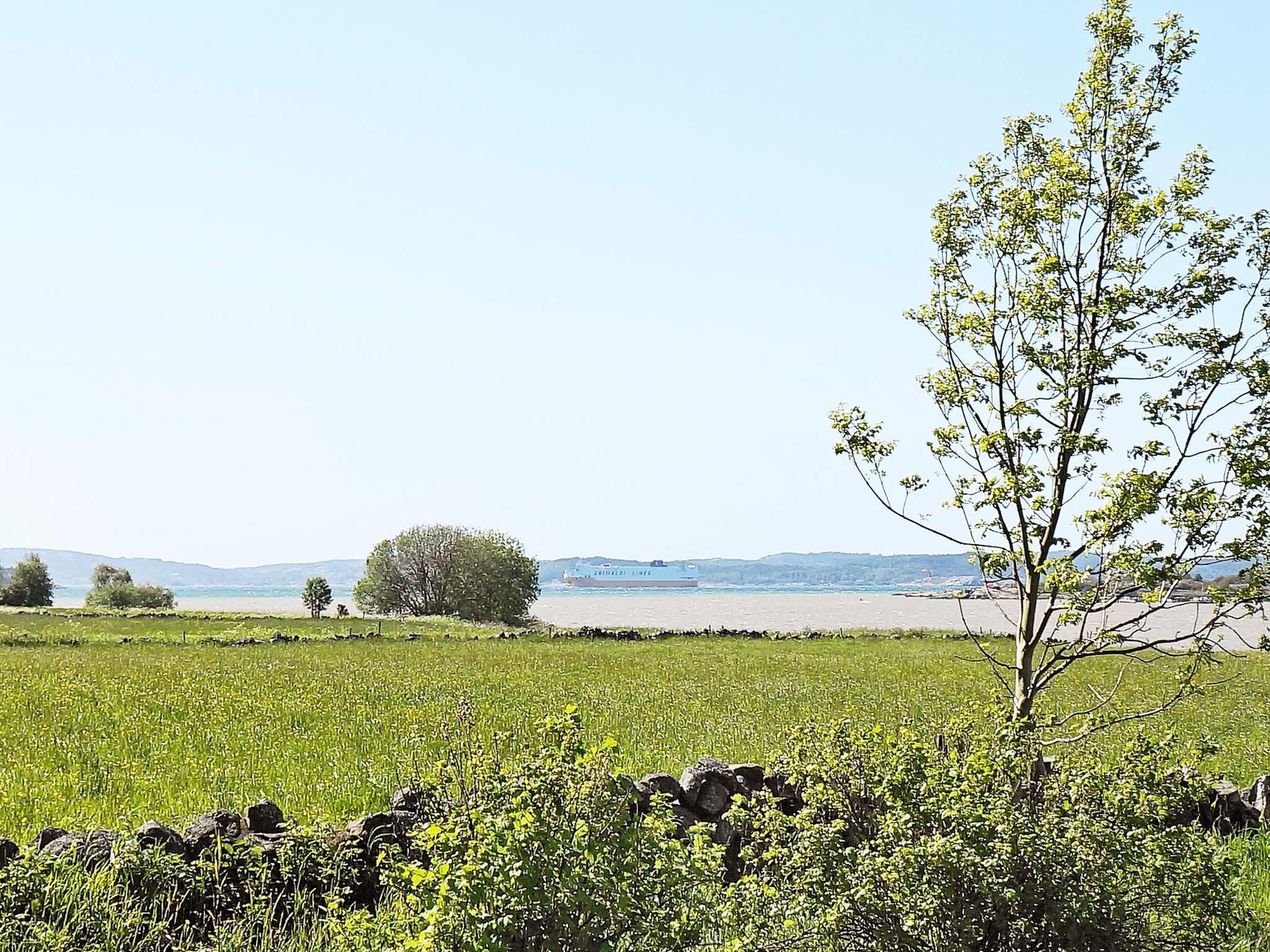 Här har ni en underbar utsikt över fjorden och ängar med betande kor vid strandkanten. Härlig uteplats där ni kan njuta av er ledighet medan ni spanar efter båtar på fjärden. Stor gräsmatta som gjord för lek och spel.