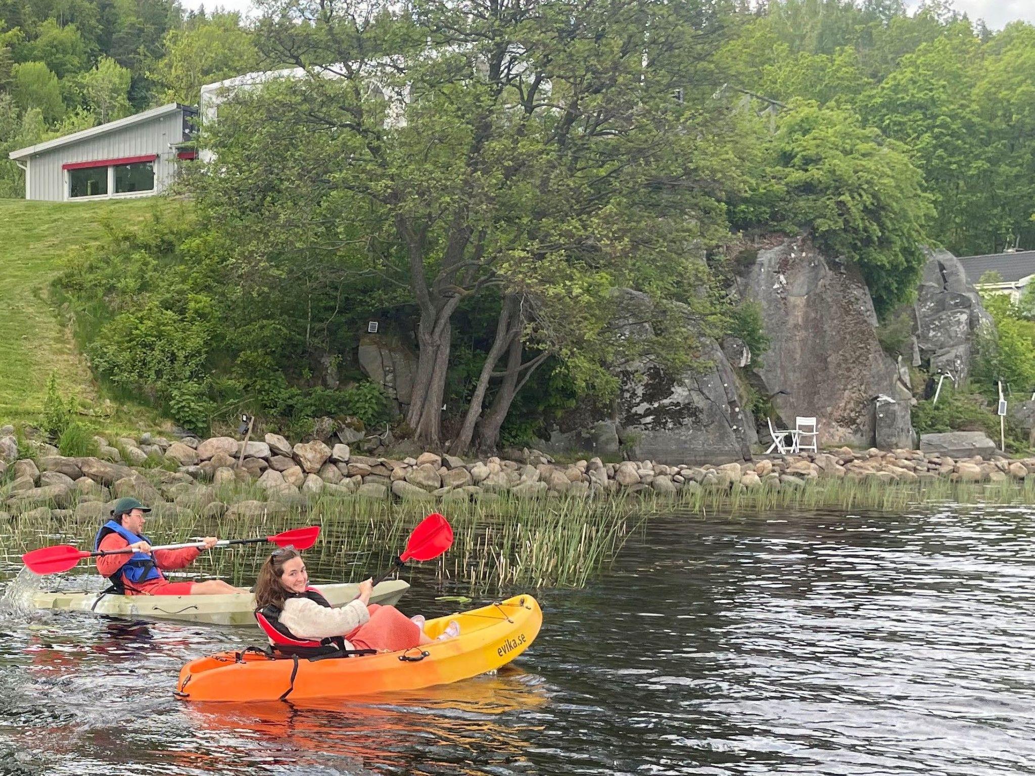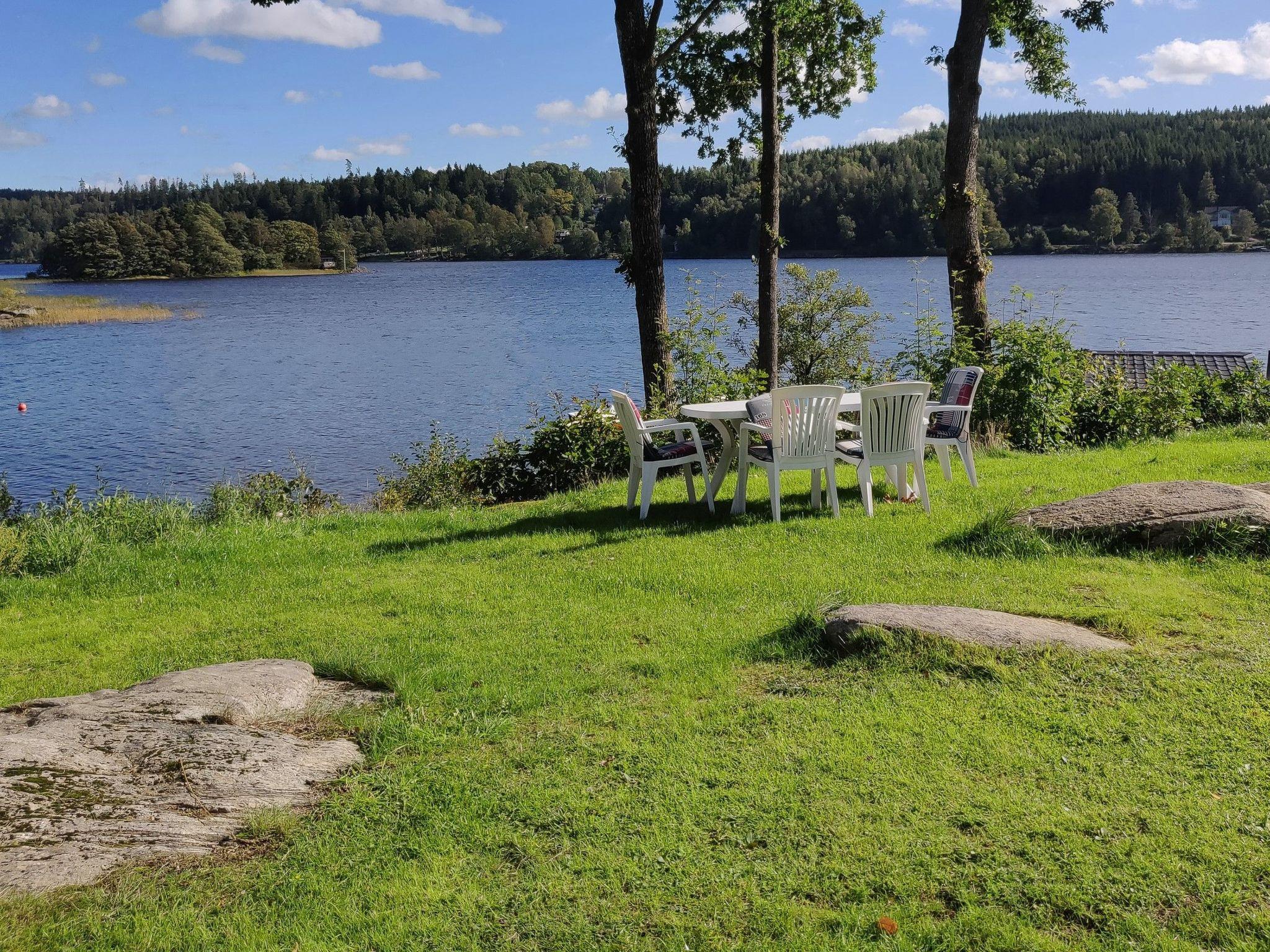 Wooden cottage for 1-4 people only 16min from Gothenburg airport: bedroom, kitchen, bathroom, living-room, free 60Mb/sec wi-fi. Situated 25 meters from lake shore, surrounded by Swedish woods, wonderfully quiet and relaxing. Attractive, newly built and well appointed 35sqm cottage. Unique location on larger property, only 25 meters from edge of lake, stunning panorama and surroundings. BEDROOM with alternatively one double OR two single beds (please specify when booking). Double sofa-bed in the living-room part of the same room. Baby cot available upon request. All bed linen and towels and are included. BATHROOM with toilet, handbasin, walk-in shower with handheld and rain head. KITCHEN with fridge and freezer, hot plate, microwave, toaster, kettle, coffee-machine, mini-dishwasher, cutlery and a selection of base ingredients (tea, coffee, sugar, spices, etc), table for 4. LIVING-ROOM with sofa, smart-TV (with Allente satellite programs, Netflix, Youtube etc). INCLUDED in price: parking on private land, wi-fi 60MB/sec, bedwear, towels, toiletries, hair-dryer, luggage storage, access to jetty/lake-shore, cleaning upon departure. HOUSE-RULES: No smoking indoors. No shoes indoors. Pets are welcome. Guests collect the keys at the main villa on the property. If arrival time is later than 22:00, the key for the cabin will be left in a lock box next to the door of the cabin, and the guest will be given a secret code to access the key. In this case, registration and payment will take place the next morning.