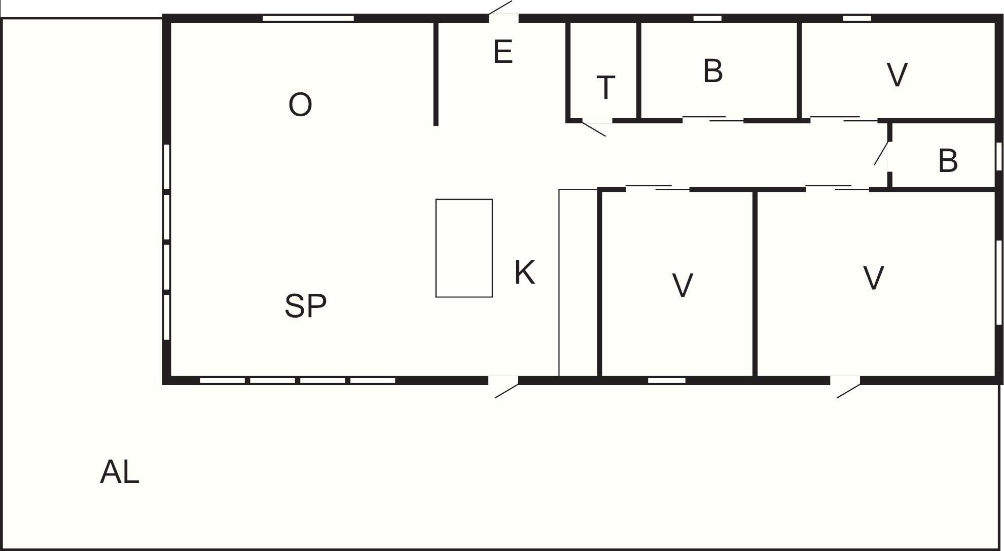 Ni har ett stort öppet sällskapsrum med matplats, vardagsrumsdel och snyggt kök. Ni sover i tre sovrum. Det största med dörr ut mot altanen är utrustad med en dubbelsäng. De andra två med en våningssäng vardera där underslafen är 120cm bred.
