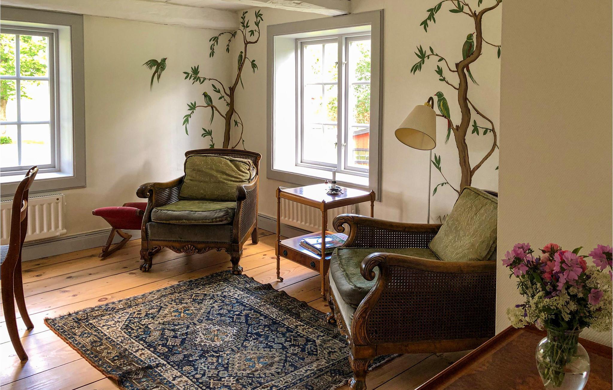 Det er mulig å feriere når som helst på året i dette residenset. Spellinge Säteri nær Mantorp består av en gård fra 1700-tallet og mindre hus. Her venter en fantastisk atmosfære på gjestene. Dette huset ble bygget i 1750 og kalles Östra Flyglen (østfløyen). Det har 2 soverom, åpen peis i stuen og lav takhøyde i enkelte deler av huset. Huset er ikke egnet for barn. Du er her i et vakkert område og kan nyte en skog for spaserturer. Det er også en 75 hektar stor hjortepark i området.
