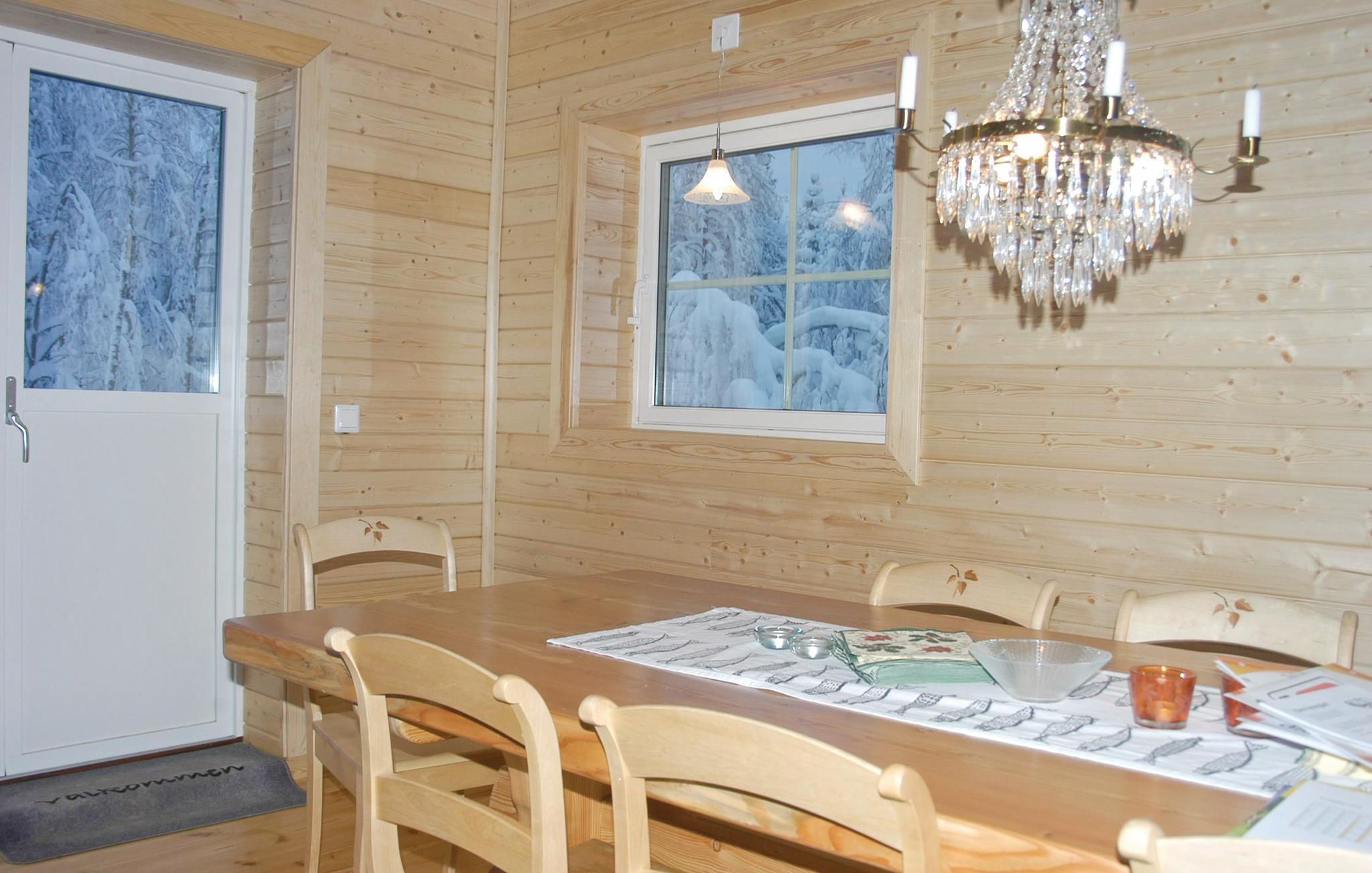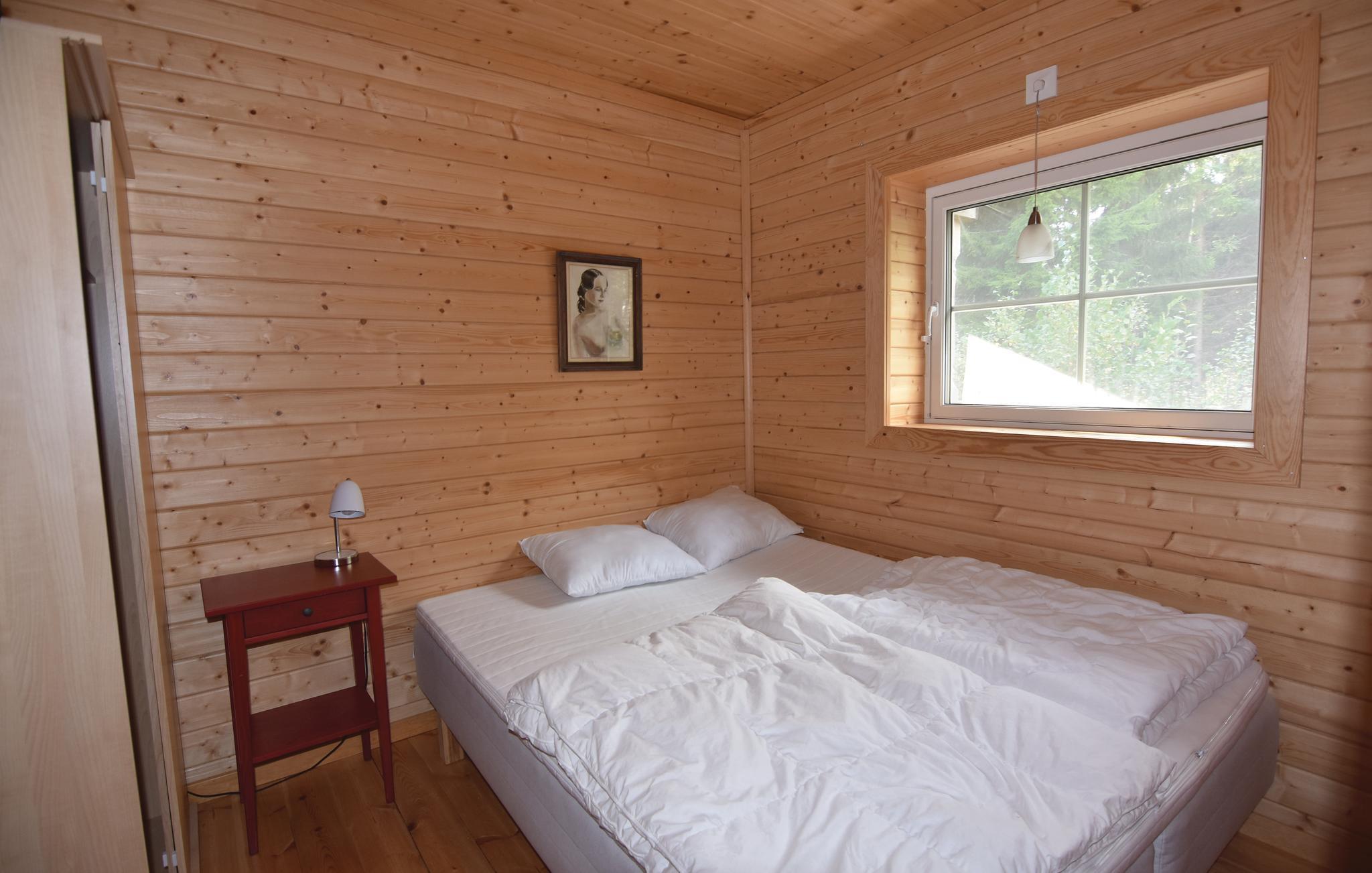 Veldig vakker hytte i villmarken, bygget med økologiske materialer, lokalt tre og miljøbevissthet gjennom og gjennom. Den naturlige eiendommen grenser til store skoger med mye bær og sopp og rikelig dyreliv. Hytta har en åpen planløsning med stor, vakker stue med kvalitetsmøbler. Koselig åpen hems, f.eks. for barna. På grunn av støyforskrifter er det kun tillatt å bruke elektriske motorer på sjøen.