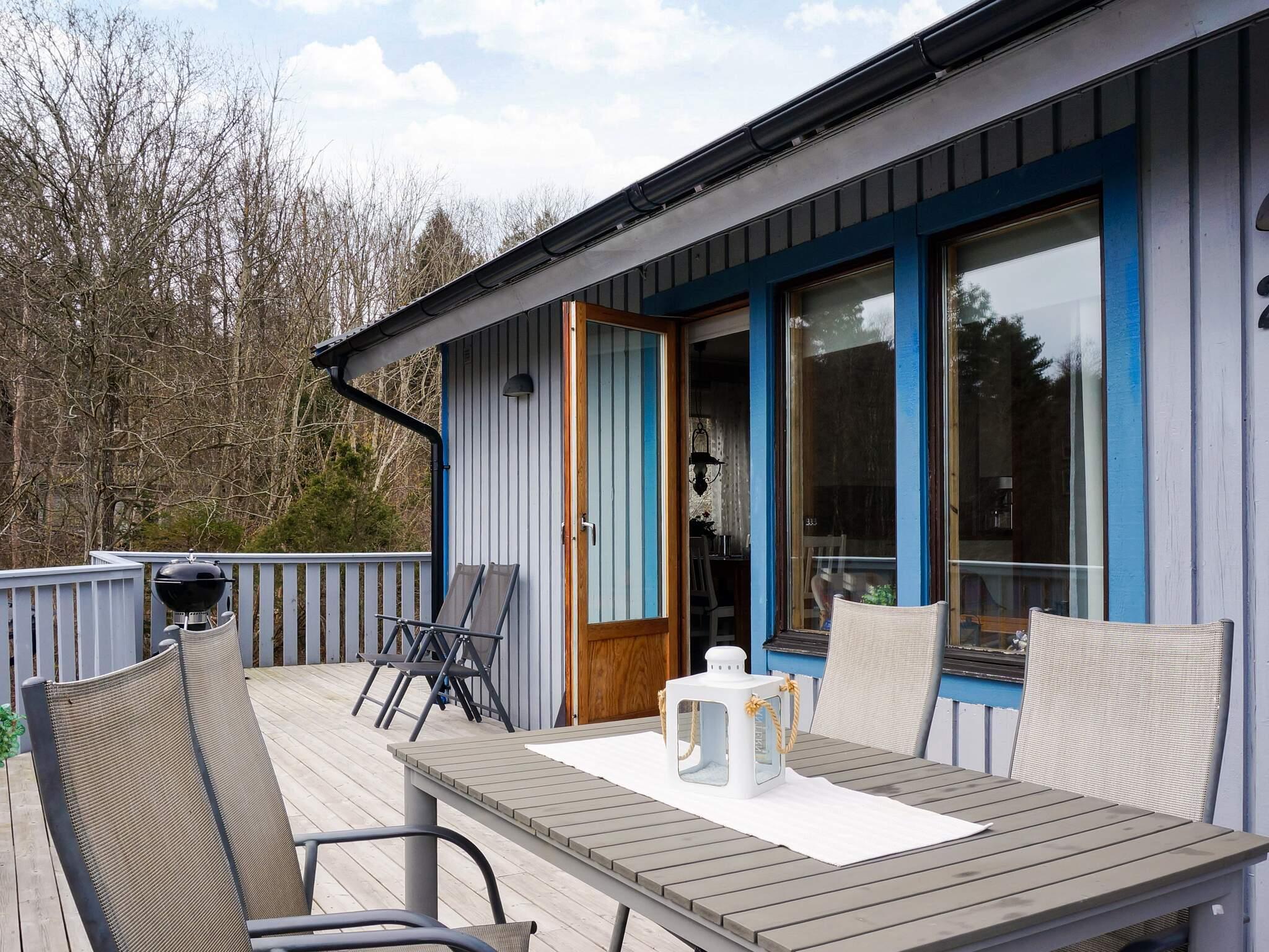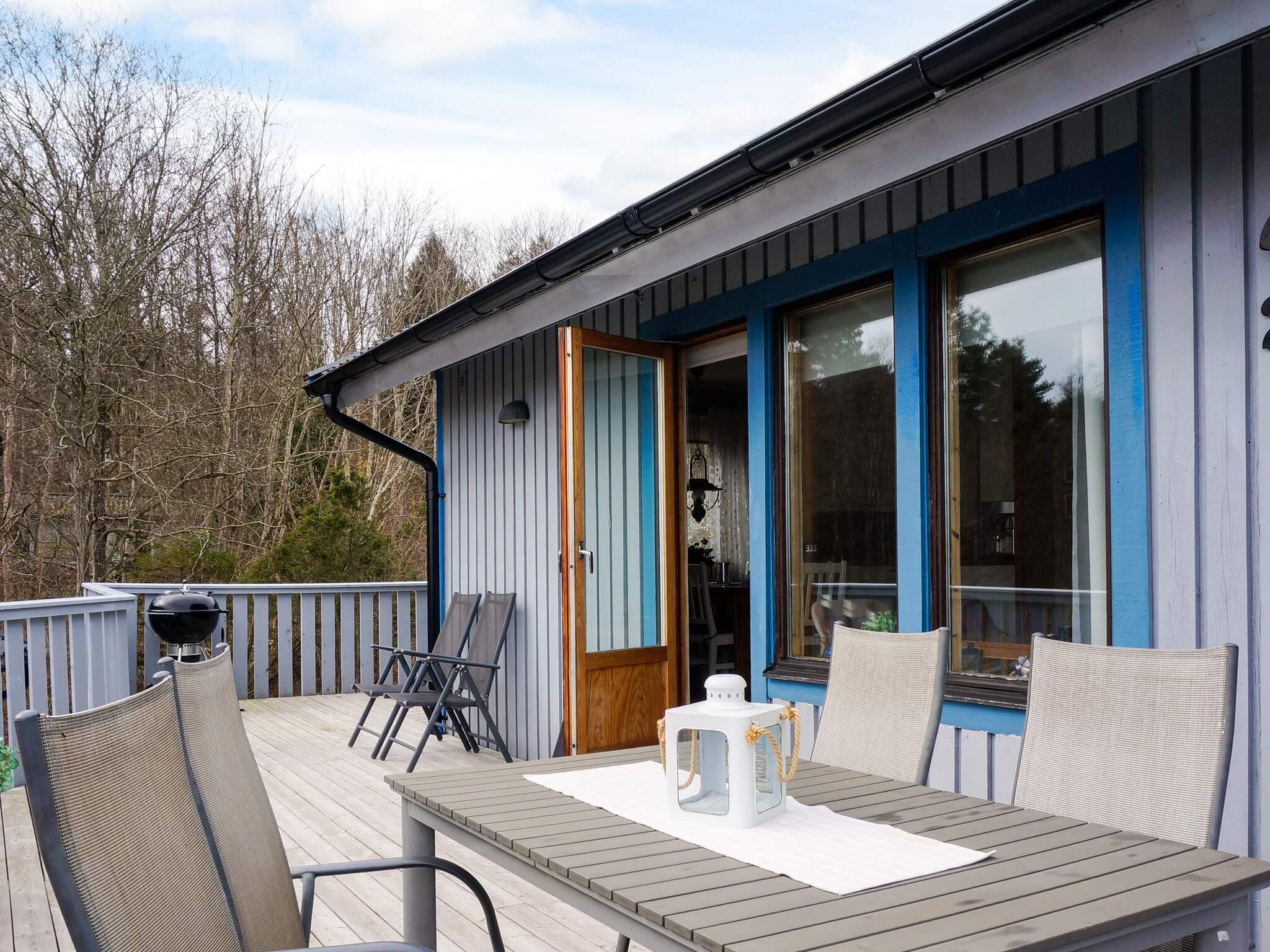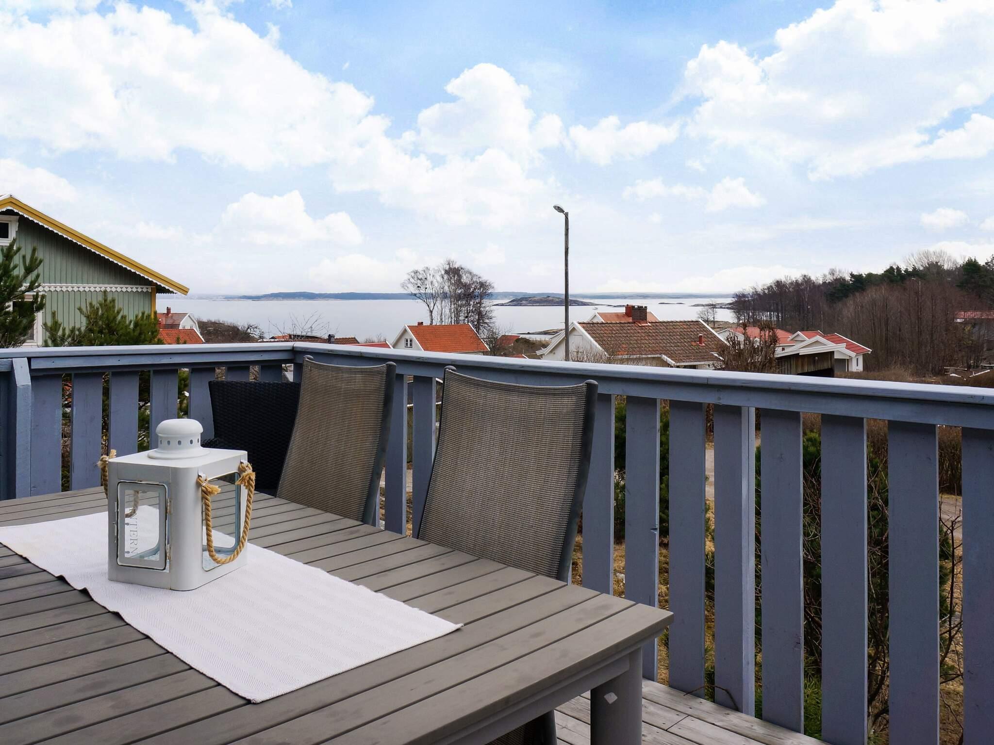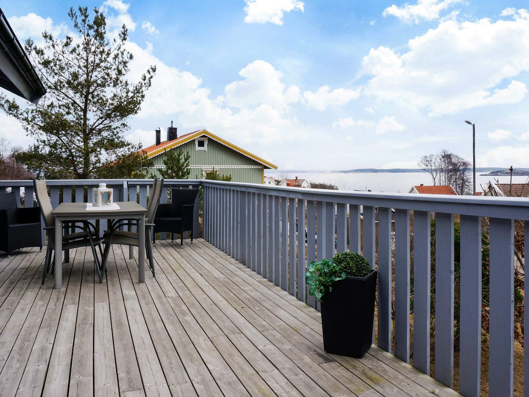 Från vardagsrummet når ni altanområdet där ni i kvällssolen kan grilla er en god bit mat eller avnjuta nyinköpta färska skaldjur från någon av fiskarnas sjöbodar i närheten. Från husets entrésida når ni ytterligare en altan med utemöbler, det är bara att välja, sol eller skuggläge. Framför huset finns en gräsmatta som ger plats åt spel och lek. Bakom huset ligger naturen orörd och inbjudande för en liten kvälls- eller morgon promenad bland bergskullar och tallar.