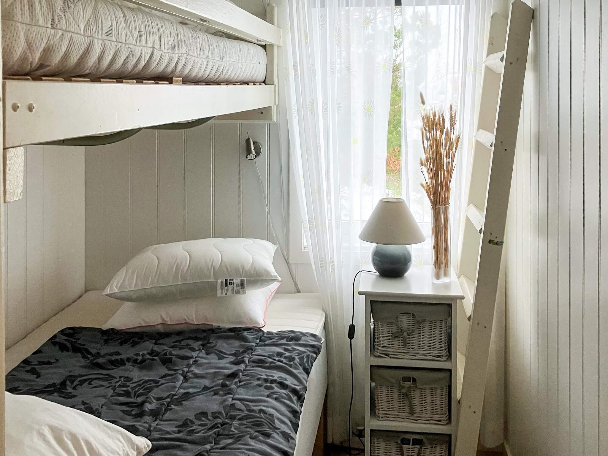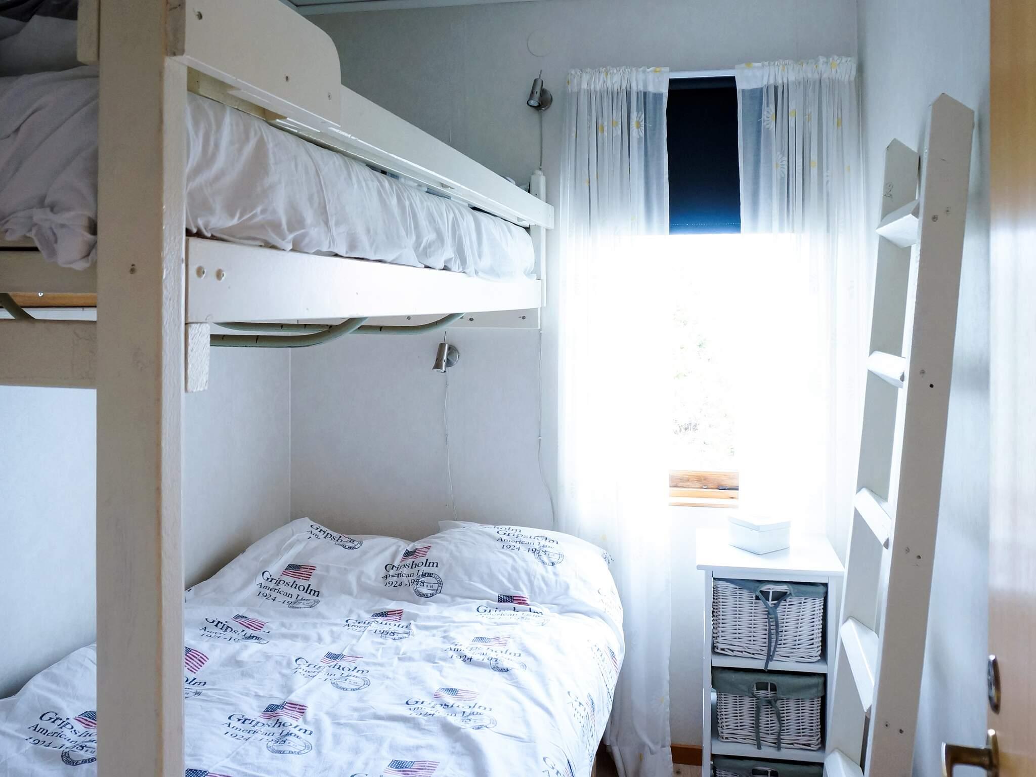 Stugan är i ett plan där kök med kyl och frys, matplats och vardagsrum med TV bildar en gemensam öppen yta. Två trevliga sovrum, ett med våningssäng samt ett med två enkelsängar och ett badrum med dusch och tvättmaskin.