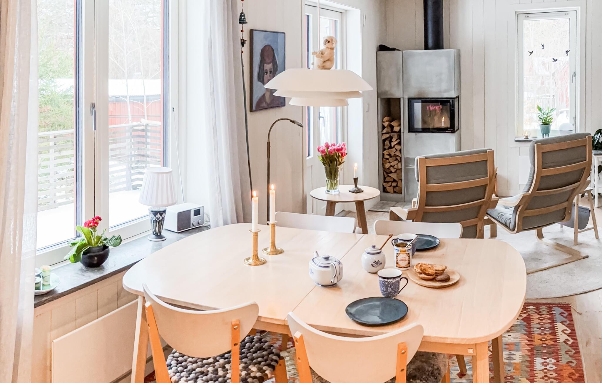 Dette sjarmerende huset er det ideelle tilfluktsstedet for en pause fra hverdagen. Mye treverk, vennlige farger og en vedovn skaper en atmosfære som raskt får deg til å føle deg som hjemme. Tilbring en ettermiddag med prat og kaffe i sofaen eller lytt til favorittmusikken din. På kjøligere kvelder kan du tenne opp i vedovnen eller slappe av i den koselige varmen i badstuen.