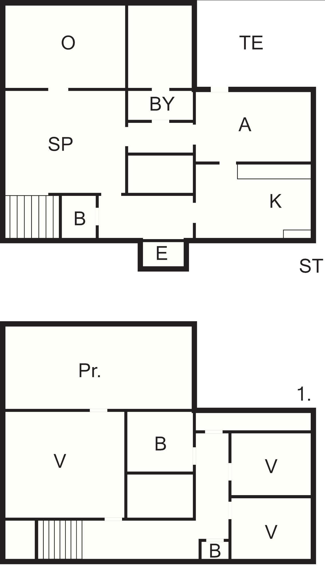 På nedervåningen finns ett sovrum med enkelsäng och möjlighet till extra bädd vid behov. Här finns även ett stort matrum med flygel, där musikaliska gäster gärna får låta tonerna ljuda. Köket är fullt utrustat, och det finns gott om gemensamma ytor för måltider och umgänge.