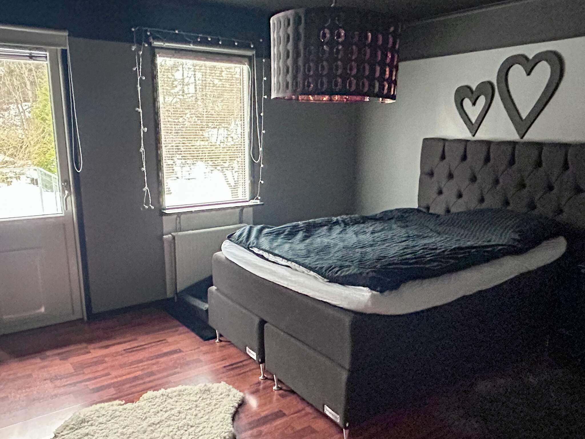 Huset rymmer upp till fem personer och erbjuder ett hemtrevligt boende med gott om plats för familj eller vänner. Här finns ett fullt utrustat kök för dig som vill laga egna måltider under vistelsen. Vardagsrummet är ljust och inbjudande med fönster mot trädgården och altanen, vilket skapar en härlig känsla av rymd och närhet till grönskan utanför.