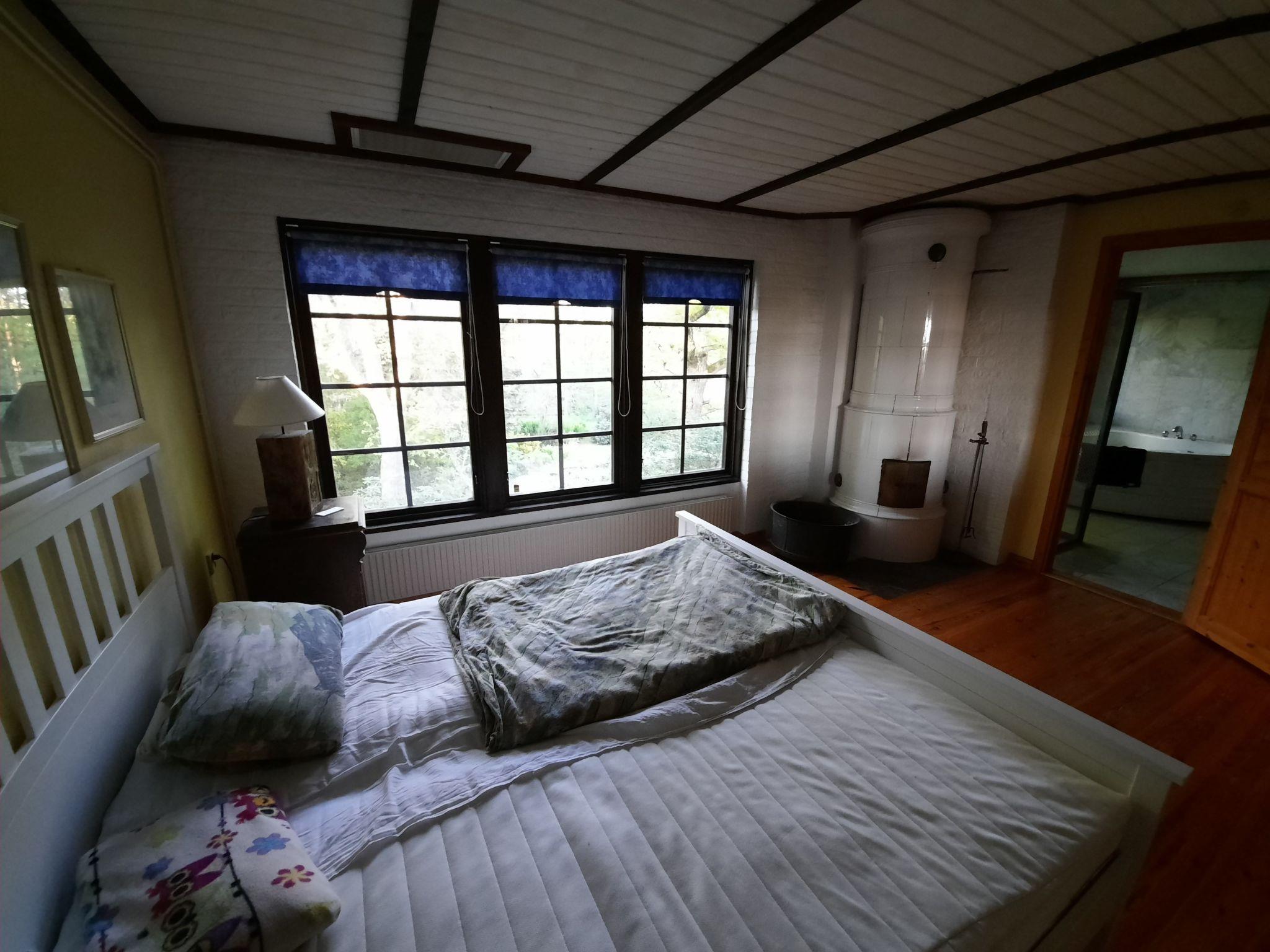 The house is equipped with all amenities. The bathroom is equipped with a shower and whirlpool. There is also access to the sauna from the bathroom. The large kitchen offers a panoramic view of the lake and the surrounding nature. There is an electric cooker with hob and oven, a coffee filter machine, a toaster and a stereo radio. The living room is furnished with two sofas and two armchairs as well as German satellite TV. A sofa offers space for 2 people to sleep. There is a double bed in the bedroom. In another bedroom there is sleeping space for 2 people.