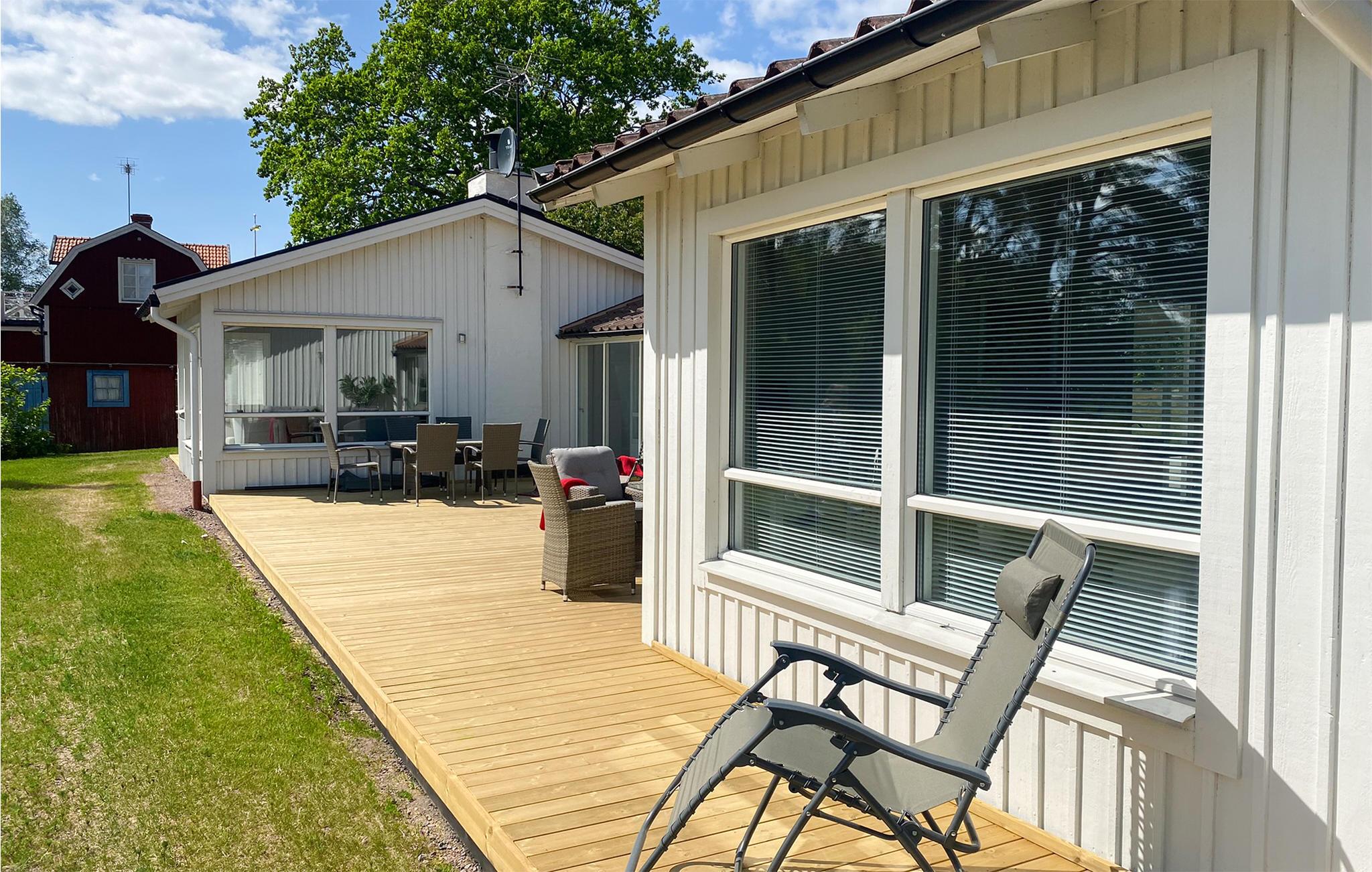 Denne ferieboligen på Revsudden er et ideelt utgangspunkt for flotte fisketurer, fotturer og kulturopplevelser. Inne i huset finner du koselige møbler, og i stuen kan du forvente hyggelige familiemåltider, planlegging av utflukter og spillkvelder med forfriskninger og snacks. Eller kanskje du foretrekker hjemmelagde pannekaker? Ikke glem syltetøyet! Etter fisketuren eller fotturen kan du forfriske deg i Kalmarsund på ettermiddagen. Om morgenen kan du kjøpe brød i bakeriet Töserna på Revet og nyte en solfylt frokost på terrassen.
