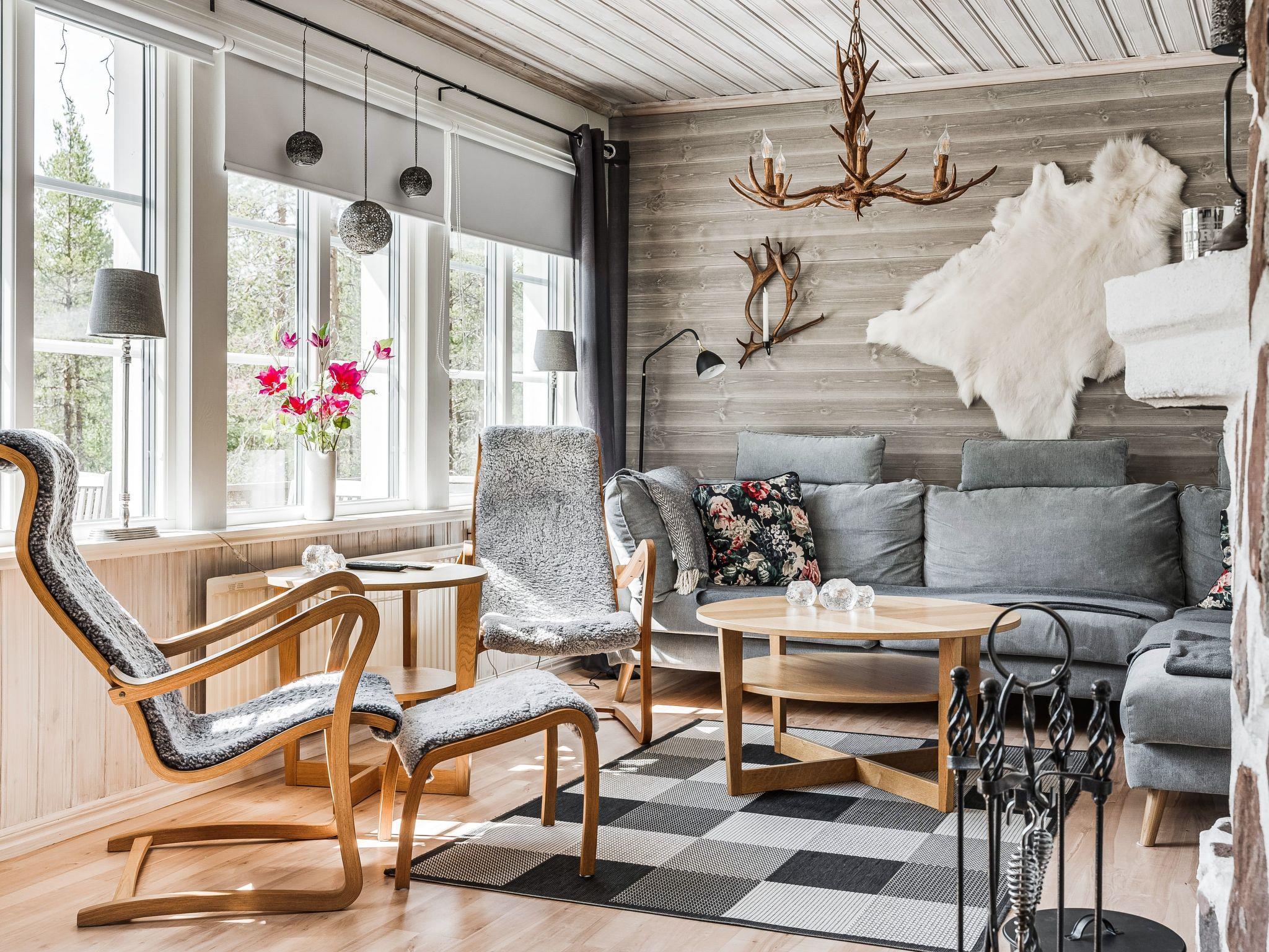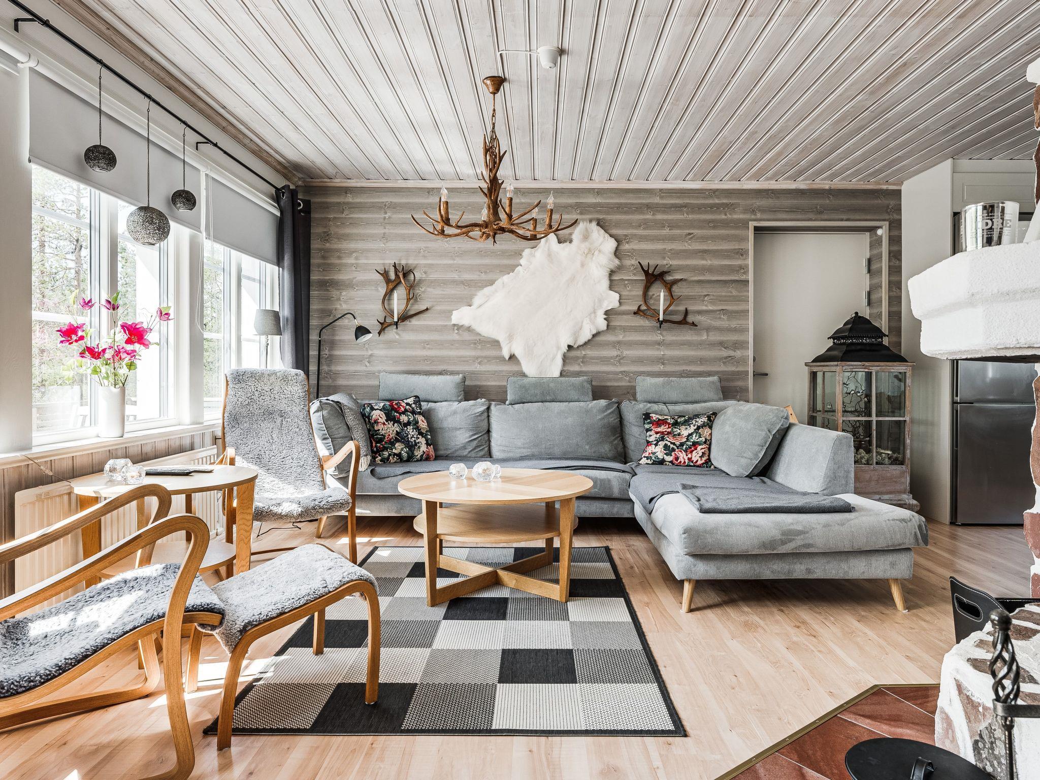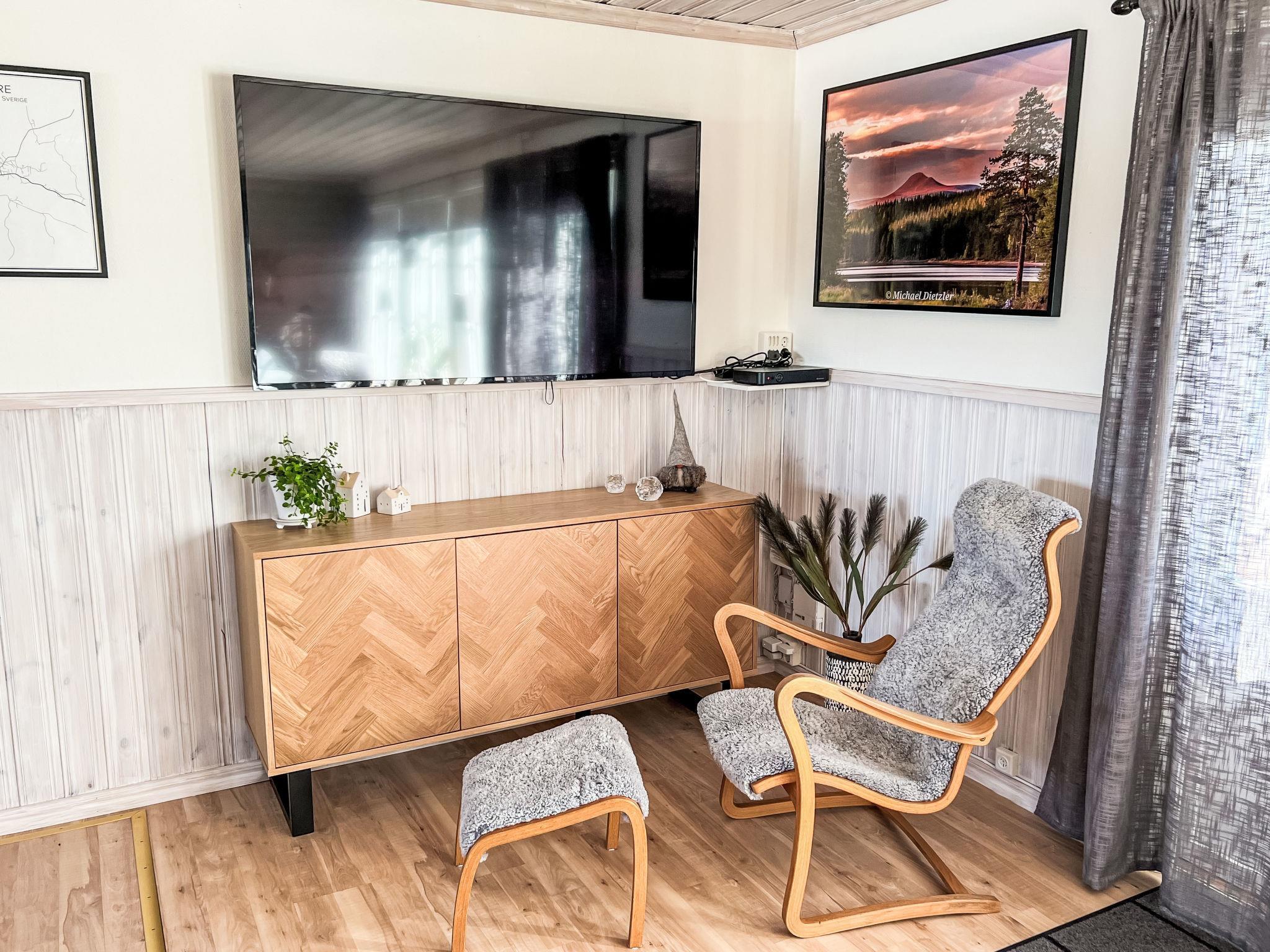 "Kringelfjorden Nävern", 4-room house 109 m2. Cosy and wooden furniture furnishings: living room with open-hearth fireplace and satellite TV. Exit to the terrace. 2 rooms, each room with 1 double bed. 1 room with 1 sofabed. Open kitchen (4 hot plates, oven, dishwasher, microwave, freezer, electric coffee machine) with dining table. Shower/WC, sep. WC, Sauna. Electric heating. Small terrace, patio. Terrace furniture. Facilities: washing machine, iron, children's high chair. Internet (WiFi). Please note: non-smoking house. Smoke alarm, fire extinguisher. Freezer approx. 90 l.