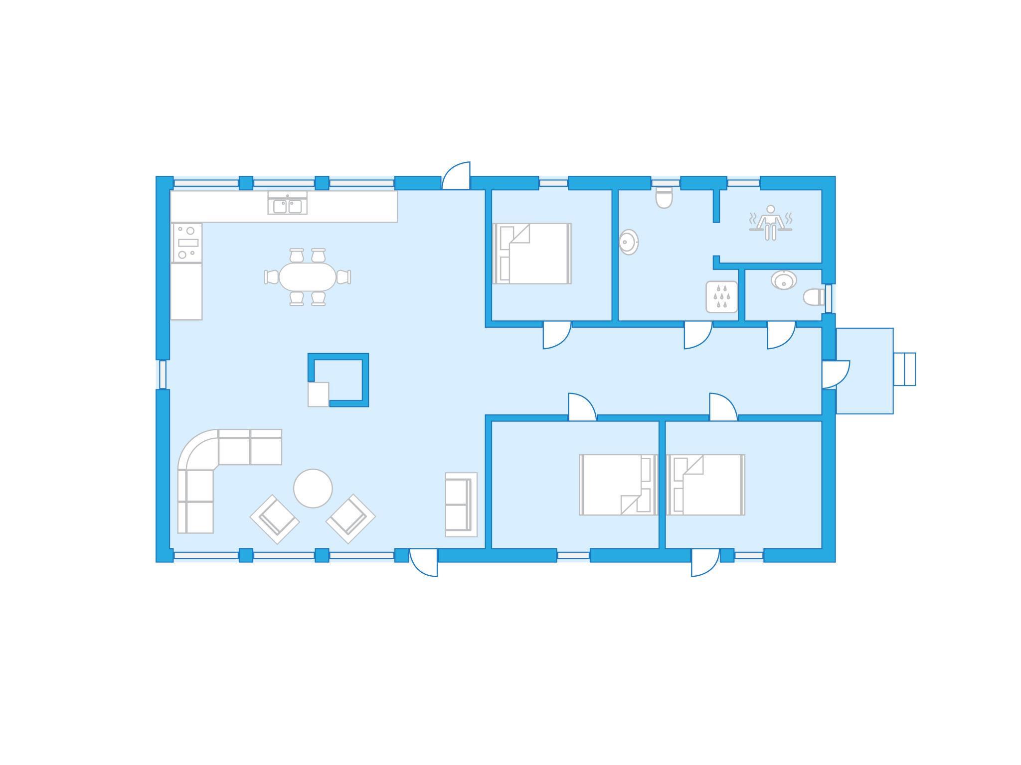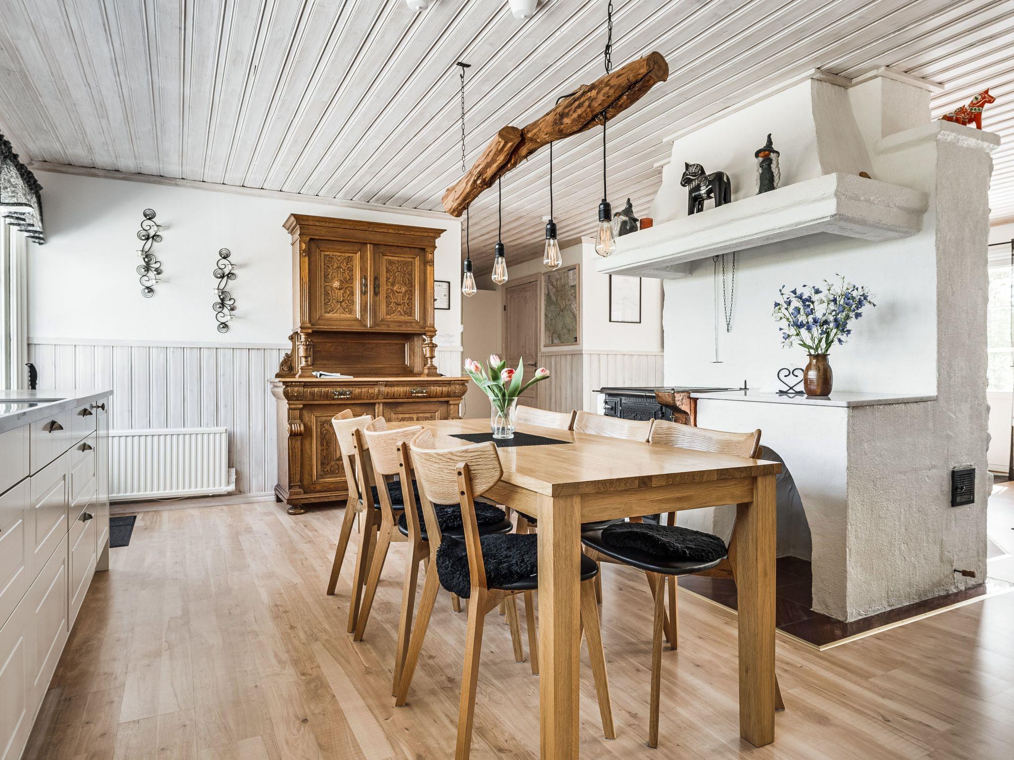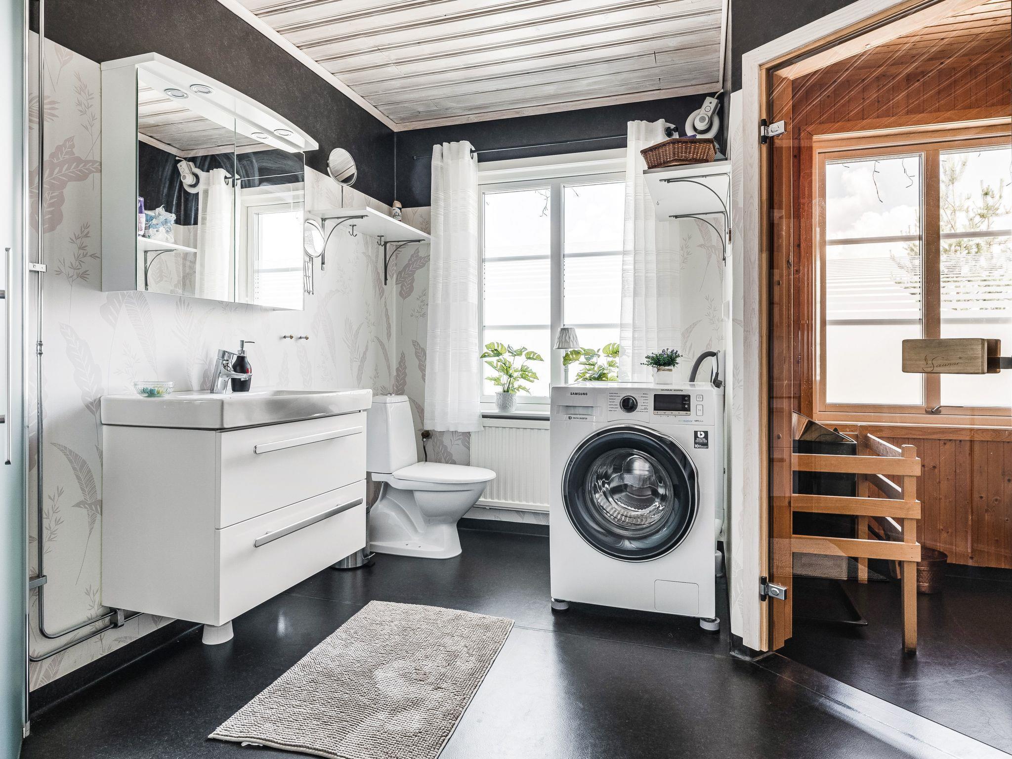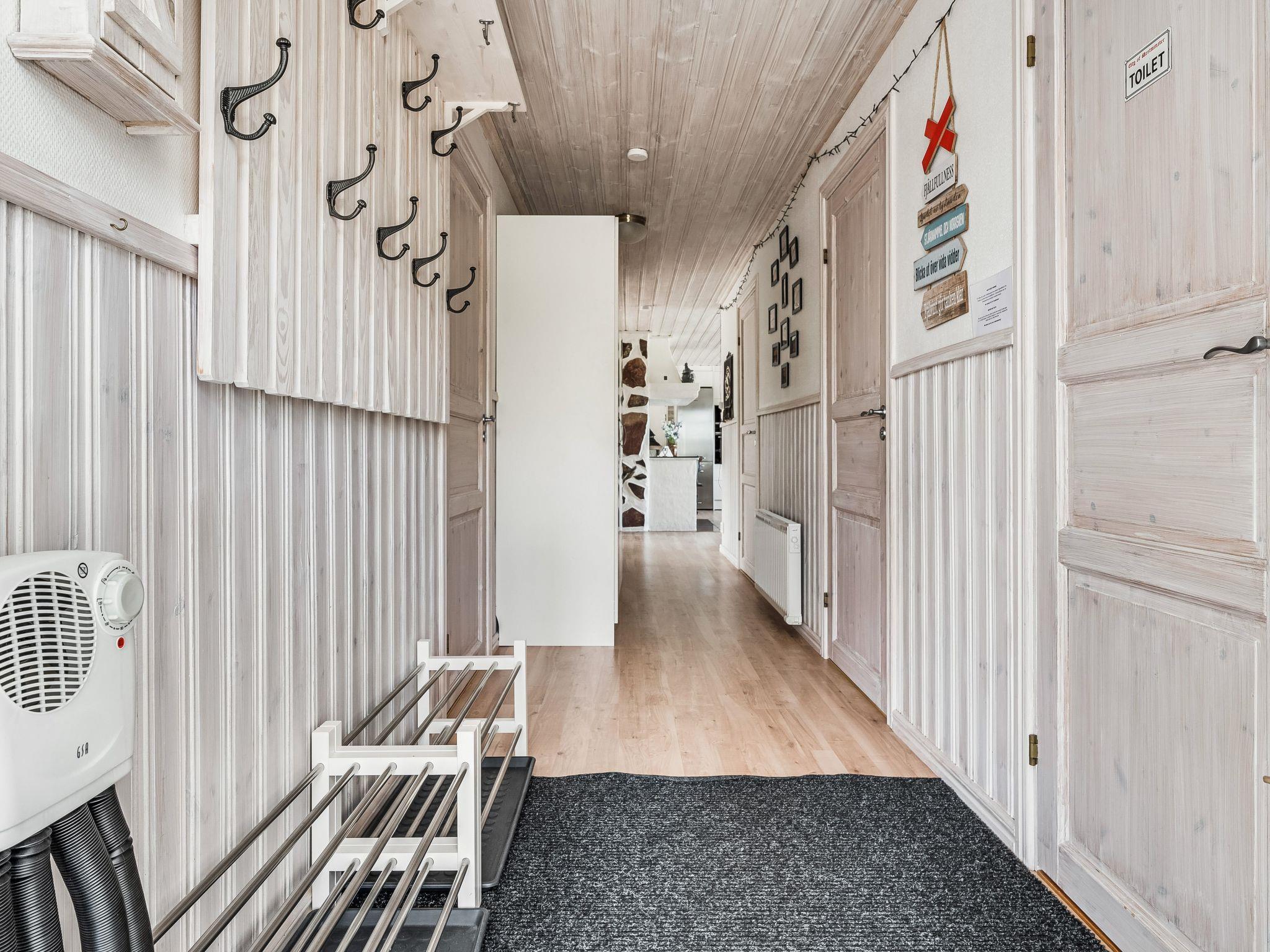 "Kringelfjorden Nävern", 4-room house 109 m2. Cosy and wooden furniture furnishings: living room with open-hearth fireplace and satellite TV. Exit to the terrace. 2 rooms, each room with 1 double bed. 1 room with 1 sofabed. Open kitchen (4 hot plates, oven, dishwasher, microwave, freezer, electric coffee machine) with dining table. Shower/WC, sep. WC, Sauna. Electric heating. Small terrace, patio. Terrace furniture. Facilities: washing machine, iron, children's high chair. Internet (WiFi). Please note: non-smoking house. Smoke alarm, fire extinguisher. Freezer approx. 90 l.