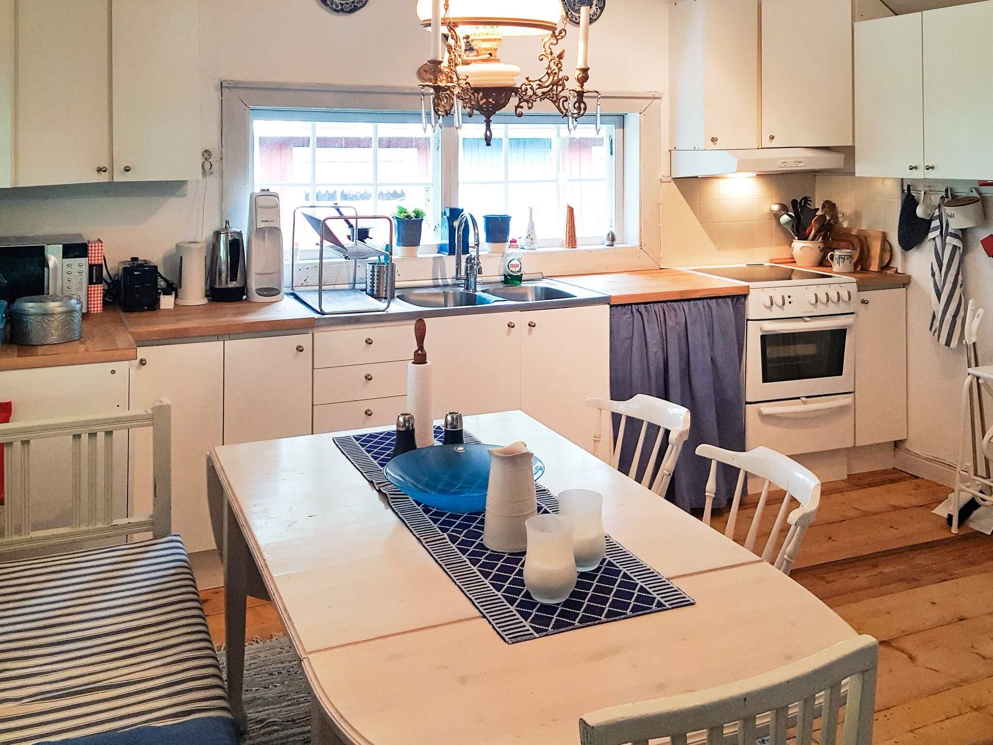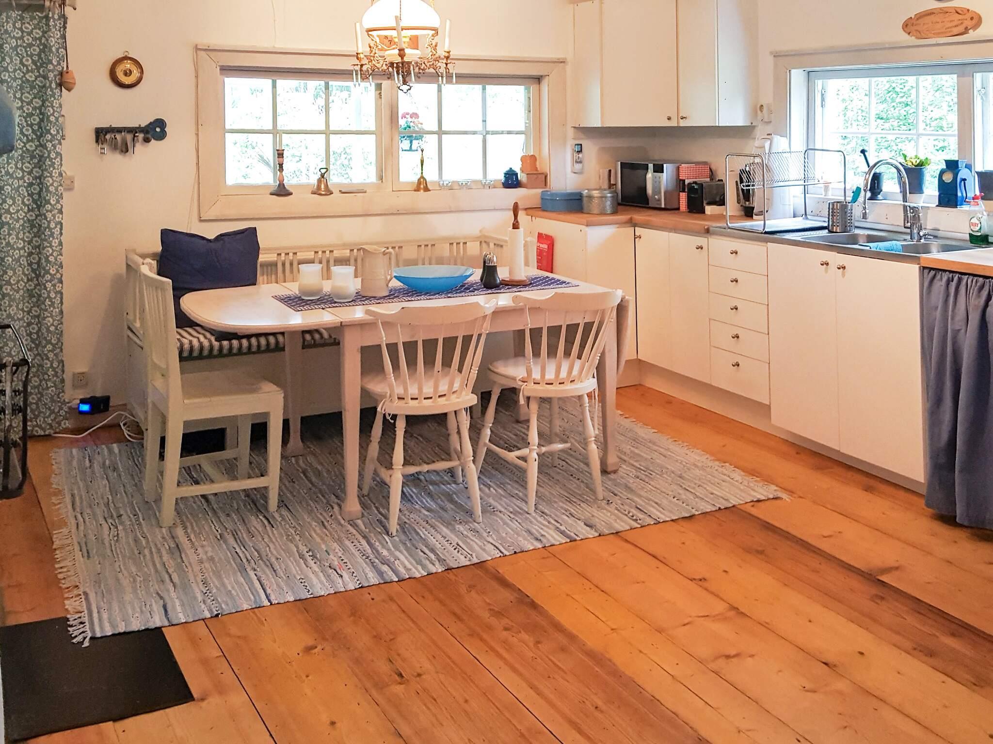 Inne i stugan finner du ett rymligt och välutrustat kök med matplats och järnkamin som kan sprida skön värme under kyliga dagar. Vardagsrummet har en bekväm soffgrupp och en öppen spis, där kan koppla av efter dagens utflykter. Det finns två sovrum i huset, varav ett rum har en dubbelsäng och det andra rummet har två enkelsängar, i ett genomgångsrum finns en bäddsoffa. Här finns ett även badrum med dusch och wc.