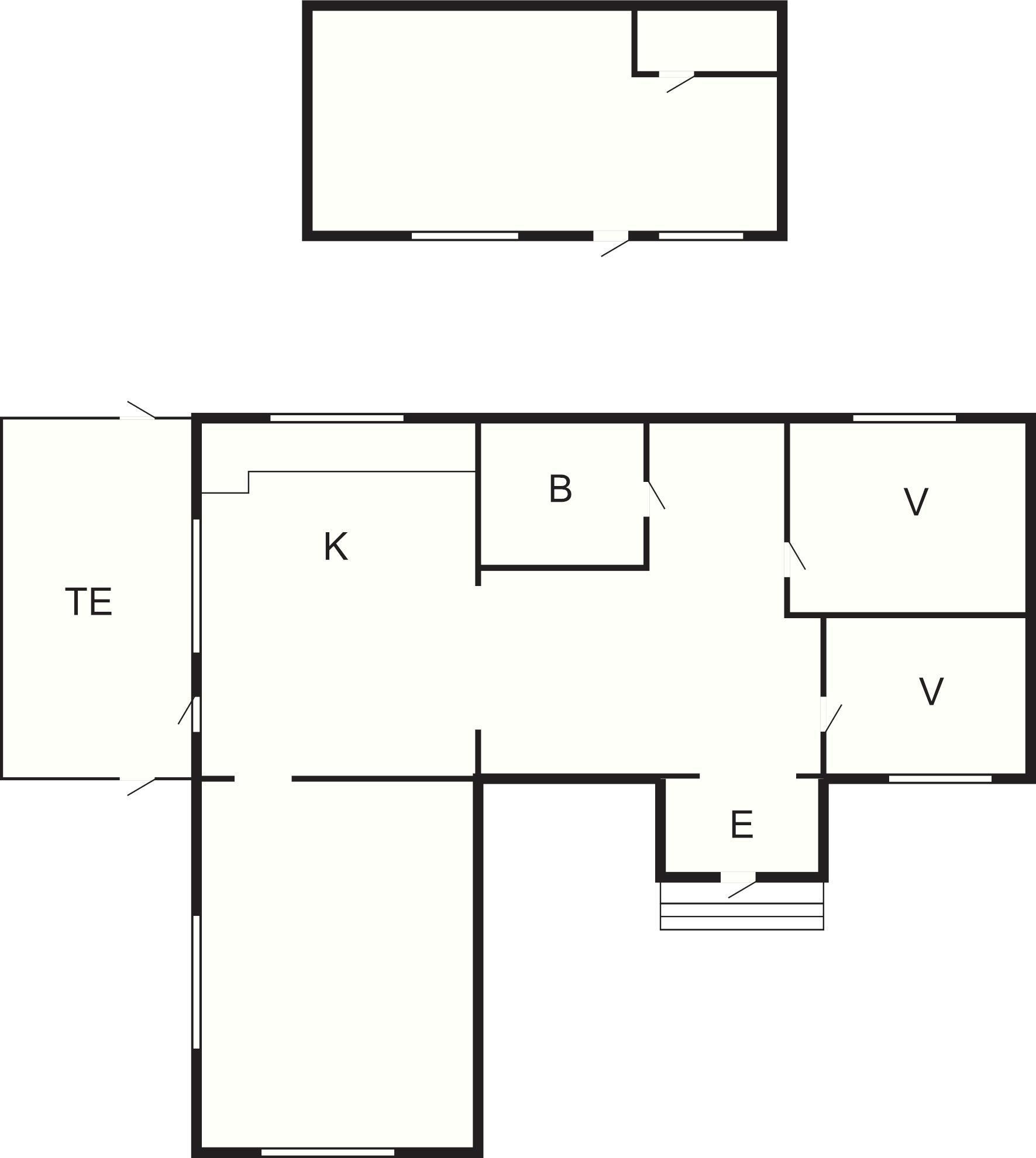 Kjøkken: Vedovn, El-komfyr, ovn, kjøl/frys, mikro, kaffetrakter