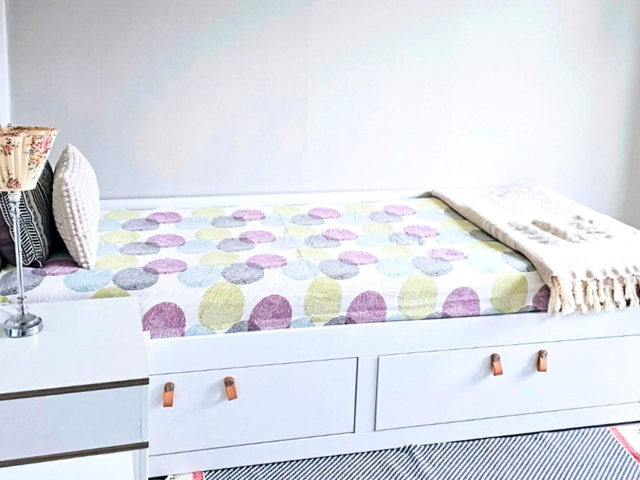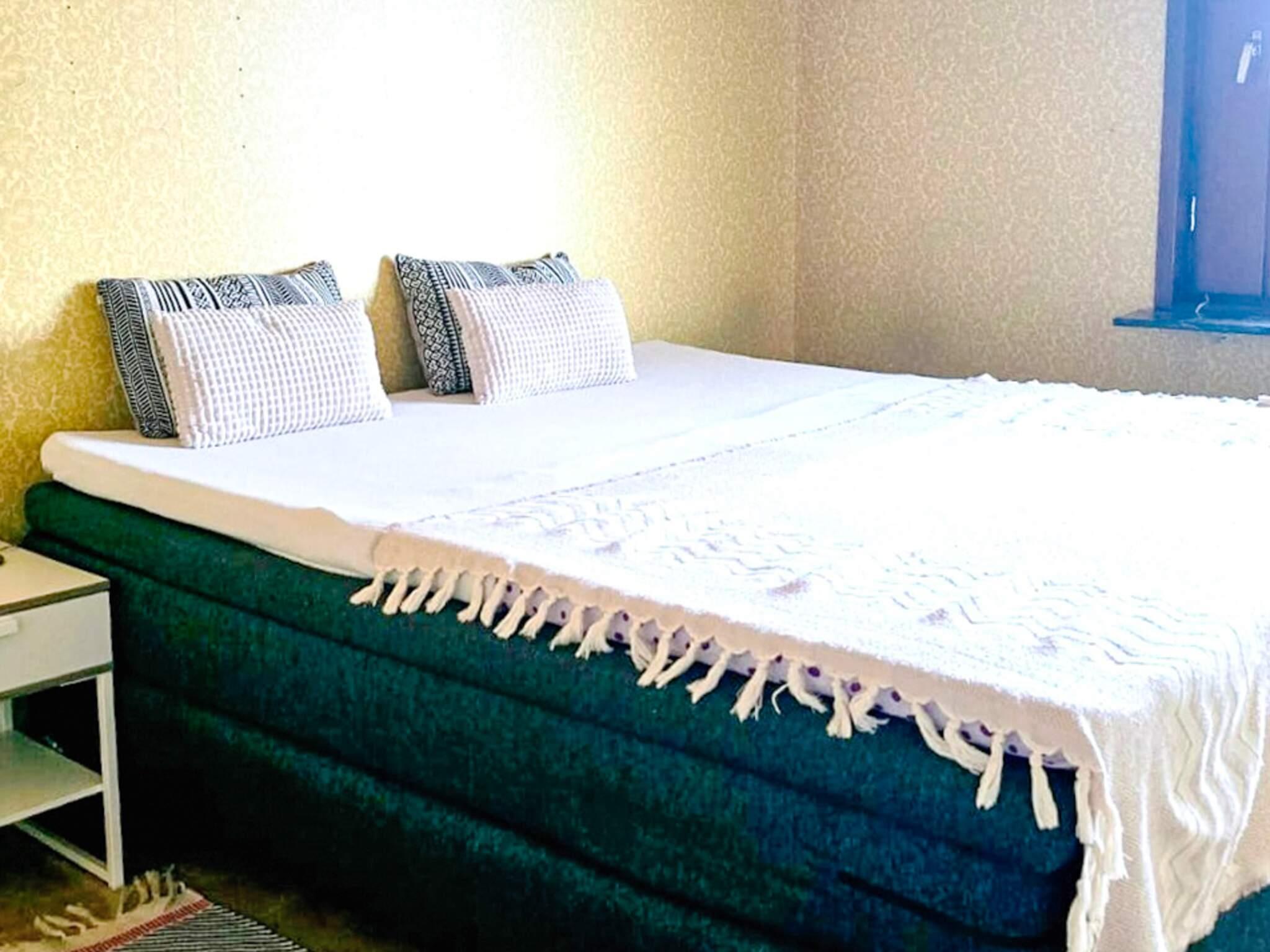 Villan är fördelad på två våningsplan och rymmer hela fem sovrum, alla inredda med bekväma dubbelsängar – gott om plats för familj och vänner. På övre plan finns ett fullt utrustat kök med allt du behöver för att laga dagens alla måltider, samt ett matbord för gemensamma stunder. Här finns även ett badrum med badkar, tre sovrum och ett stort vardagsrum med soffgrupp, TV och ytterligare en matplats. Från vardagsrummet kommer du ut till husets ena veranda – en perfekt plats för morgonkaffet i solen.