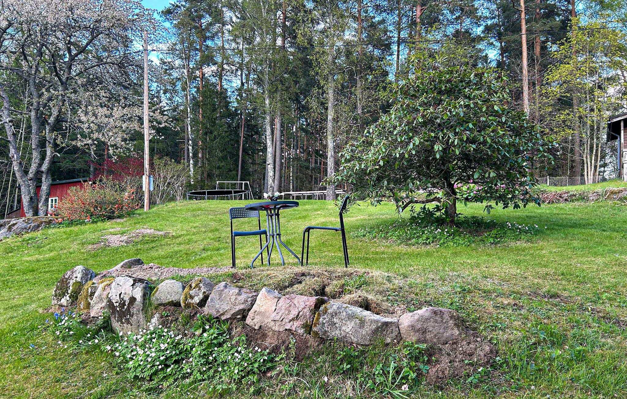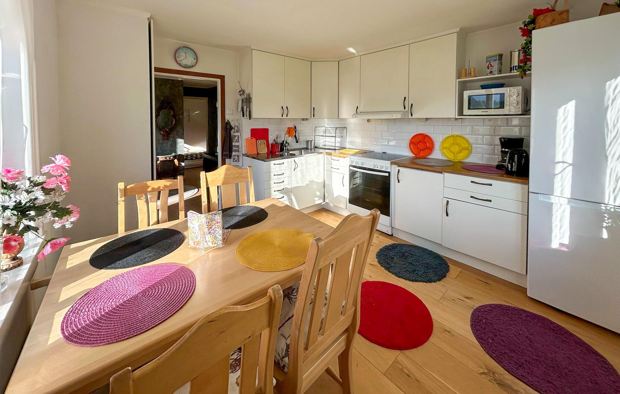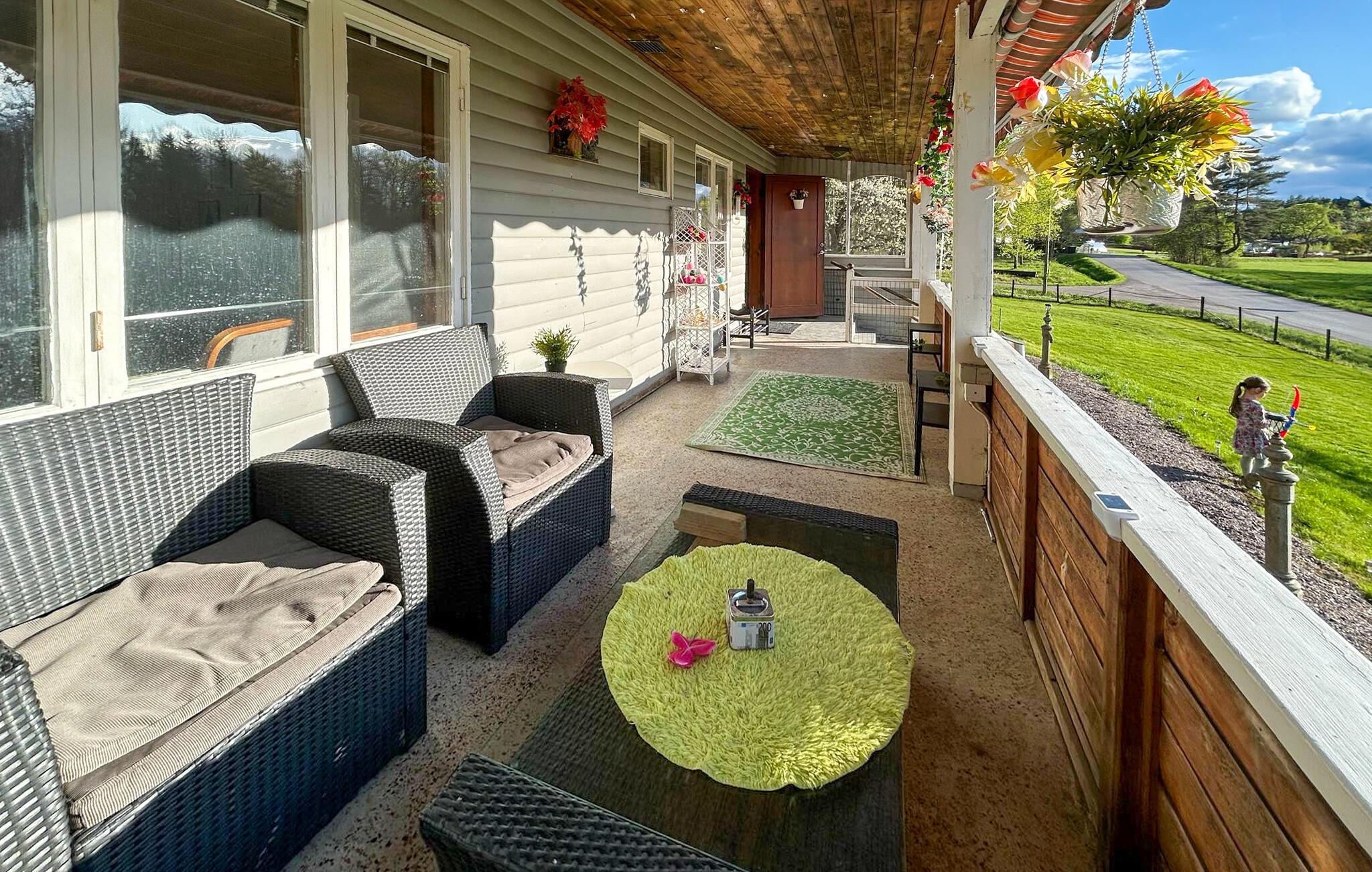 På verandaen kan du nyte utsikten om morgenen med en nybrygget kaffe. På solfylte dager kan du servere frokosten i den grønne hagen og se barna leke på trampolinen. Nyt den fredelige atmosfæren med et glass vin, eller tenn opp grillen for koselige kvelder i det fri.