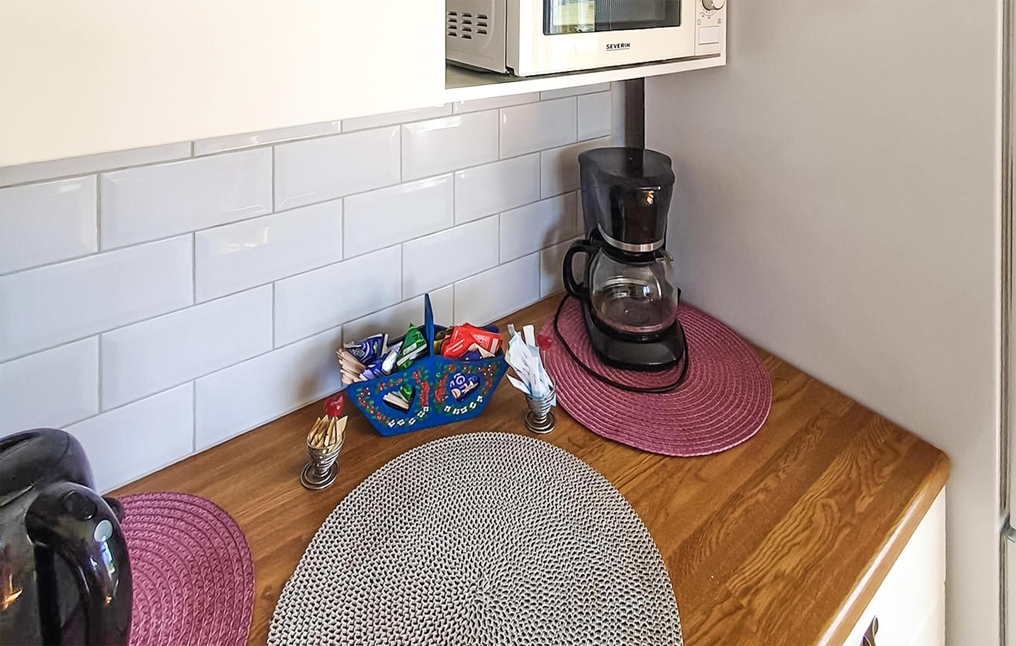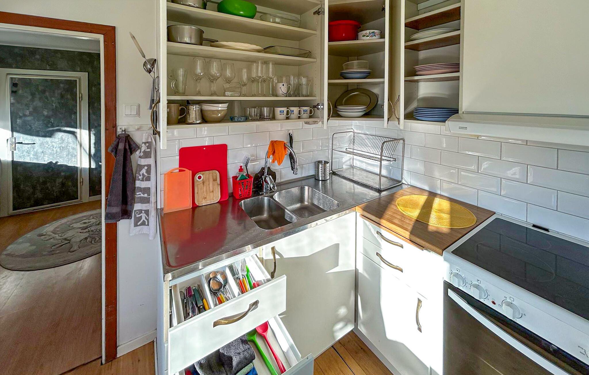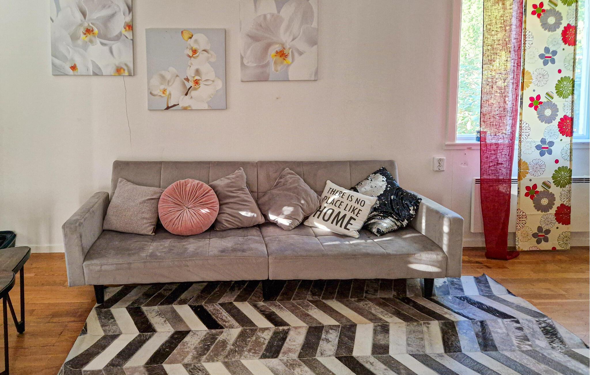 På verandaen kan du nyte utsikten om morgenen med en nybrygget kaffe. På solfylte dager kan du servere frokosten i den grønne hagen og se barna leke på trampolinen. Nyt den fredelige atmosfæren med et glass vin, eller tenn opp grillen for koselige kvelder i det fri.