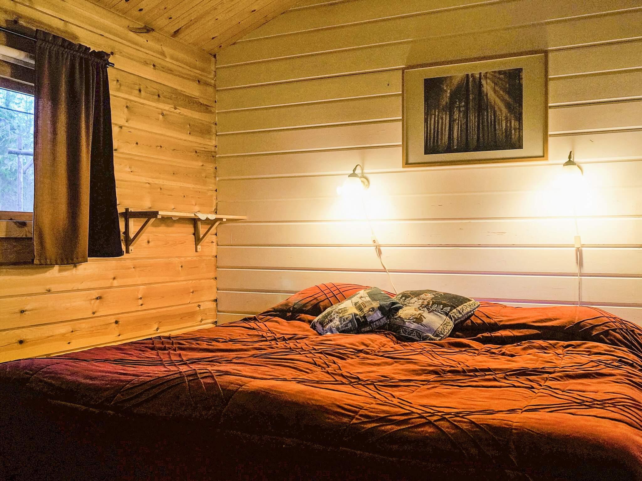Du välkomnas direkt in i allrummet som är ljust med trevlig möblering. Här finns ett matbord med plats för 4 personer och sköna fåtöljer. Till vänster har du ett sovrum med två enkelsängar. Till höger kommer den lilla köksdelen/pentryt där det finns två kokplattor på ena sidan. På den andra finns en bänkspis med ugn som också har två kokplattor. Sedan har du badrum med duschkabin. Innanför hittar du stugans andra sovrum med en säng på 140cm.