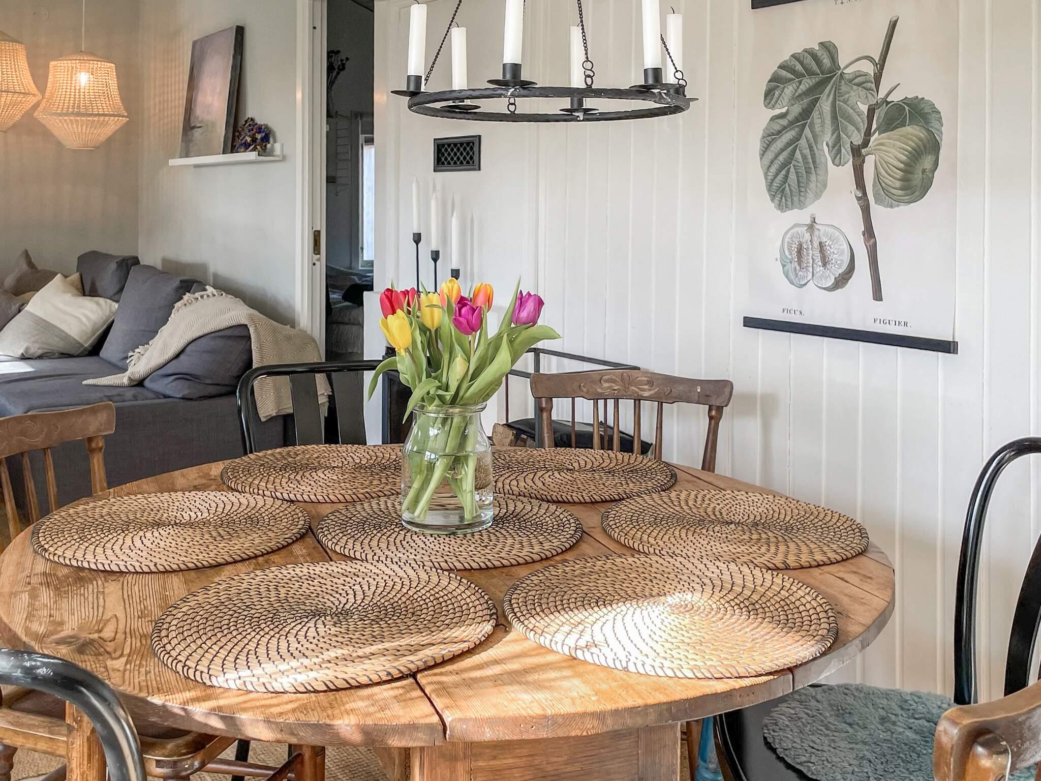 Här bor ni väldigt bekvämt med flera möblerade uteplatser i både sol och skugga. Ni välkomnas i entrén av ett stort öppet rum med härlig takhöjd. Vardagsrum med soffa och tv förenas i ett med trevligt matbord och köks del som är utrustat med det man kan tänkas behöva för självhushåll. Två sovrum, det ena med dubbelsäng och bra förvaring i garderober. Det andra mysiga sovrummet rymmer två våningssängar med plats för fyra personer. Dessutom finns en resesäng för den minsta gästen. Fräscht och fint badrum med dusch och tvättmaskin utöver handfat och wc.