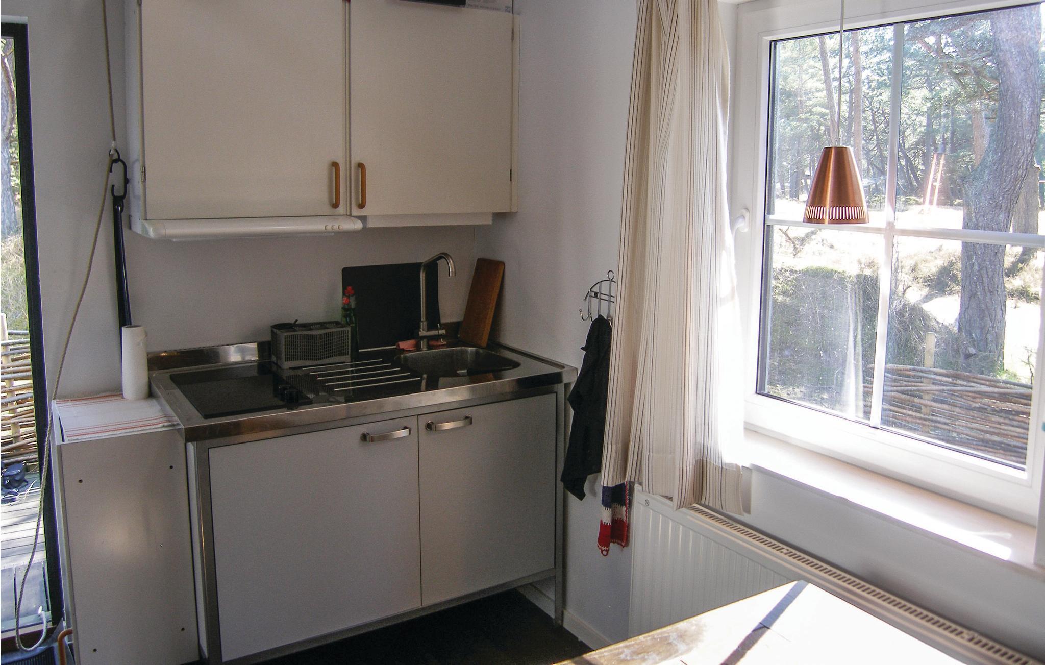 Unikt feriehus i strandskogen, 300 m fra den livlige sandstranden i Borrby. Huset er ikke stort, men her finner du alt du trenger for en fin ferie i Skåne. Det er godt delt, med kombinert stue med lite kjøkken og et soveloft med en stige som kan senkes. Taket er åpent til under mønet, noe som får stuen til å virke større. I kjelleren er det en dusj og en annen peis. Fra huset ditt i Borrbystrand kan du enkelt ta de 300 m til sandstranden med en piknikkurv under armen for å slappe helt av eller forfriske deg i havet. Gå til Sandhammaren, langs en av Österlens vakreste strender med hvit, fin sand. Som et alternativ til svømming i havet kan du finne et svømmebasseng 1000 m fra huset. Utover sol og hav venter mye mer på deg i Skåne. Det er gallerier, butikker, gårdsbutikker og restauranter spredt over hele Österlen, og de koselige byene Ystad og Simrishamn ligger bare femten minutter unna med bil. Fra Simrishamn går det ferger til den danske øya Bornholm. Du kan nå flere golfbaner på en halv time.