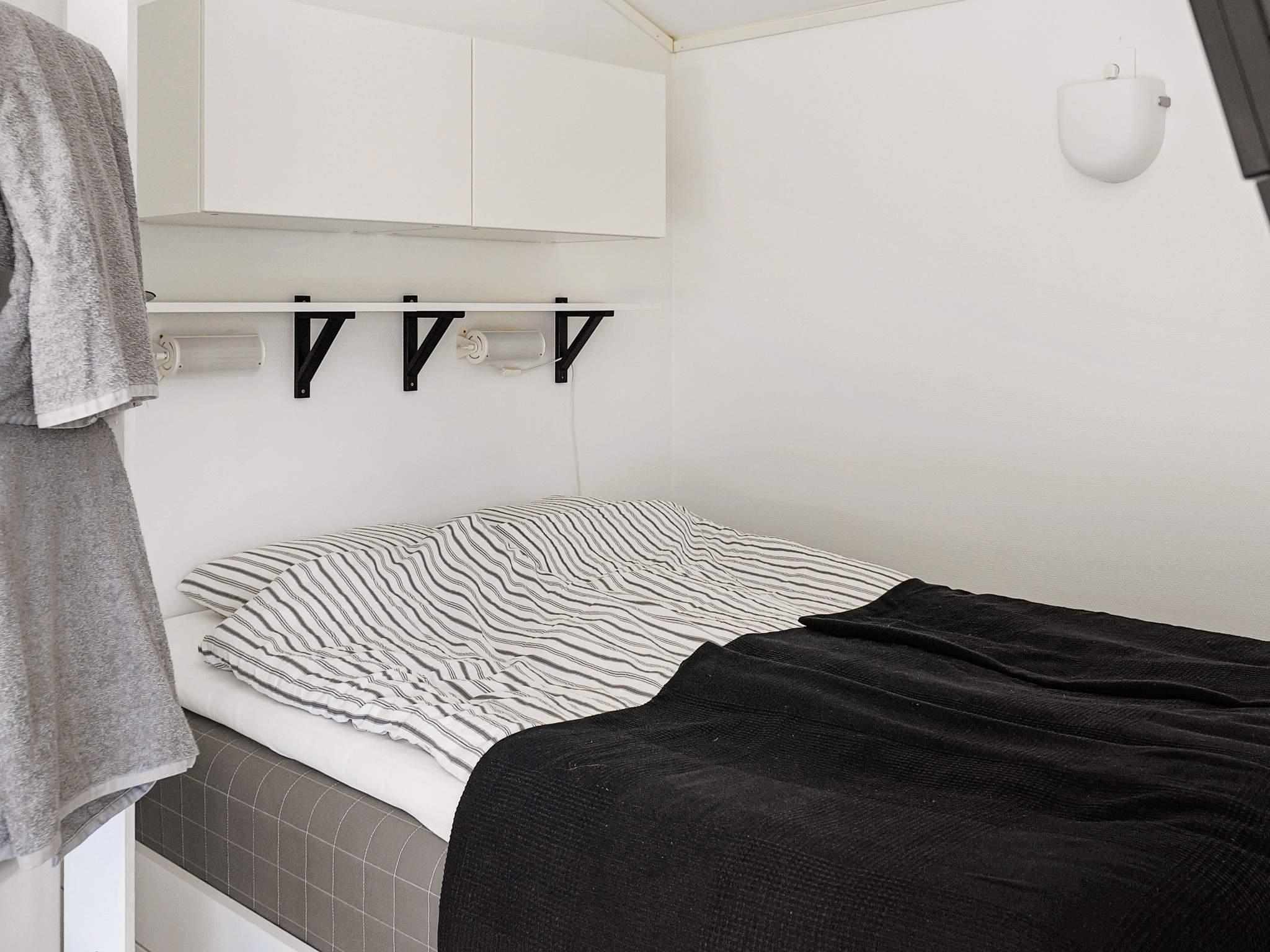 Stugan består av ett ljust kombinerat kök/allrum med glasdörrar till altanen som ni kan öppna eller stänga igen allt efter väderlek. Stugan har AC. Matplats samt smart ”byrå” som fälls ut till en enkelsäng. Sovalkov med rejäl dubbelsäng och TV. Stege upp till loft med extra säng, lämplig för barn.