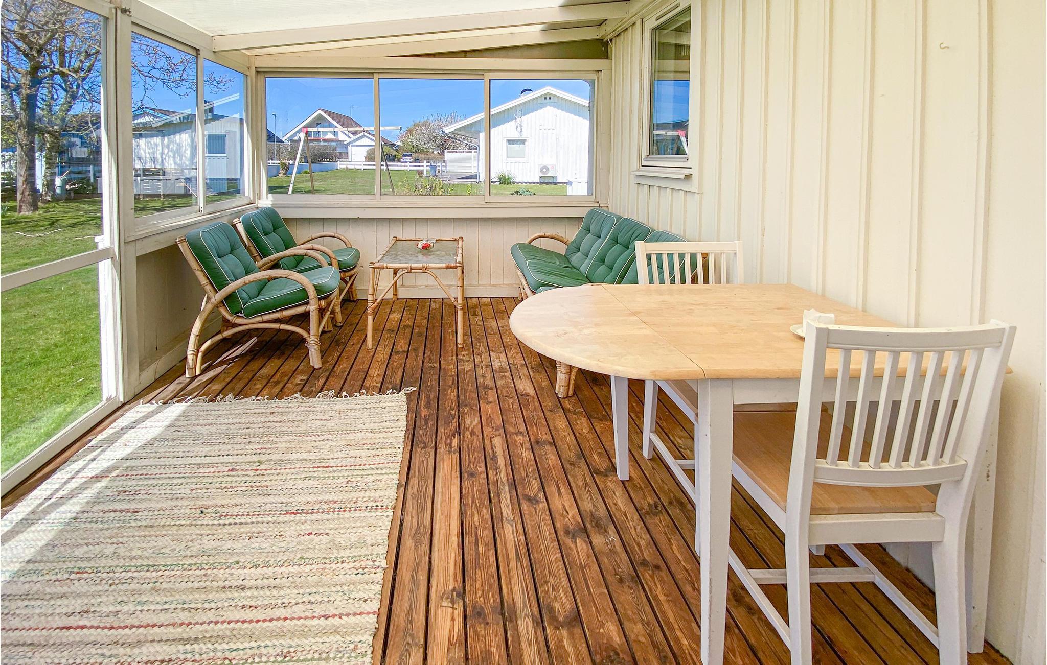 Denne boligen er koselig innredet. Den norske vedovnen, de store vinduene, den store hagen og den overbygde terrassen gir ekstra sjarm og stemning. På kjøkkenet er det endelig tid til å lage mat sammen, og spisebordet innbyr til hyggelige spillkvelder. Kjøp ferskt brød om morgenen på Peter Svenssons konditori og gå de få skrittene til stranden etterpå, der du kan nyte en herlig dag med plasking og fiske. På vei hjem fra stranden vil barna gjerne ha en is på Sweet Glasscafé.