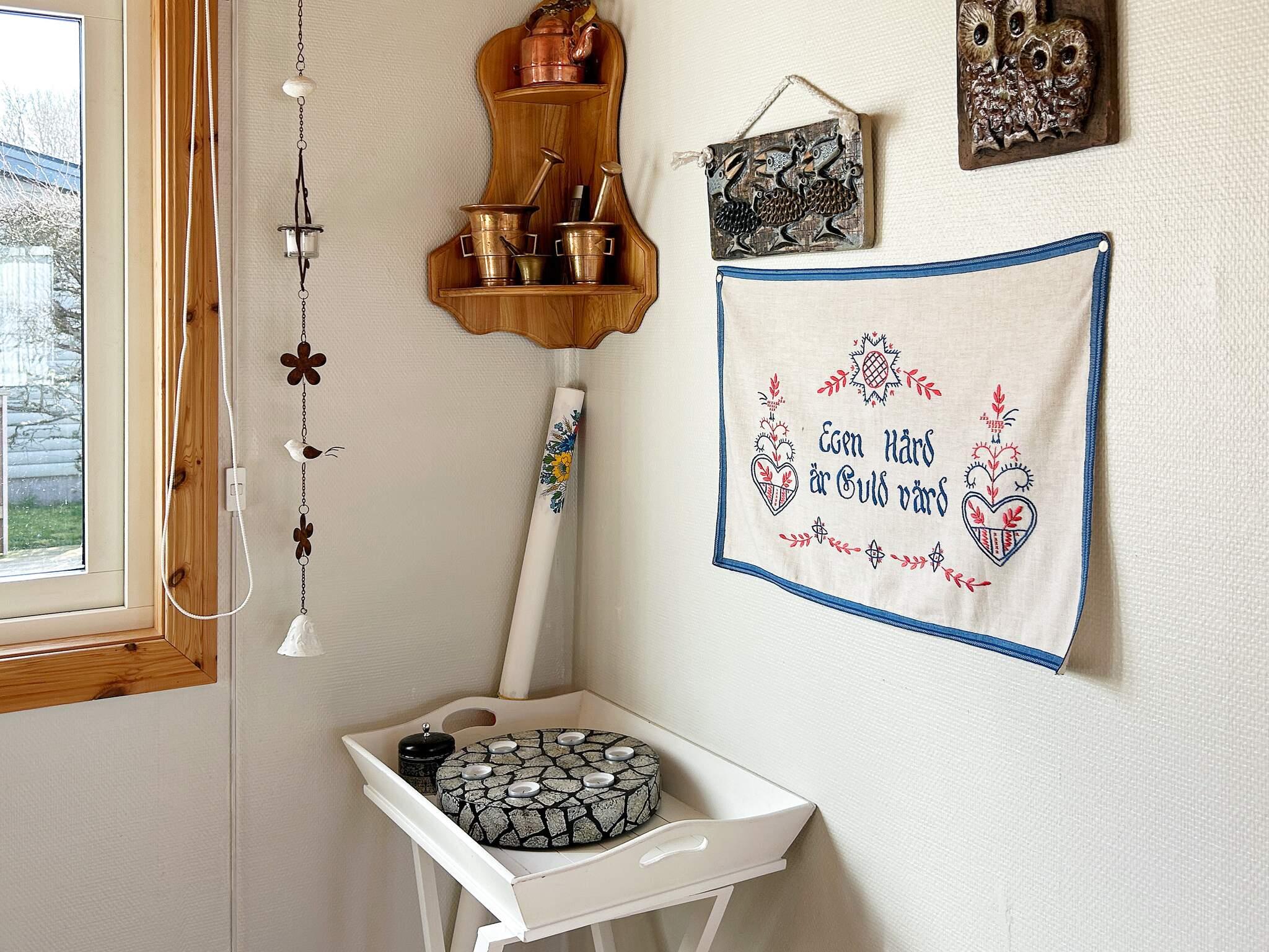När kvällarna blir lite kyliga kan du koppla av i det inglasade uterummet och njuta av naturen utan att behöva oroa dig för väder. För de varmare dagarna finns en rymlig och härlig altan på baksidan av stugan, komplett med utemöbler och en kolgrill för trevliga grillkvällar tillsammans. Grilla enbart på avsedd plats, utanför altanen för att undvika brandrisk.