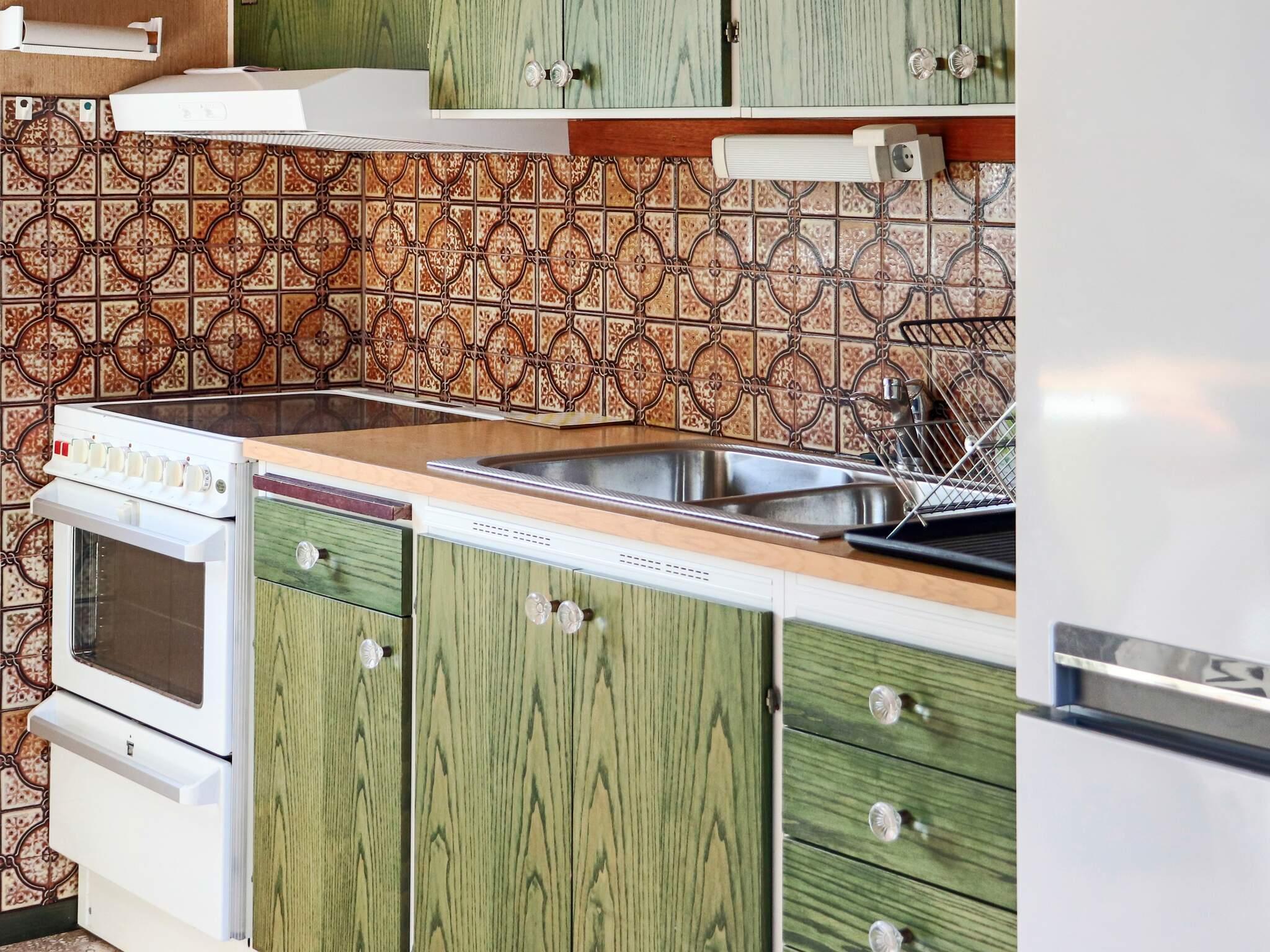 Kjøkken: El-komfyr, kjøl/frys, mikro, kaffetrakter