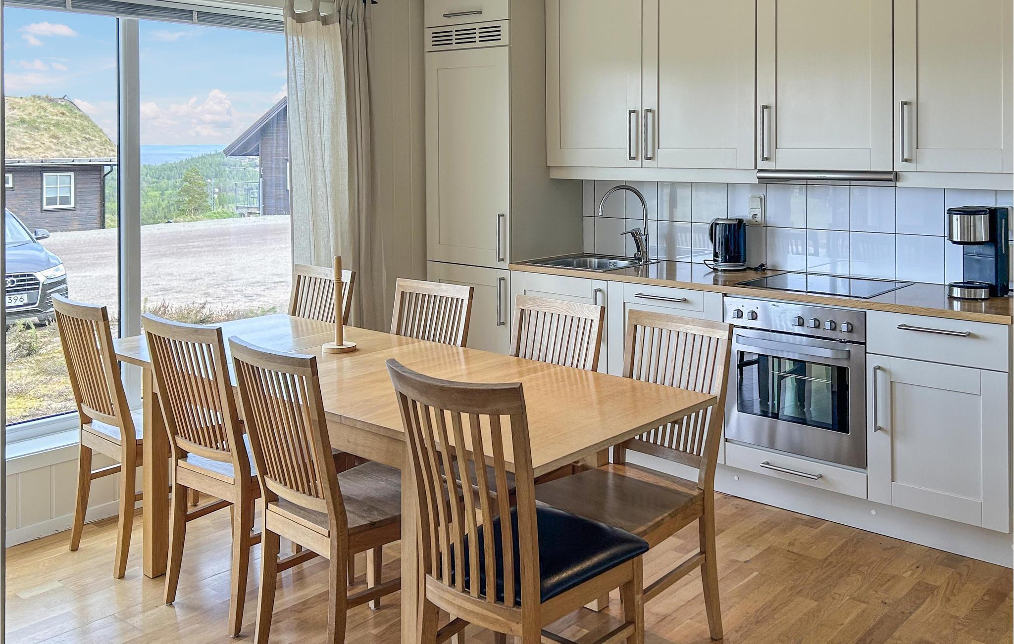Dette lyse feriehuset med moderne fjellatmosfære, badstue til å slappe av i, gulvvarme og vakker fjellutsikt ligger i Stöten i Dalarnas grønne eventyrlige natur og i relativt kort avstand fra naturreservatet Norra Transtrandsfjällen, og lover en både opplevelsesrik og avslappende naturferie for hele familien. Ved det lange spisebordet kan du planlegge fjellturen og kanoturen. Spesielt mimeleken gjør kvelden enda mer koselig. Hvis barna ikke vil være med på kjøkkenet, kan dere tegne ved bordet. Unn dere en liten pause med Uno og kaffe på terrassen.
