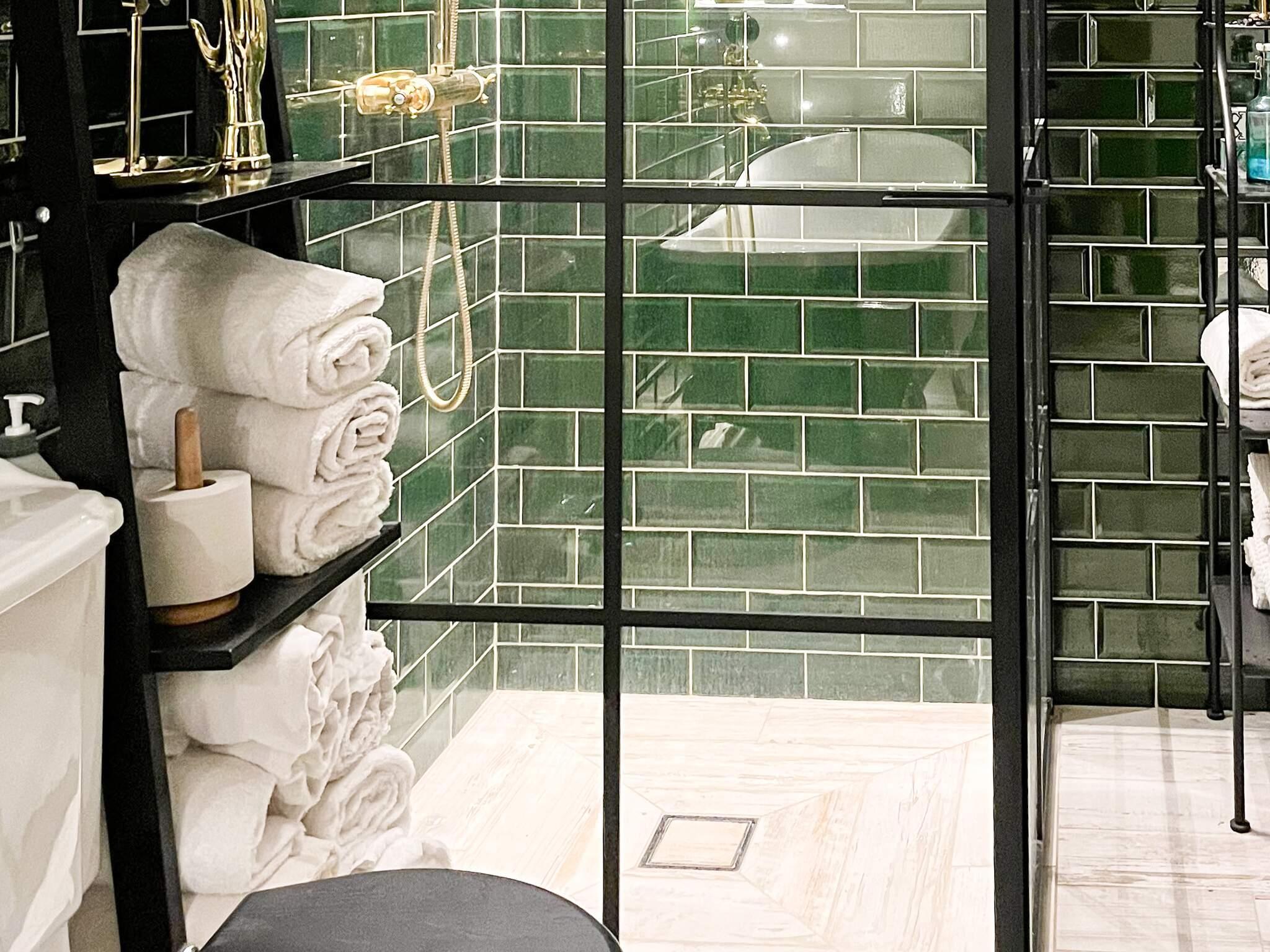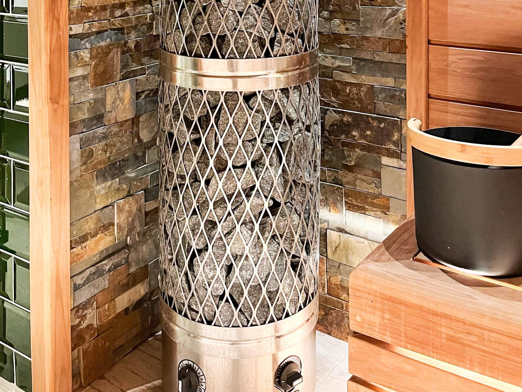 Det finns fyra sovrum, två med dubbelsängar samt två med en enkelsäng vardera. På nedervåningen finns duschrum med handfat och separat toalett. På övervåningen finns det ett badrum med badkar, dusch, tvättställ och toalett. Här finns även en bastu!