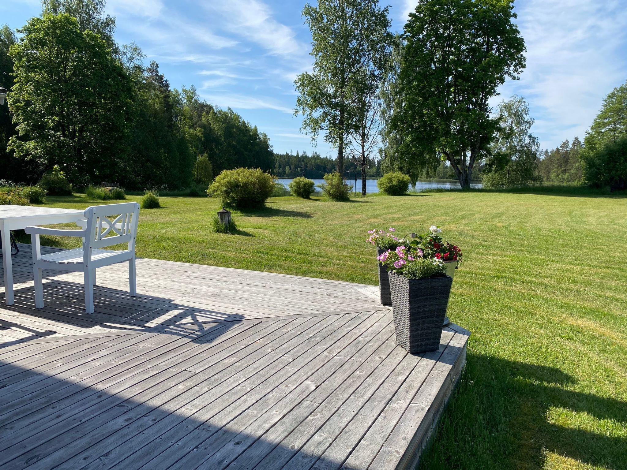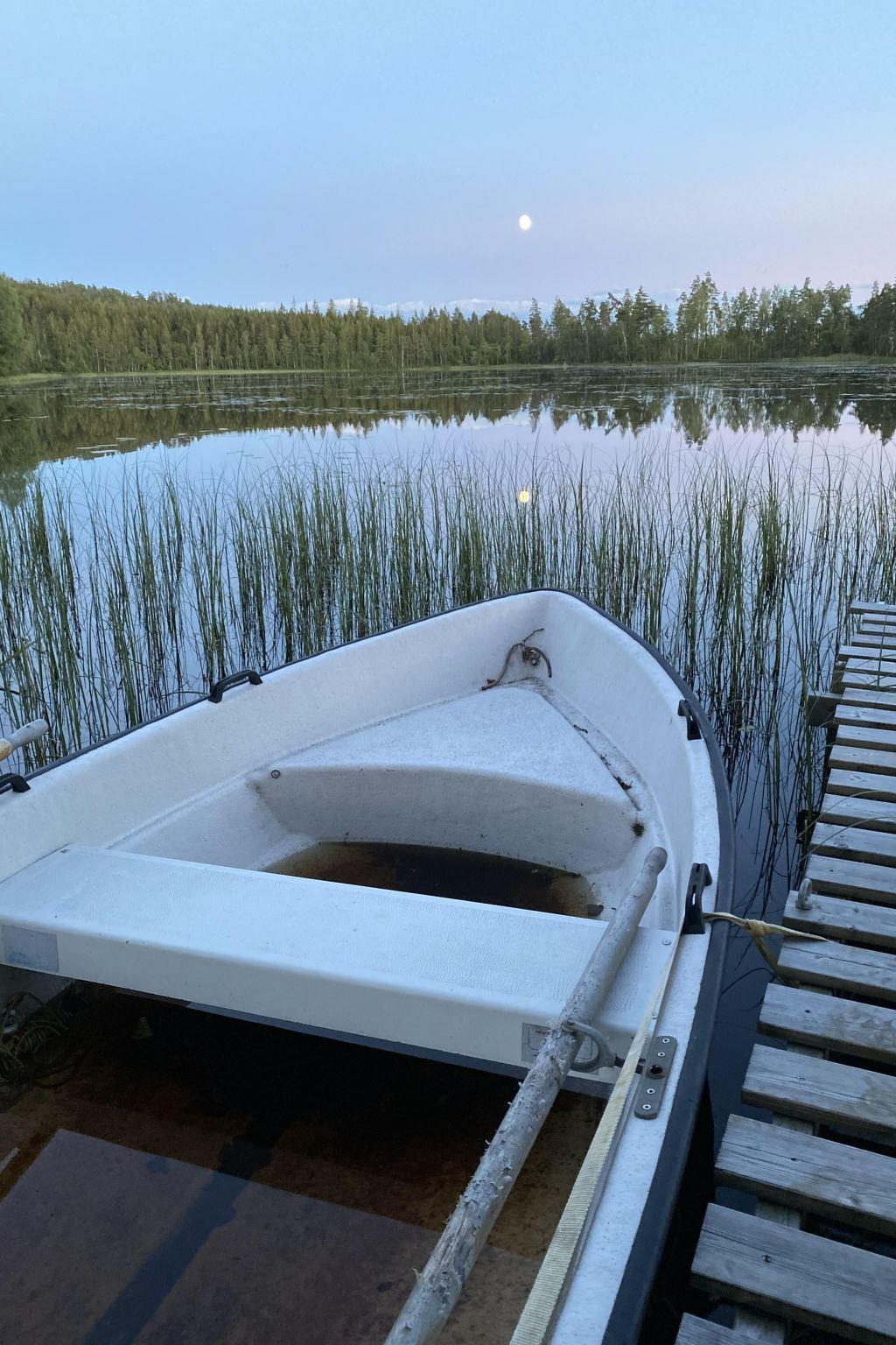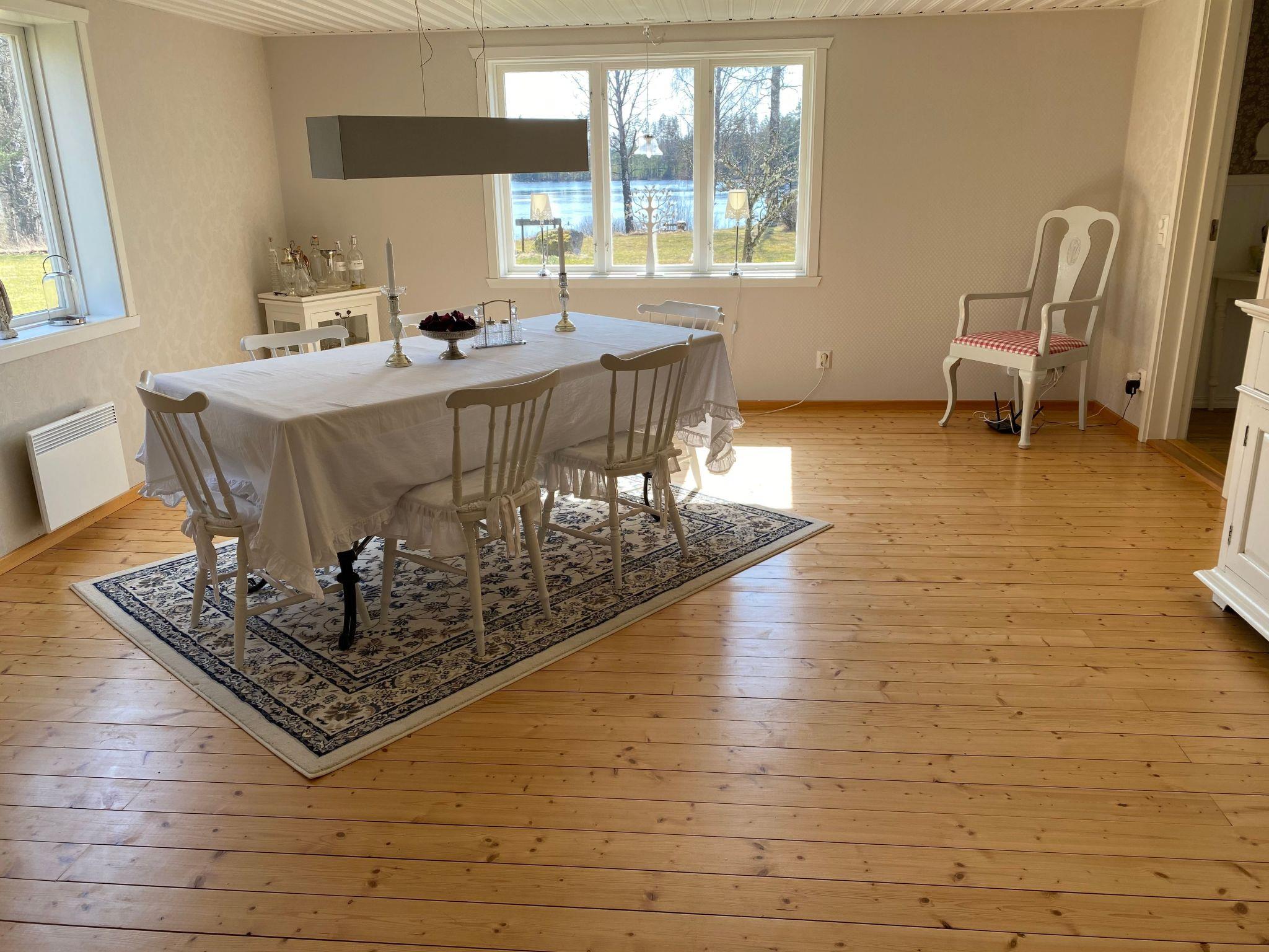 "Skuggebo Gårdsjön" - the name says it all, it's a house right on the water, a Småland holiday idyll for families and anglers with really top facilities. The Gårdsjön with our jetty is about 25 metres directly in front of you, the small fish-rich Gölen is about 150 metres behind the house in a valley and the large Ruskensee, known beyond the borders of southern Sweden as one of the best zander waters, is only about 700 metres away on foot.If you are looking for peace, nature and relaxation and still expect an acceptable connection to the infrastructure of daily life, Skuggebo is the right place for you: The main house, our sauna house and the original Lappish barbecue hut (both can be rented for an extra charge) are situated on an absolutely sunny plot of approx. 3,500 metres. Only the small and quiet road to Sandvik runs between the house and the lake, and we have completely renovated and refurnished this idyllic property from the ground up. A new bathroom, a new functional, light-coloured fitted kitchen, new flooring, electricity and a large terrace with a view of the lake meet our high standards for a guest residence. All rooms are bright and furnished in typical Scandinavian style. You will want for nothing here. We have also written the whole story about the house on our own website. With its three bedrooms with double beds and two additional sofa beds, the house can accommodate up to 8 people. The most favourable occupancy is 6 people in the three bedrooms. The final cleaning fee increases slightly for occupancy by more than 6 people. Please contact us in advance if you are travelling with more than 6 people. Take a virtual tour of our house "Skuggebo Gårdsjön": You enter the house either from the back through the typical Swedish rear entrance or directly from the front through the conservatory. We usually start here from the back, as this is also where you park your car. First you enter the anteroom, which is used as a pantry and cloakroom. Then you enter the large eat-in kitchen with dining table and chairs for 6 people as well as the fully equipped white country kitchen with induction hob, extractor bonnet, dishwasher, fridge and plenty of worktop space. The design of the walls corresponds to the typical Swedish interior and therefore fits in beautifully with the holiday home. The kitchen is equipped with all utensils and furnishings (e.g. toaster, microwave, coffee machine etc.) From the kitchen, a staircase leads to the upper floor. Here you will find two of the three bedrooms, one on the right and one on the left, as well as a larger lounge in the centre. Back downstairs, you enter the hallway through the kitchen, which leads to the very large and bright living room on one side and the lounge and dining area with seating for up to 8 people on the other. Both rooms have a view of the lake. The hallway also leads to the bathroom with walk-in shower, washing machine and toilet. The third and actually the master bedroom can be reached through the living room, which is typical for the country and age. Brightly furnished with a double bed, wardrobe and chest of drawers. All bedrooms can be darkened and the approx. 22 square metre living room is furnished with sofas, coffee table and flat-screen TV plus WLAN. The two large windows let in the sun all day long and all rooms can be heated with electric elements and a modern heat pump in the hallway. The heat pump also serves as air conditioning if required. All furniture and furnishings have been newly purchased.outdoor area:There is plenty of patio and garden furniture for you to relax on the very spacious terrace. Large table, parasol and loungers, barbecue fireplace and rotary clothes dryer. Depending on delivery times, the original Lappish barbecue hut can be rented for really rustic and adventurous barbecue fun. There is also a small 3.90 metre rowing boat down by the lake for fishing and exploring the lake. On request and depending on availability, up to 5 larger aluminium fishing boats "Type Linder Fishing 440" with 5 and 6 HP four-stroke engines and corresponding equipment can also be rented for use on the Ruskensee. A deposit is charged for the hire. The boats are primarily useful for our fishing guests and are located approx. 2 km north up the small road in Sandvik in the boat harbour. At the sauna house there is an outdoor area with water and a stainless steel filleting table for gutting your catch. In addition to the refrigerators in the house, we have two large freezers in the outhouse, which are particularly suitable for storing fish. See details and by arrangement. Our "fleet" is located in Sandvik in a small boat harbour. Sandvik is approx. 2 km along the road. There are plenty of parking spaces available. In Sandvik there is also a small sandy beach with a sunbathing lawn with barbecue area.Entertainment:TV (flat screen TV), satellite system with German programmes, radio/CD player, many children's and board games, books, thrillers and magazines, DVD player, Internet connection with WLAN.Miscellaneous:Pets are unfortunately not allowed, non-smoking house, additional costs to be settled on site payable on acceptance. The obligatory final cleaning is carried out by us and is subject to a charge. We also guarantee the high standard of hygiene in the holiday home. Services and information: The handover and acceptance of the house will be carried out by us personally. Deposits are required for the house and motorboats. If required, we are also personally available on site to answer questions and solve problems during your stay. You can also hire bed linen or towels for a small fee if required, and payment for additional services and incidental costs can be made cashless on site. Travelling with your own boat is only possible on request. Please clarify this with the landlord before booking. The stated maximum occupancy of up to 8 persons is only possible for groups of anglers. In this case, staggered over-occupancy su