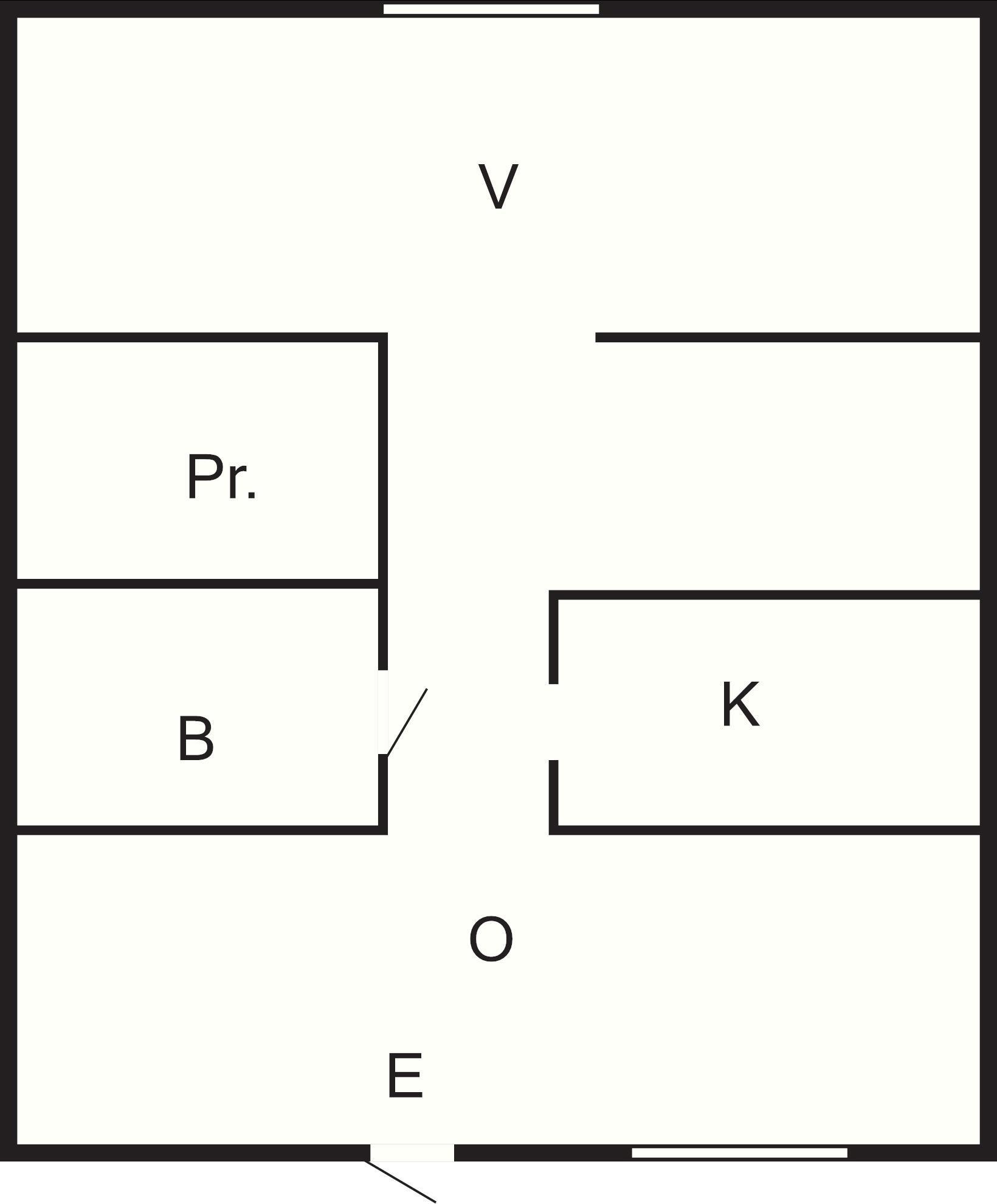Lägenheten är smart planerad med ett ljust vardagsrum utrustat med bäddsoffa, en praktisk kokvrå med spis och ugn samt ett matbord med plats för fyra. Sovrummet har två enkelsängar, och i källaren (ingång utifrån) finns dusch. En något trafikerad väg finns på baksidan av villaområdet.