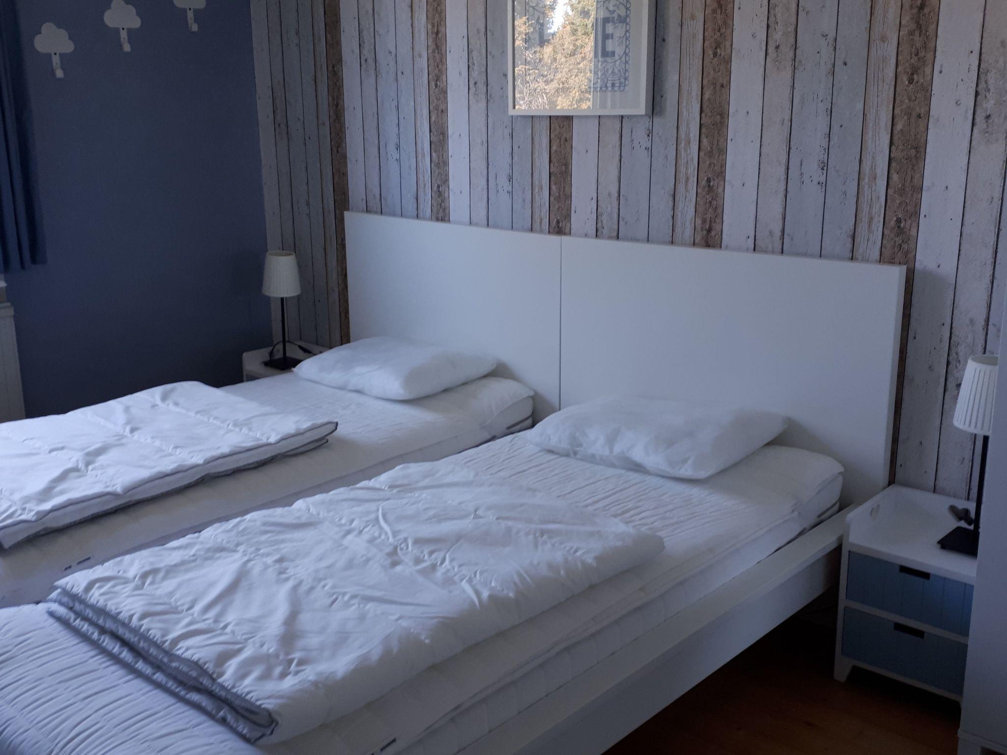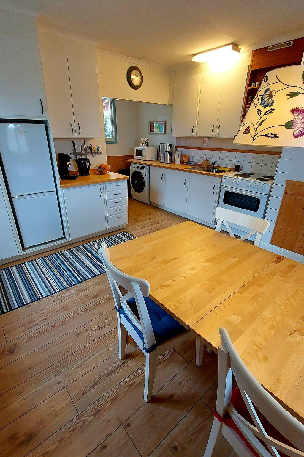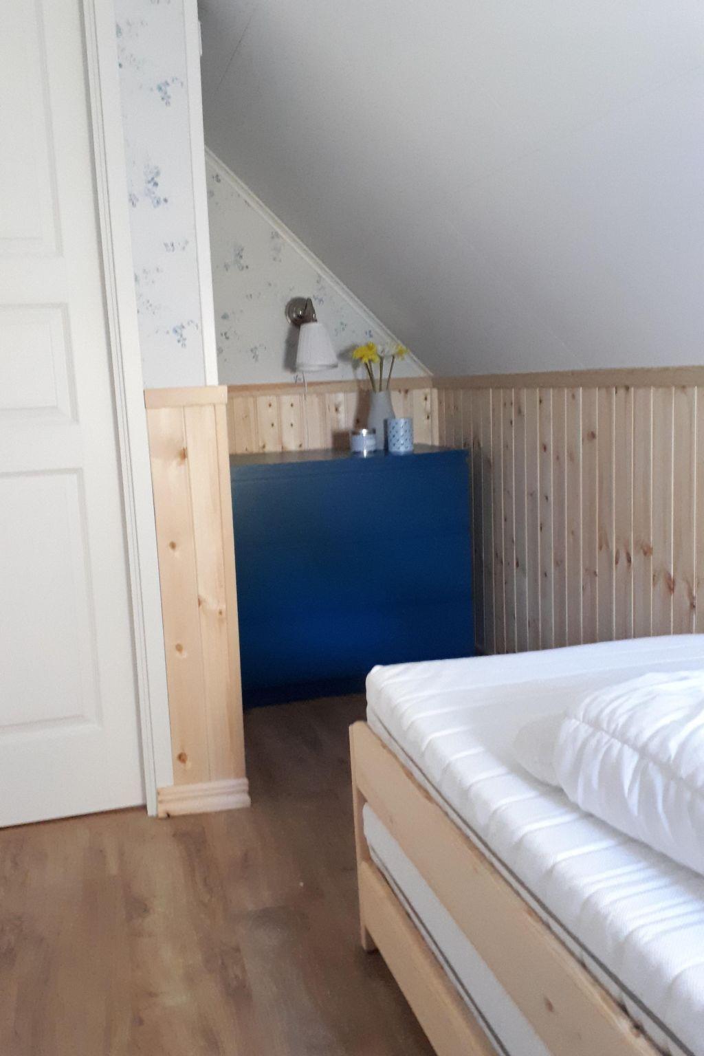 Description holiday villa Stallhuset: hall/entrance with coat rack and shoe rack fully equipped living room with TV (no connection to antenna or dish but chromecast & HDMI connection for laptop to watch e.g. downloaded films), CD and DVD player kitchen with dining table and 6 dining chairs, crockery, cutlery, cooking utensils, electric cooker, oven, microwave, fridge/freezer, Samsung washer/dryer combination, Senseo coffee machine, coffee machine, kettle, blender, gourmet set, iron, clothes drying rack, hoover 3 bedrooms upstairs, one with double bed and two with two single beds, all rooms have ample wardrobe space bathroom downstairs with shower and washbasin with vanity unit separate toilet Bed linen, bath linen and kitchen linen can be booked for an additional fee.