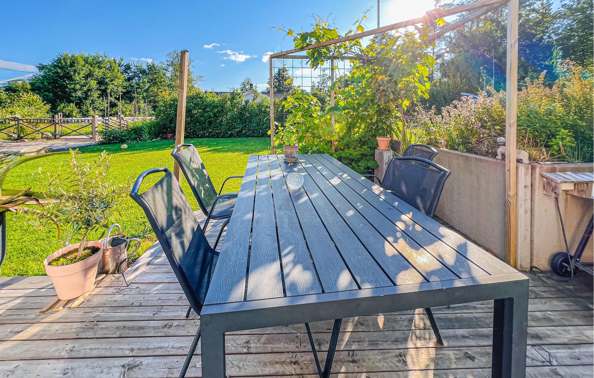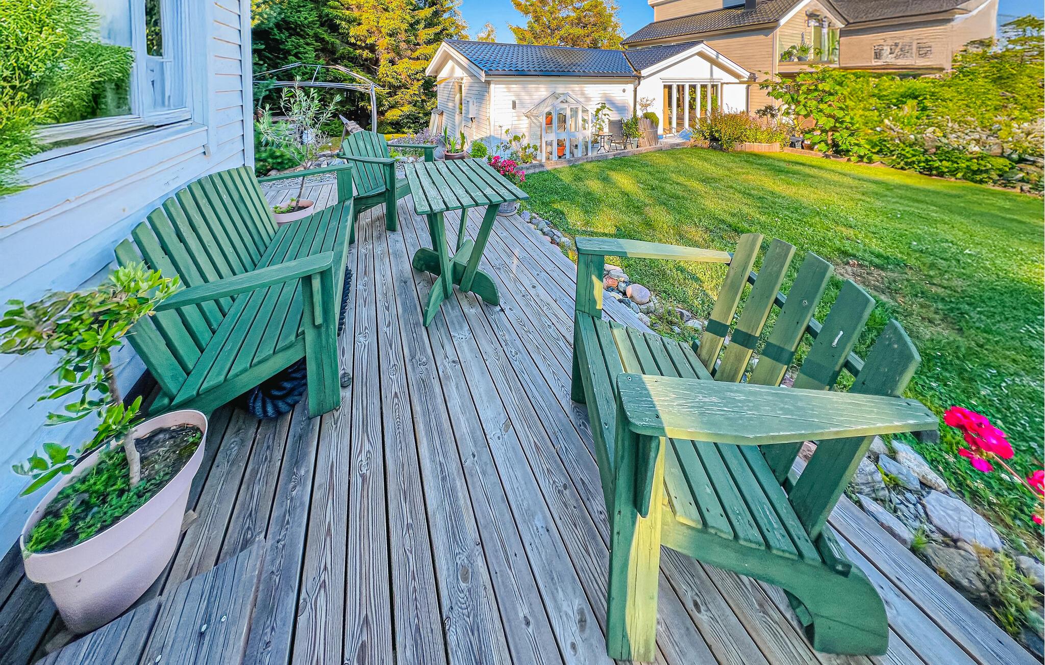 I den kjærlig anlagte hagen finner du et nydelig sted når som helst på dagen. Spis frokost på terrassen om morgenen, les en god kopp te om formiddagen eller bla gjennom ferielesningen din om ettermiddagen. Om kvelden kan du nyte et avslappet måltid i det fri mens du ser tilbake på opplevelsene dine og legger planer for neste dag.