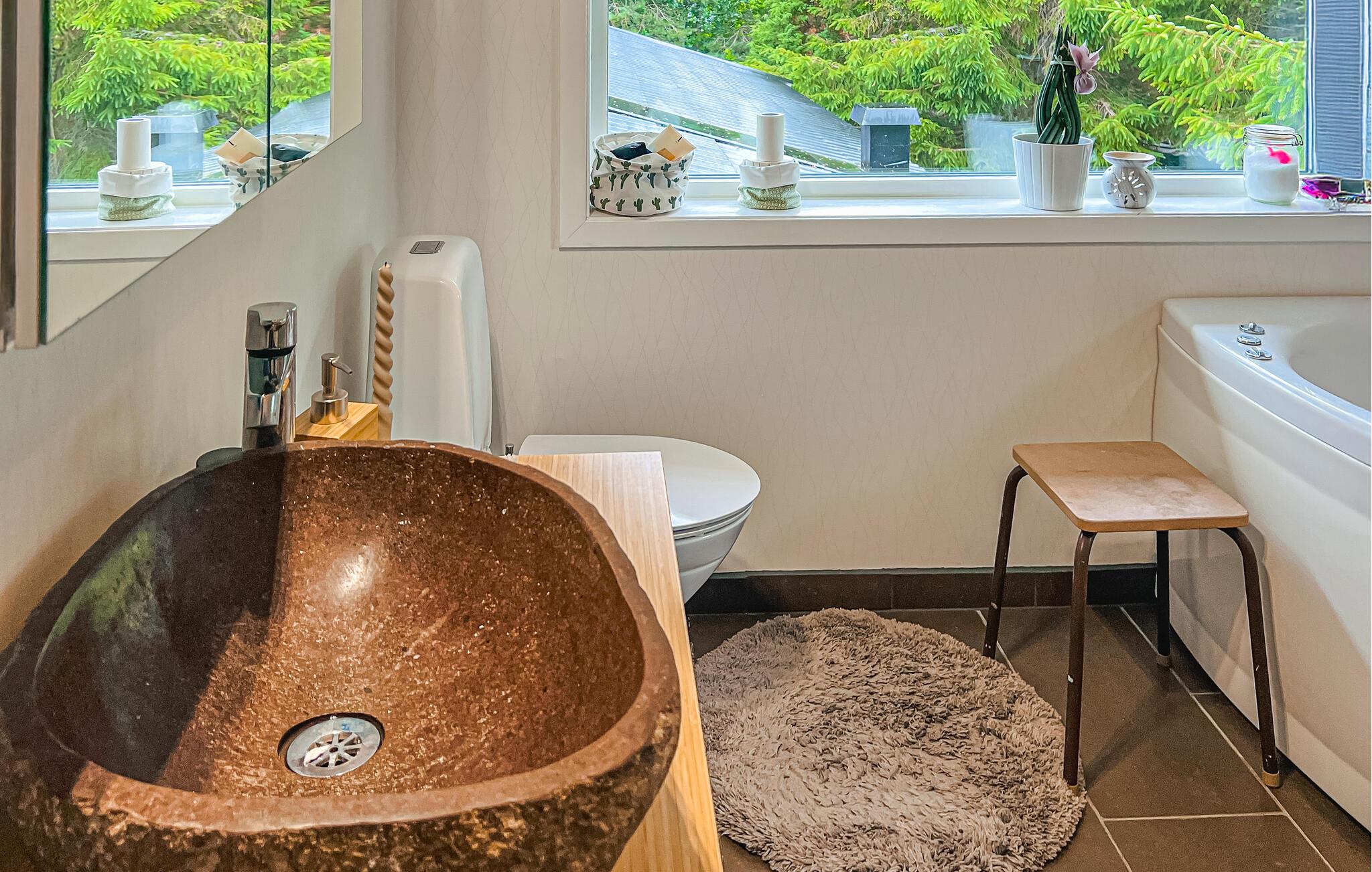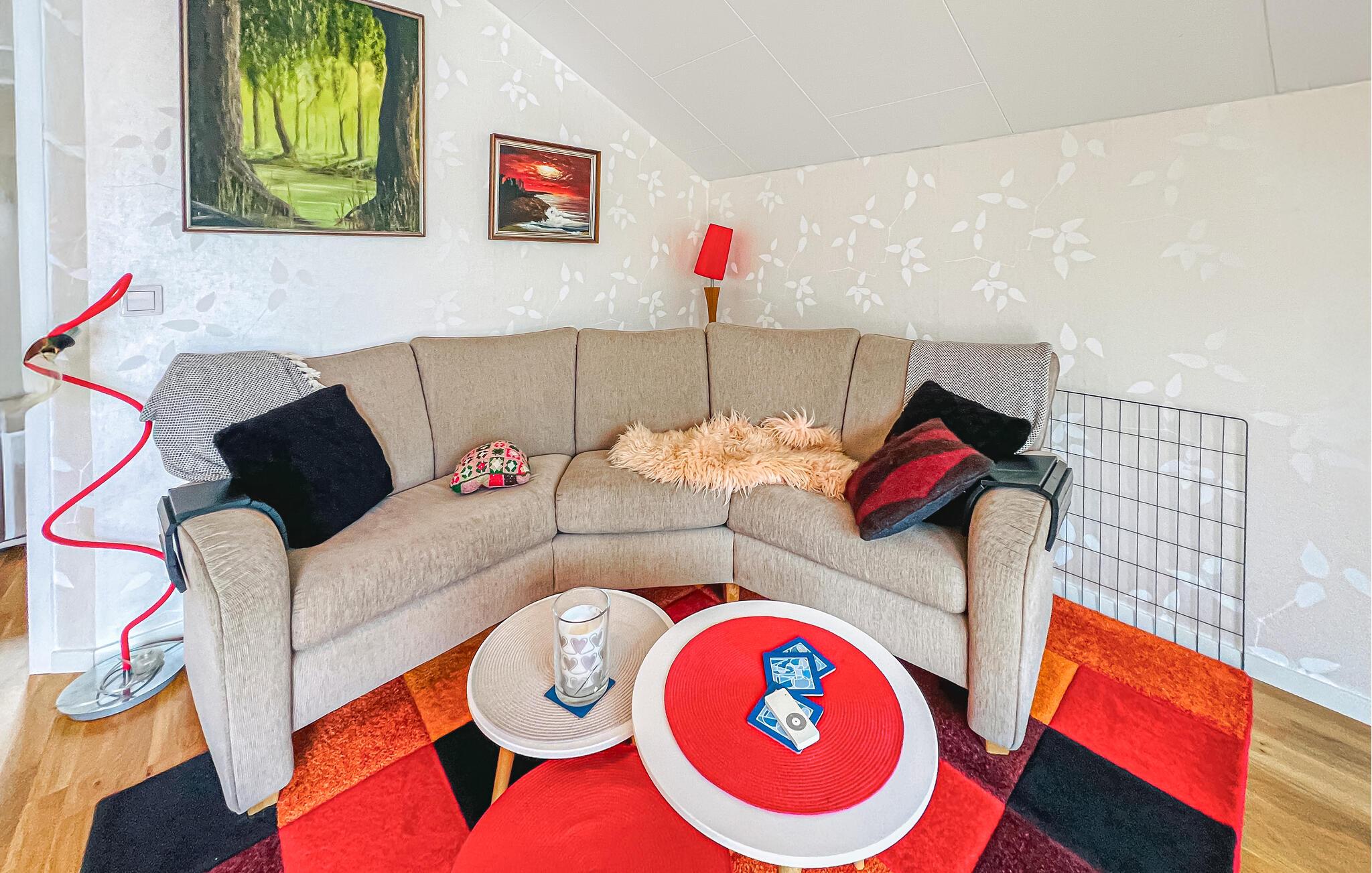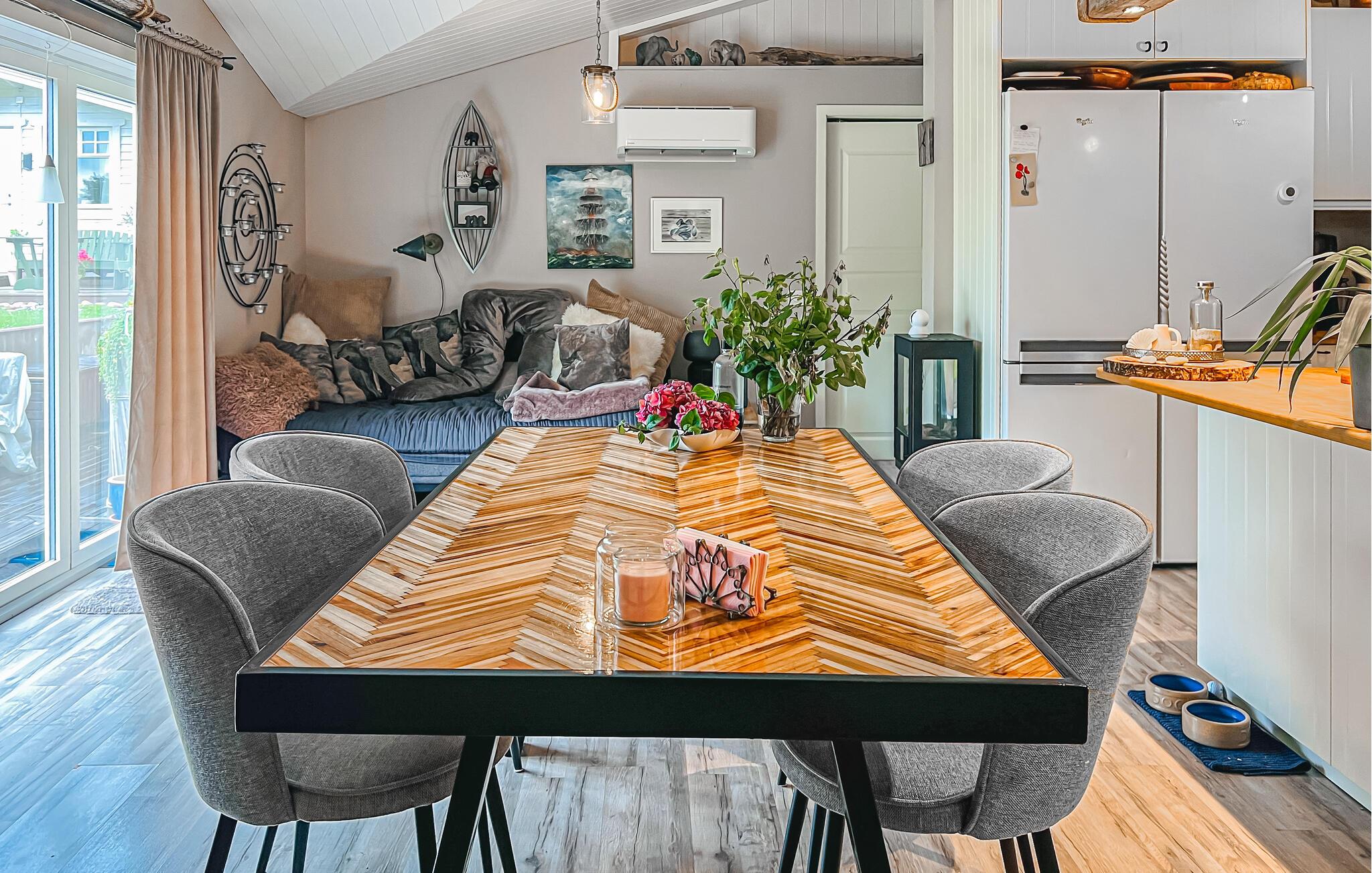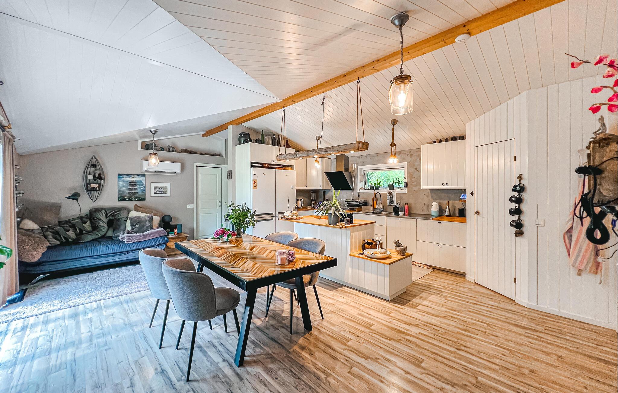 Dette kjærlig innredede huset utstråler en spesielt koselig atmosfære med sin rustikke sjarm og fargerike møbler. Lyse rom, vakre detaljer og mange koselige kroker danner den ideelle rammen for en hyggelig stund, enten det er for å lytte til musikk, spille spill sammen eller lage mat. Organiser ferien i ditt eget tempo i dette avslappede miljøet.