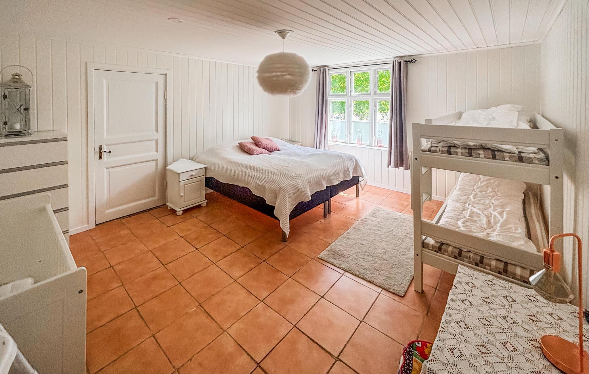 5 soverom og like mange stuer gjør at alle kan ha sitt privatliv og fortsatt være sammen. Stort, velutstyrt kjøkken med sjenerøse arbeidsflater. Et bad med badekar og gjestetoalett. Velvokst hage for å leke og løpe rundt.