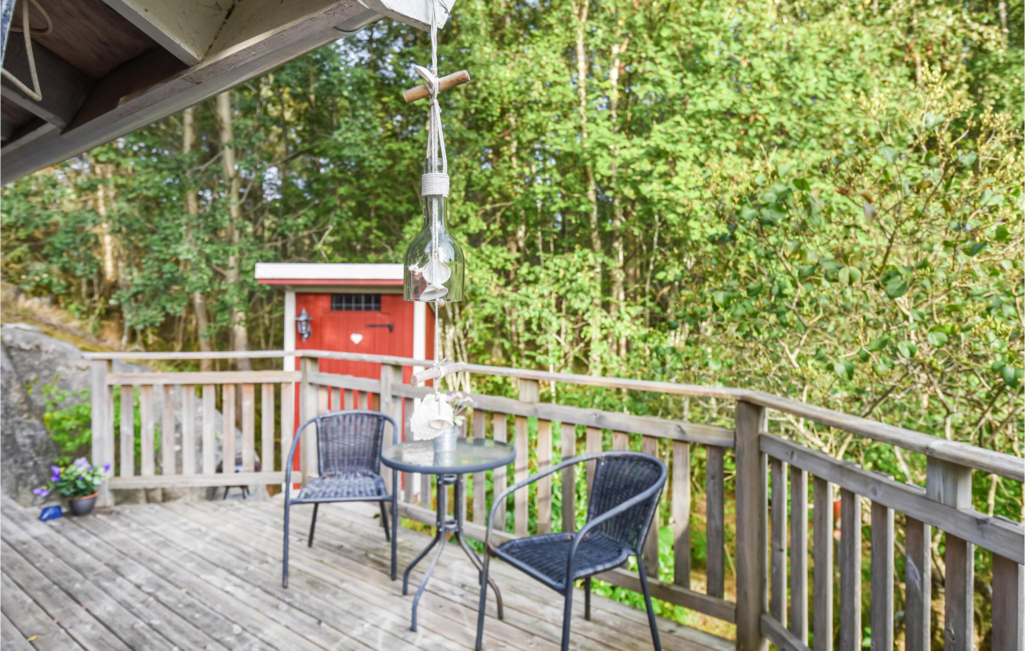 I uthuset, på den andre siden av huseierens hus, er det en stue med minikjøkken, sovesofa for to og en stor terrasse. Eiendommen grenser til Bohusleden, en fantastisk tursti som strekker seg gjennom den vakre naturen i Bohuslän, bestående av dype skoger med klukkende bekker, over vakre fjell med fantastisk utsikt. Her har du gode muligheter til å plukke bær og sopp eller møte skogens konge, elgen.