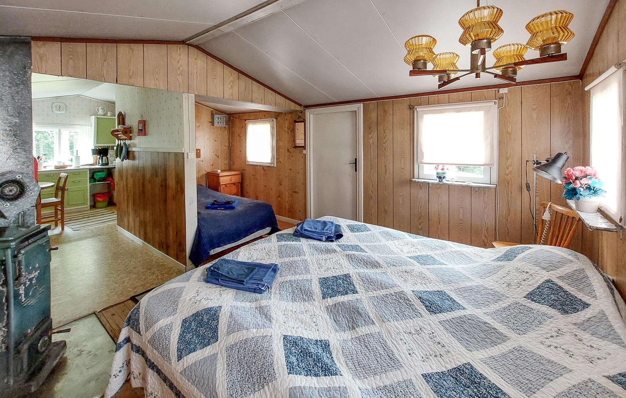 Denne koselige hytta ligger vakkert til ved skogen og mellom to innsjøer. Tenn opp i vedovnen og gled deg til harmoniske måltider i en koselig og sjarmerende atmosfære. Etter en lang dag i frisk luft kan du sette deg godt til rette i sofaen og nyte hyggelige spillkvelder med dine nærmeste.