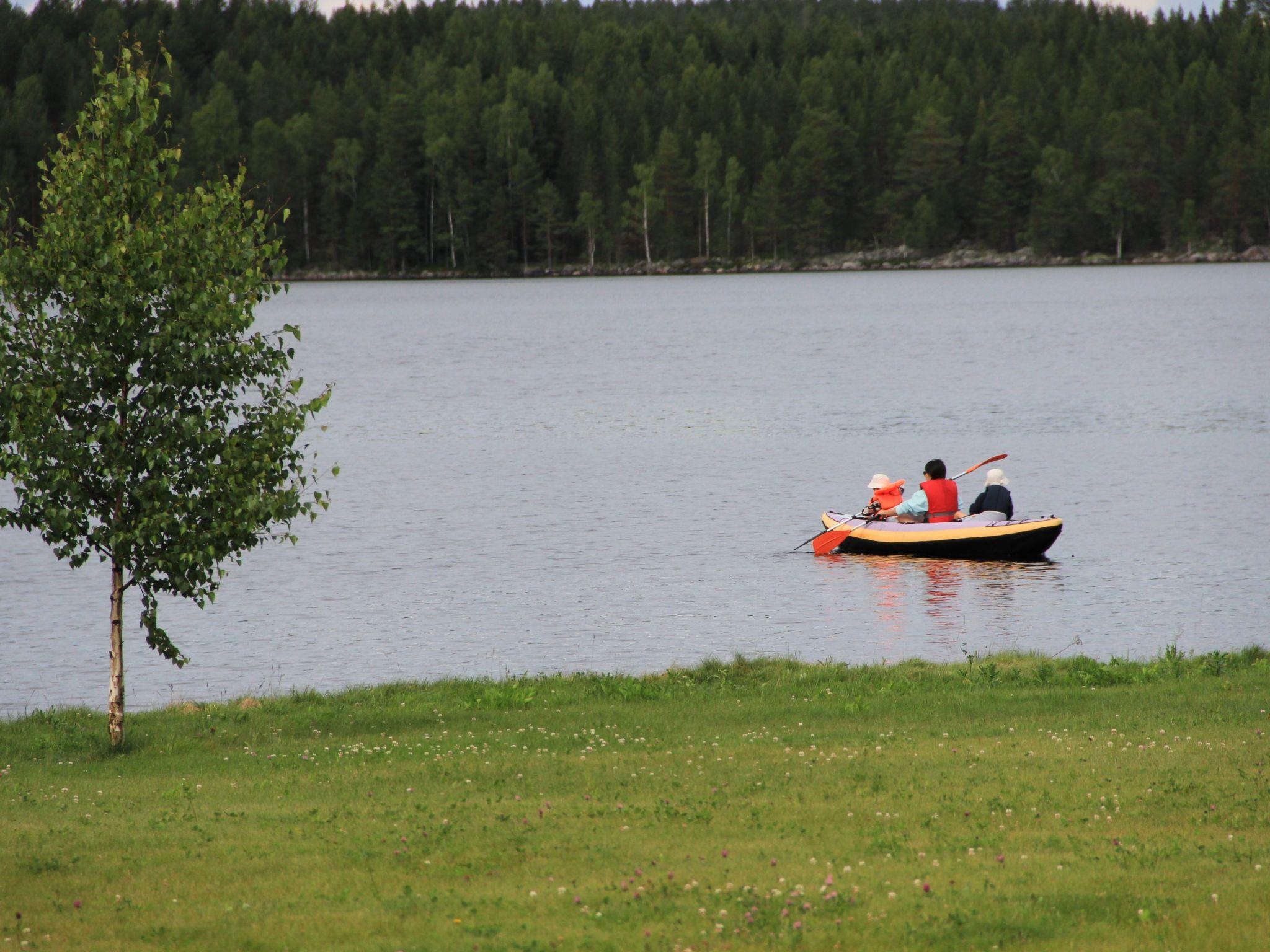Just on the lake shore with a very large grass area around, lots of fish in the lake for fishing lovers, ramp for the boats and for sunbathing or swimming. Each house has his own picnic wooden table in front of it. Very nice and peaceful area for walking and enjoying the forest. The closest village to Svärdsjö where you can shop and dine is about 13 km far.