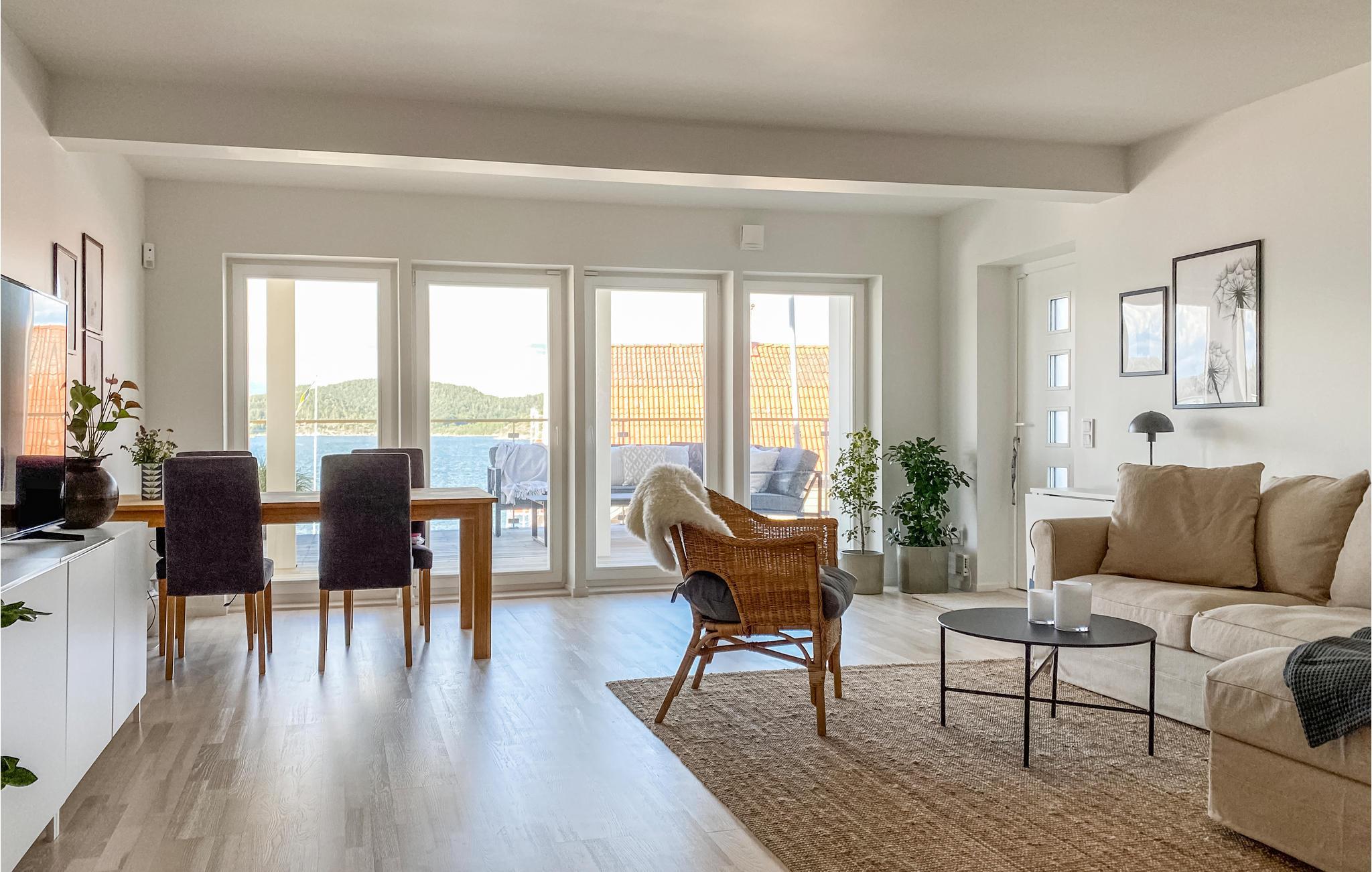 Veldig fin og luftig feriebolig i første etasje. Fra de fleste rommene og fra terrassen har du en fantastisk panoramautsikt over Halsefjorden. Det er 2 nydelige soverom med komfortable senger og 1 sovesofa for 2 personer i stuen. Vakkert og velutstyrt kjøkken hvor du kan tilberede fantastiske måltider.