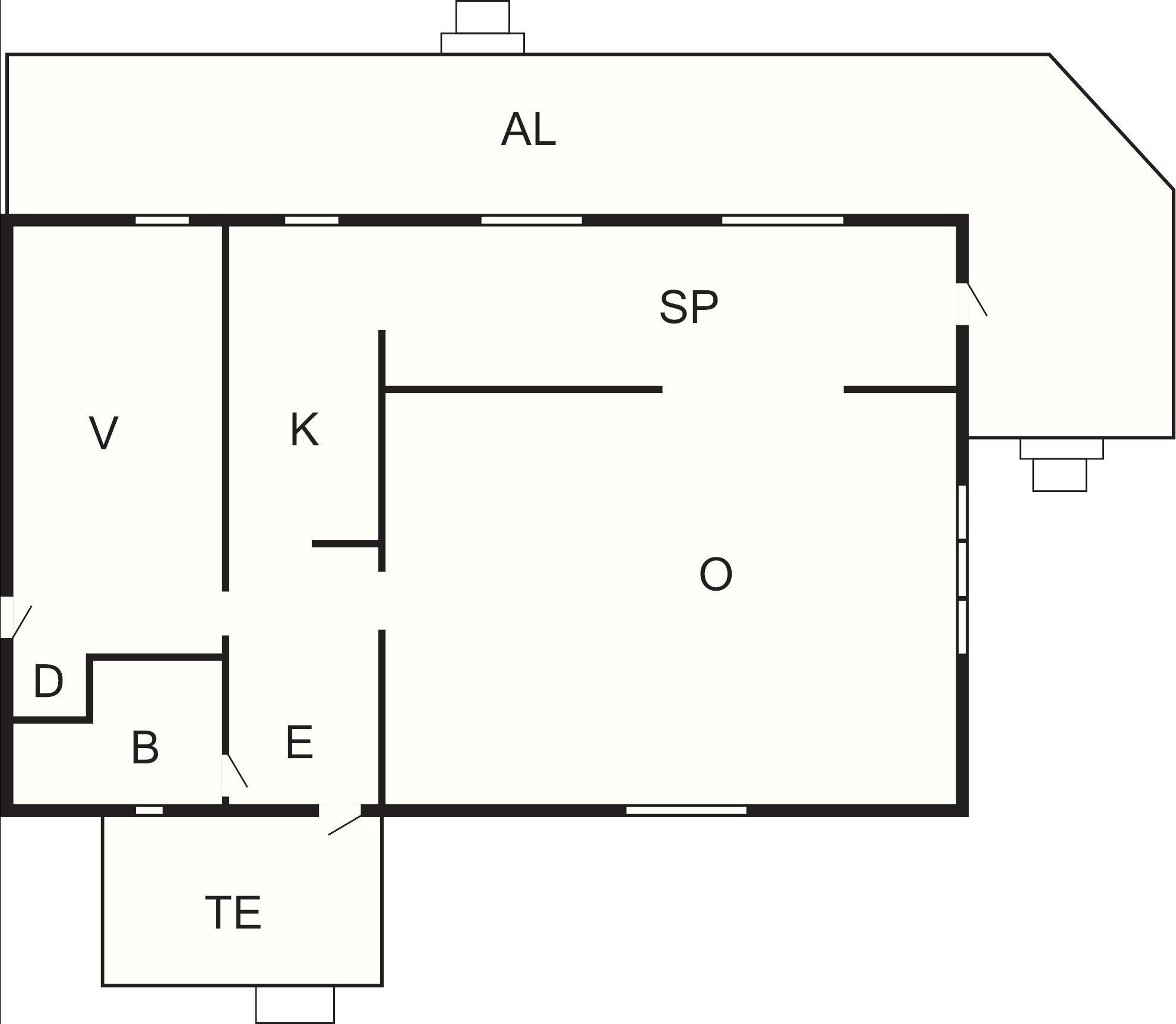 Kjøkken: El-komfyr, kjøl/frys, mikro, kjøkkenvifte, kaffetrakter
