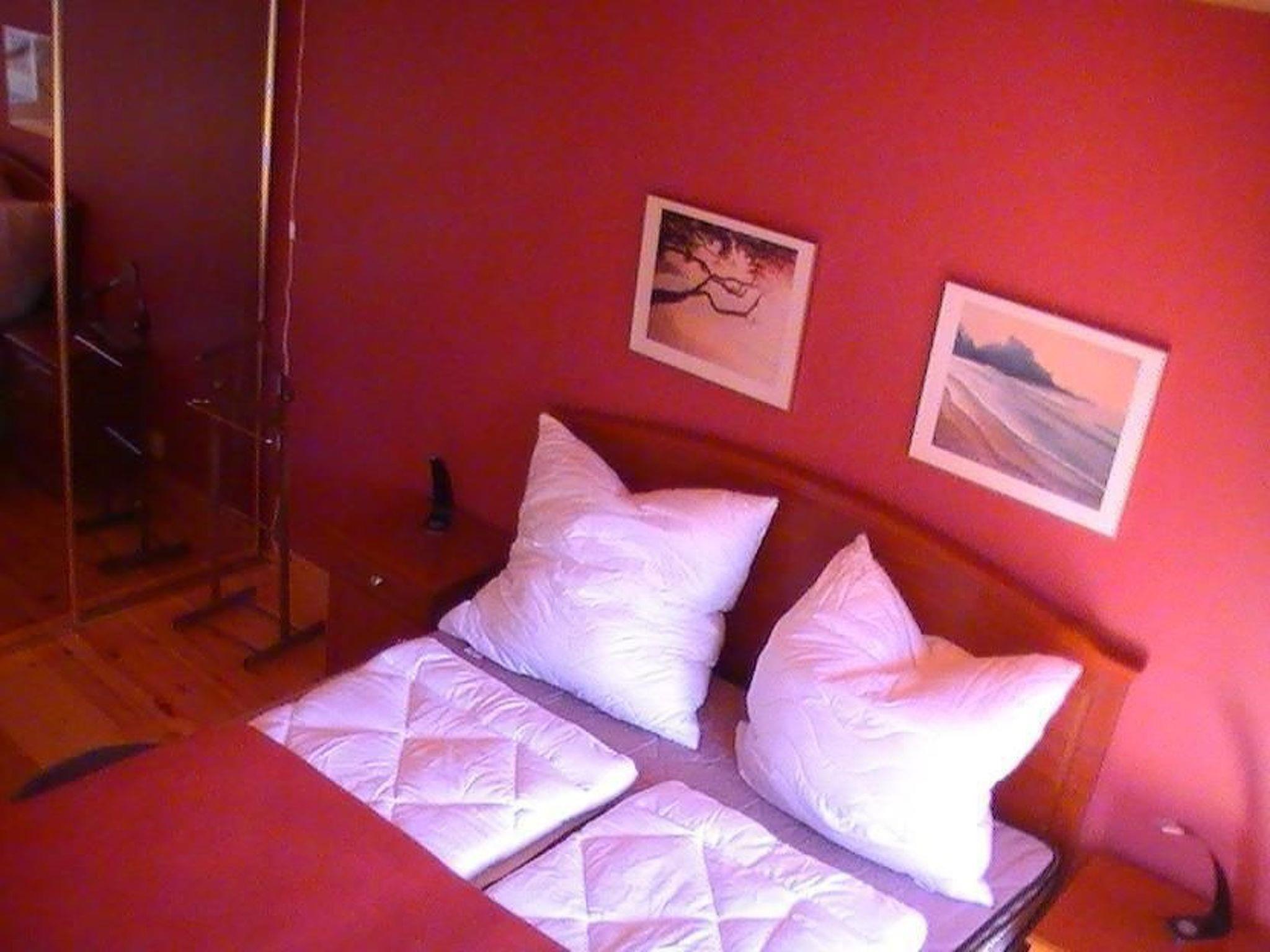 In addition to the main building, the house also has a guest house with a double bed (two mattresses each 0.80 m x 2.00 m). There are also three bedrooms in the main house. The first room is furnished with a double bed (1.60 m x 2.00 m). The loft is furnished with a double bed, which can also be separated into two single beds (each 0.90 m x 2.00 m). In another bedroom there is a double bed (1.40 m x 2.00 m) and above it a single bed (0.80 m x 2.00 m). In the last room, the children's room, you will find a bed (0.90 m x 2.00 m). A cot is also available and can be set up as required.