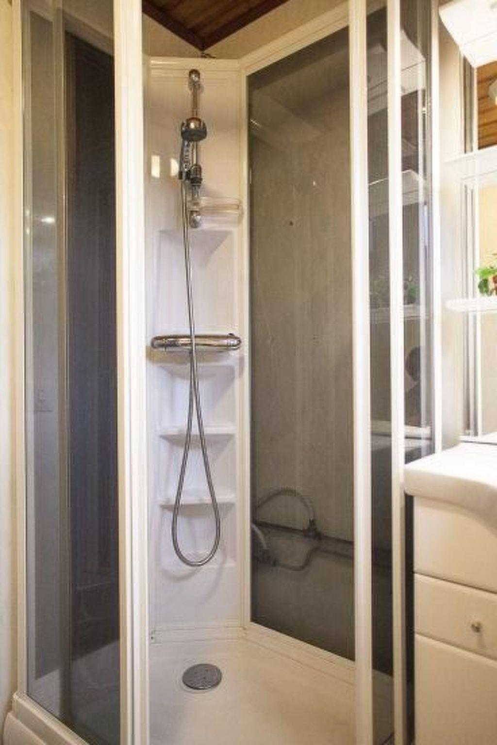 The spacious living room with a soapstone stove has an 85-inch Smart TV with DVD player, satellite TV (German), massage chair and an exercise bike. The kitchen is fully equipped with an induction hob, microwave, dishwasher, fridge-freezer, toaster, coffee machine, etc. In the utility room you will find a washing machine and an ironing board with iron. The bathroom with shower, washbasin and WC is located at the back of the house. The complete room layout can be seen in the floor plan. All rooms are accessible at ground level via a three-step external staircase.