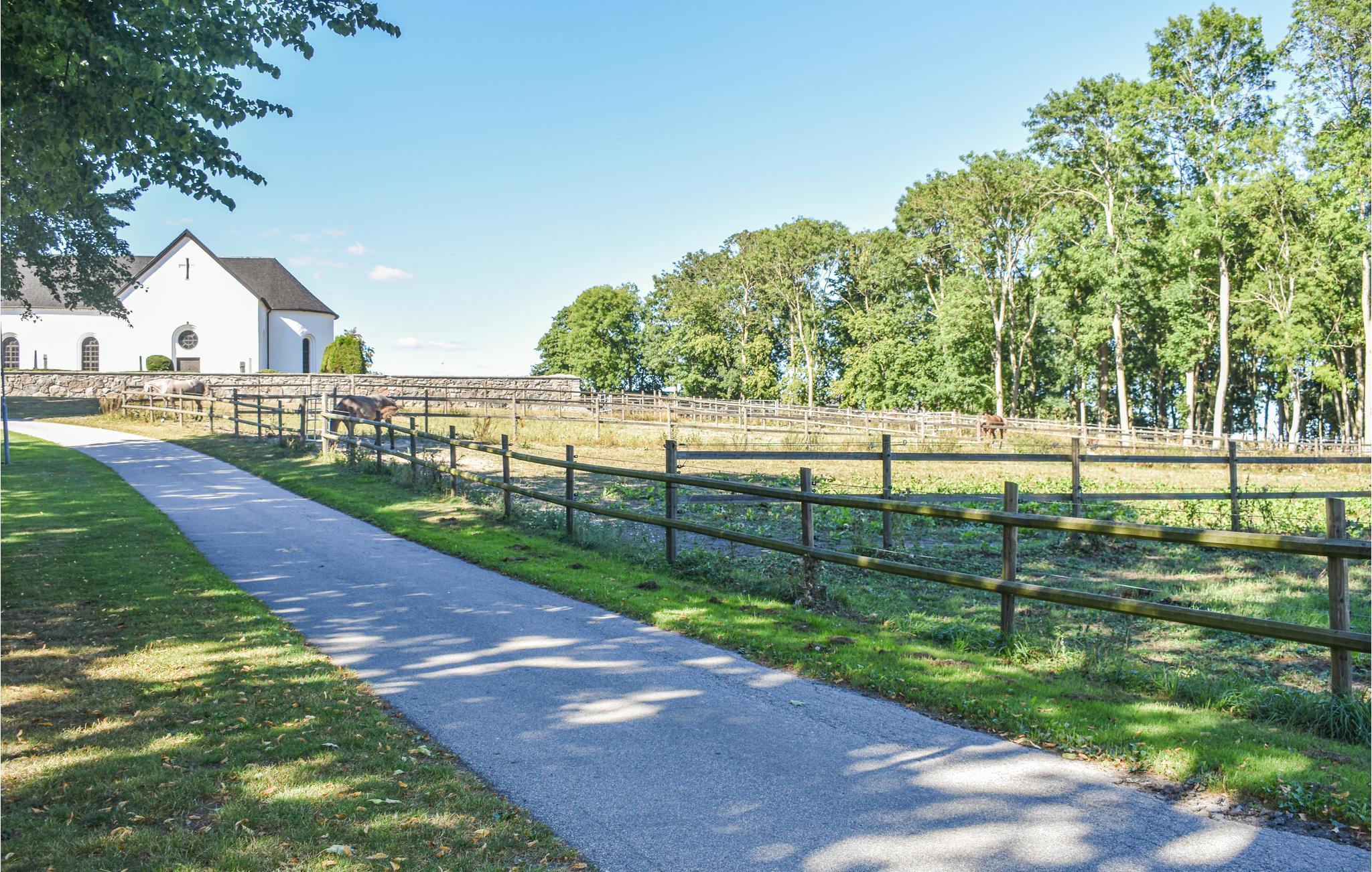 Gå ut i den velstelte hagen og nyt utsikten over åkrer og beitemarker, der hester av og til beiter. Området rundt er ideelt for fotturer og sykkelturer, langt borte fra trafikken, midt i naturen.